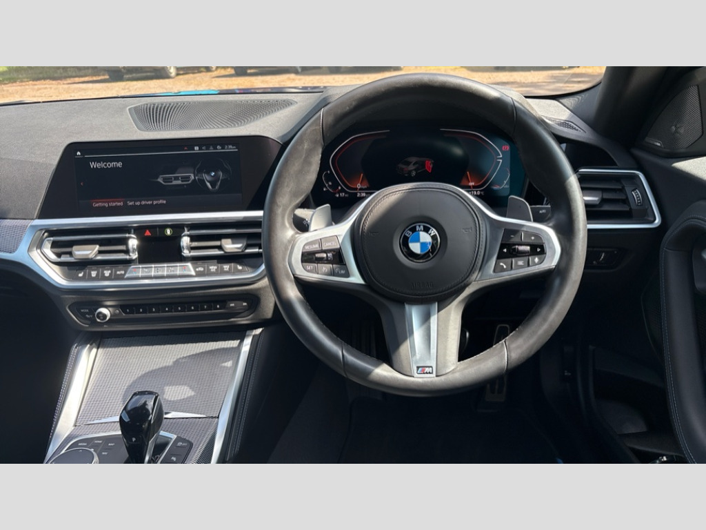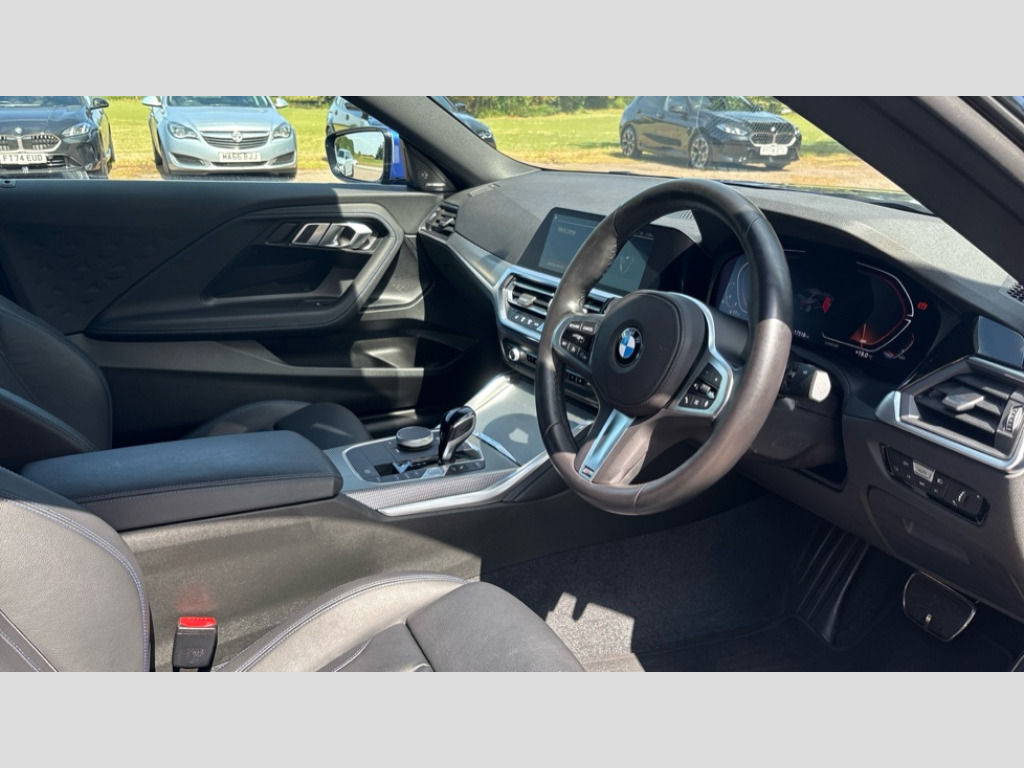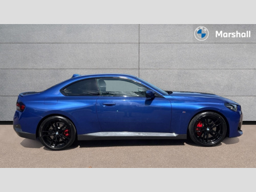 BMW 2 Series 220i M Sport 2dr Step Auto Attentiveness assist, Auto start-stop, Bluetooth, BMW ConnectedDrive online services, BMW Teleservices, Check Control warning system for monitoring of lights and door/luggage compartment open warning, Direct selection buttons, Drive off assistant, Eco pro mode, Electric power steering, Front/rear Parking distance control, iDrive controller with turn and press function, Integrated owners handbook, Intelligent functions, Live cockpit plus with nav function 12.3" instrument cluster and 14.9" centre display, Oil sensor for level and grade, Optimum shift indicator, Personal Profile, Touch operation on control display, Variable sport steering, Widescreen multi-media display, Aluminium lightweight construction, Balancer shaft, BMW TwinPower Turbo four-cylinder petrol engine, Double VANOS, Drive performance control with ECO PRO comfort + sport mode, Electronic differential lock, High precision injection, M sport suspension, Petrol Particulate Filter, Sport automatic steptronic transmission with gearshift paddles, manual gearshift time display, launch control, coasting idle ECO PRO/COMFORT modes, Twin scroll turbocharger with Valvetronic, DAB tuner, Acoustic windscreen wipers for reduced driving noise, Adaptive LED Headlights, Automatic windscreen wipers and automatic headlight, Automatically dimming rear view mirror, Body colour door handles flush with door surface, Body colour door mirrors, Body colour front and rear bumpers, Daytime running lights, Electric windows - front and rear, with open/close fingertip control and trap release, Exhaust tailpipes x2 - 90mm in left and right, Fading support, Front and rear bumper system with replaceable deformation elements, Front door sill finishers in black plastic with BMW designation, Front windscreen wipers with integrated washer jets, Green tinted heat protection glazing, High beam assistant, High gloss shadowline exterior trim in mirror triangle cover, mirror cover panel, mirror bezel and window border, High level third brake light, Indicators integrated int mirror housing, LED registration plate light, LED technology rear tail lights, brake lights and turn indicators, Lightweight engineering, Model designation on right side of tailgate, One piece kidney grille with hight gloss chrome surround, Rear boot, Rear fog lights, Reversing light in rear light cluster, Shark fin antenna, Single part LED rear lights with smoked glass components, Trailer stabilisation logic, Visible VIN plate, 12V power socket in front centre console with blanking plug, 2 cupholders in front centre console, 3 zone automatic air conditioning, Ambient lighting, Compartment in front of cupholder, Conditioned based service, Driver seat backrest width adjustment, Front and rear side armrests integrated into door trim, Front armrest, Front door pockets, Front head restraints, Front sport seats, Heated front seats, Illuminated glove compartment with separate small compartment, M headliner Anthracite, M sport leather steering wheel, Manually adjustment steering wheel column, Rear seat backrest with manual 40:20:40 split folding, Rear seat centre foldable armrest with integrated cup holder, Single front passenger seat, Storage compartment between rear seats, Storage tray and compartment with cover in centre console, Sun visors with vanity mirrors and insert tab, Through loading system with 40/20/40 split folding 2 rear seat in 2nd row, Two folding rear seat headrests, Velour floor mats, Additional storage compartment pack without USB - 2 Series Coupe, Connected pack professional - 2 Series Coupe, Interior and exterior mirror pack - 2 Series Coupe, M Sport exterior styling aerodynamics pack - 2 Series Coupe, 2 tone horn, Anti lock braking system (ABS) with cornering brake control, Automatic Stability Control (ASC), BMW emergency call, Brake drying, Child seat ISOFIX attachment for the two outer rear seats, Crash sensor activating of airbags, Unlocking doors, hazard warning lights, interior light, safety battery terminal, Deactivation of fuel pump in the event of a crash, Driver and front passenger airbags, Driver and front passenger side airbags, integrated in the door side seat backrest bolsters for all seat variants, Dynamic brake control, Dynamic stability control + (DSC+), Dynamic Traction Control - DTC, Electrically operated hand brake including automatic hold function and automatic release when driving off, Front and rear disc brakes, Front passenger airbag deactivation, Head airbags for all 4 outer seats, Manual deactivation of front passenger airbag, Seat belt security check for driver and front passenger, Seatbelt warning, Side impact protection, Three point seat belts on 4 seats including front belt stopper, pyrotechnic belt tensioners and belt force limiters, Tyre pressure sensor, Warning triangle and first aid kit, Alarm system (Thatcham 1) with remote control and electronic engine immobiliser, Central locking switch for all doors, fuel filler cap and luggage compartment, Deadlocking function system to all doors, Drive away locking system on all doors and luggage compartment, Locking wheel bolts, Start/Stop button (illuminated) in centre console with keyless engine start and Auto Start-Stop deactivation button, Two remote control key with integrated key - one button for open and close doors/fuel flap/tailgate and separate button for unlock luggage compartment, BMW mobility tyre sealing system, Electrically powered 12V compressor, Reduced rolling resistance tyres