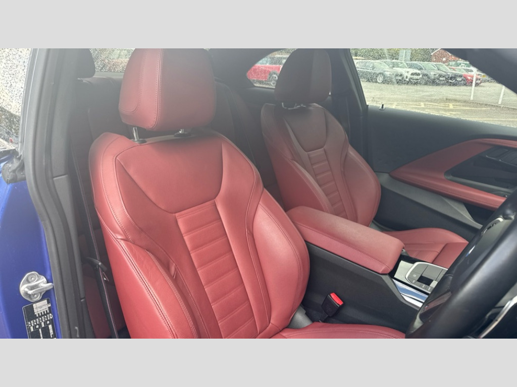 BMW 2 Series 220i M Sport 2dr Step Auto 2 USB connections for charging and transferring data, 4G LTE connectivity with hard wired 4G network sim card, Attentiveness assist, Bluetooth with USB, BMW ConnectedDrive online services, BMW Intelligent Personal Assistant, BMW operating system 8 with variable, configurable widgets display information in real time, BMW Teleservices, Check Control warning system for monitoring of lights and door/luggage compartment open warning, Direct selection buttons, Drive off assistant, Eco pro mode, Electric power steering, Front and rear parking sensors, Front/rear Parking distance control, iDrive controller with turn and press function, Integrated owners handbook, Intelligent functions, Live cockpit plus with nav function 12.3" instrument cluster and 14.9" centre display, Oil sensor for level and grade, Optimum shift indicator, Personal Profile, Touch operation on control display, Variable sport steering, Widescreen multi-media display, WiFi interface for wireless connection of mobile terminal devices, Active sound design, Aluminium lightweight construction, Balancer shaft, BMW TwinPower Turbo four-cylinder petrol engine, Double VANOS, Drive performance control with ECO PRO comfort + sport mode, Electronic differential lock, High precision injection, M sport suspension, Petrol Particulate Filter, Sport automatic steptronic transmission with gearshift paddles, manual gearshift time display, launch control, coasting idle ECO PRO/COMFORT modes, Sprint mode, Twin scroll turbocharger with Valvetronic, DAB tuner, Harman/Kardon surround sound system, Acoustic windscreen wipers for reduced driving noise, Adaptive LED Headlights, Automatic windscreen wipers and automatic headlight, Automatically dimming rear view mirror, BMW individual lights shadow line, Body colour door handles flush with door surface, Body colour door mirrors, Body colour front and rear bumpers, Daytime running lights, Electric windows - front and rear, with open/close fingertip control and trap release, Exhaust tailpipes x2 - 90mm in left and right, Extended high gloss shadow line exterior trim, Fading support, Front and rear bumper system with replaceable deformation elements, Front door sill finishers in black plastic with BMW designation, Front windscreen wipers with integrated washer jets, Green tinted heat protection glazing, High beam assistant, High gloss black sill, bumper trim sides and diffuser insert, High level third brake light, Indicators integrated int mirror housing, LED registration plate light, LED technology rear tail lights, brake lights and turn indicators, Lightweight engineering, M Sport spoiler - Gurney in high gloss black, Model designation on right side of tailgate, One piece kidney grille with hight gloss chrome surround, Rear boot, Rear fog lights, Reversing light in rear light cluster, Shark fin antenna, Single part LED rear lights with smoked glass components, Trailer stabilisation logic, Visible VIN plate, 12V power socket in front centre console with blanking plug, 2 cupholders in front centre console, 2 zone automatic air conditioning, Ambient lighting, Compartment in front of cupholder, Conditioned based service, Driver seat backrest width adjustment, Front and rear side armrests integrated into door trim, Front armrest, Front door pockets, Front head restraints, Front sport seats, Heated front seats, Illuminated glove compartment with separate small compartment, M headliner Anthracite, M sport leather steering wheel, Manually adjustment steering wheel column, Rear seat backrest with manual 40:20:40 split folding, Rear seat centre foldable armrest with integrated cup holder, Single front passenger seat, Storage compartment between rear seats, Storage tray and compartment with cover in centre console, Sun visors with vanity mirrors and insert tab, Through loading system with 40/20/40 split folding 2 rear seat in 2nd row, Two folding rear seat headrests, Velour floor mats, Additional storage compartment pack without USB - 2 Series Coupe, Connected pack professional - 2 Series Coupe, Interior and exterior mirror pack - 2 Series Coupe, M Sport exterior styling aerodynamics pack - 2 Series Coupe, 2 tone horn, Anti lock braking system (ABS) with cornering brake control, Automatic Stability Control (ASC), BMW emergency call, Brake drying, Child seat ISOFIX attachment for the two outer rear seats, Crash sensor activating of airbags, Unlocking doors, hazard warning lights, interior light, safety battery terminal, Deactivation of fuel pump in the event of a crash, Driver and front passenger airbags, Driver and front passenger side airbags, integrated in the door side seat backrest bolsters for all seat variants, Dynamic brake control, Dynamic stability control + (DSC+), Dynamic Traction Control - DTC, Electrically operated hand brake including automatic hold function and automatic release when driving off, Front and rear disc brakes, Head airbags for all 4 outer seats, M sport seatbelt, Manual deactivation of front passenger airbag, Seat belt security check for driver and front passenger, Seatbelt warning, Side impact protection, Three point seat belts on 4 seats including front belt stopper, pyrotechnic belt tensioners and belt force limiters, Tyre pressure sensor, Warning triangle and first aid kit, Alarm system (Thatcham 1) with remote control and electronic engine immobiliser, Central locking switch for all doors, fuel filler cap and luggage compartment, Deadlocking function system to all doors, Drive away locking system on all doors and luggage compartment, Locking wheel bolts, Start/Stop button (illuminated) in centre console with keyless engine start and Auto Start-Stop deactivation button, Two remote control key with integrated key - one button for open and close doors/fuel flap/tailgate and separate button for unlock luggage compartment, BMW mobility tyre sealing system, Electrically powered 12V compressor, Reduced rolling resistance tyres