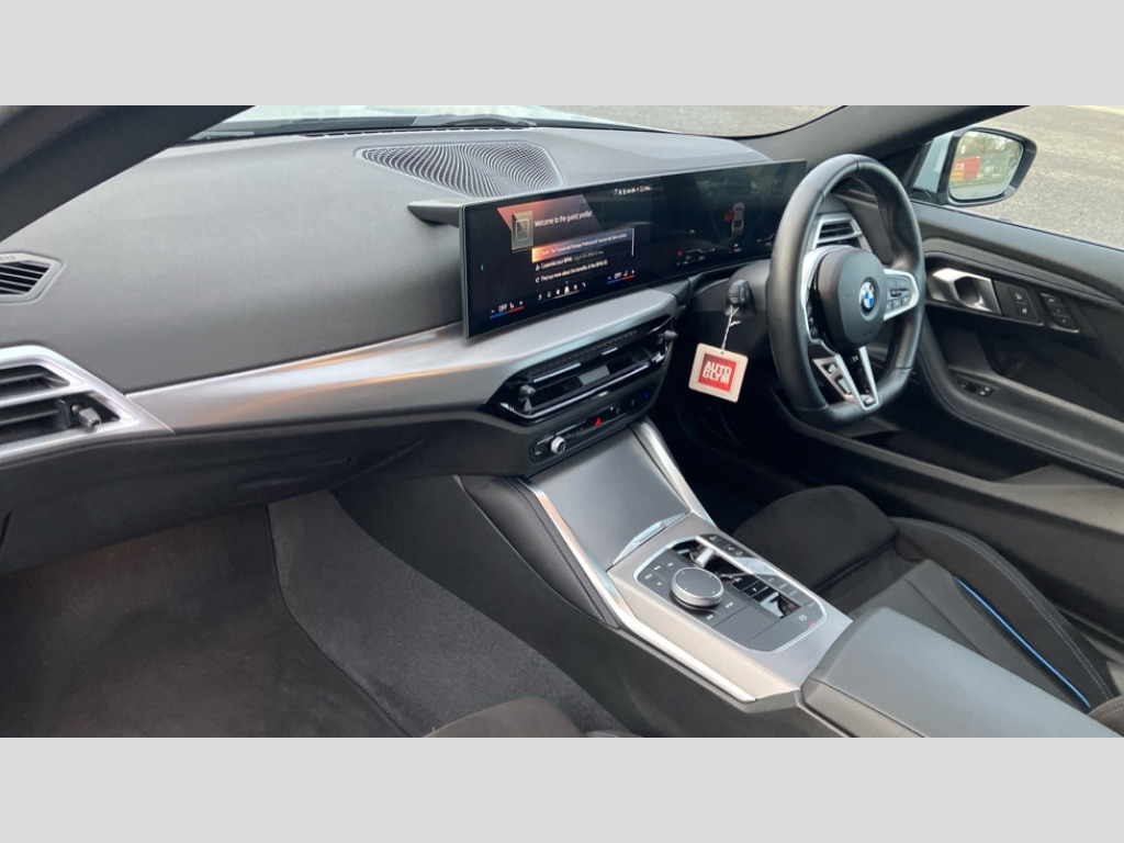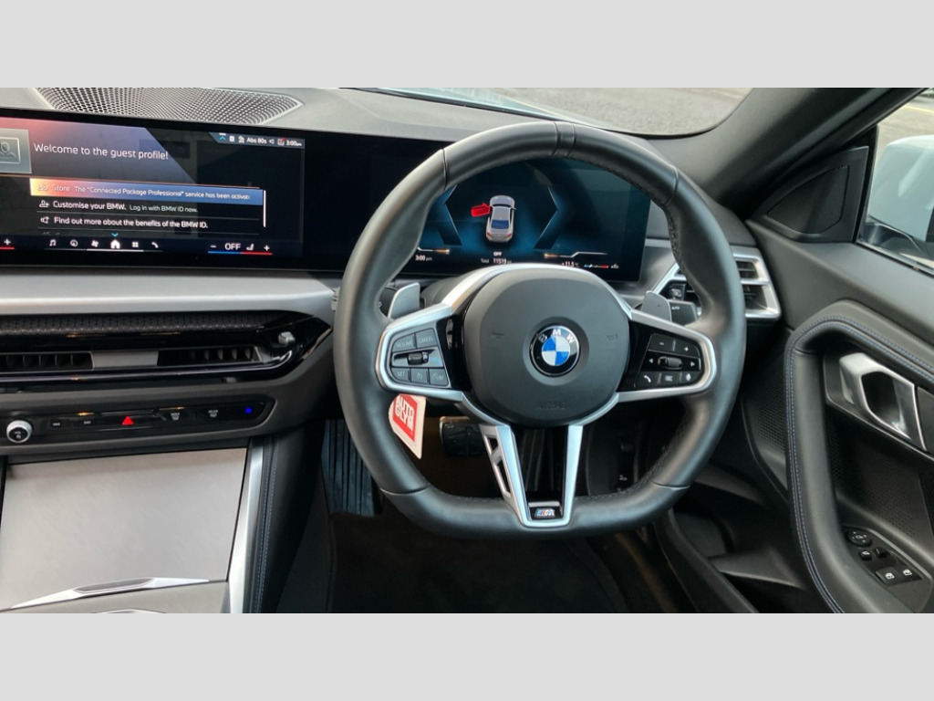 BMW 2 Series 220i M Sport 2dr Step Auto 2 USB connections for charging and transferring data, Active guard plus, Attentiveness assist, Bluetooth with USB, BMW ConnectedDrive online services, BMW Intelligent Personal Assistant, BMW Live cockpit plus, BMW operating system 8 with variable, configurable widgets display information in real time, BMW Teleservices, Check Control warning system for monitoring of lights and door/luggage compartment open warning, Control Infotainment, Direct selection buttons, Drive off assistant, Eco pro mode, Electric power steering, eSim with 5G connectivity, Front and rear parking sensors, iDrive controller with turn and press function, Integrated owners handbook, Intelligent functions, Oil sensor for level and grade, Optimum shift indicator, Personal Profile, Smartphone integration, Touch operation on control display, Variable sport steering, Widescreen multi-media display, WiFi interface for wireless connection of mobile terminal devices, Aluminium lightweight construction, Balancer shaft, BMW TwinPower Turbo four-cylinder petrol engine, Double VANOS, Drive performance control with ECO PRO comfort + sport mode, Electronic differential lock, High precision injection, M sport suspension, Petrol Particulate Filter, Steptronic transmission with gearshift paddles, Twin scroll turbocharger with Valvetronic, DAB tuner, Acoustic windscreen wipers for reduced driving noise, Automatic windscreen wipers and automatic headlight, Body colour door handles flush with door surface, Body colour door mirrors, Body colour front and rear bumpers, Daytime running lights, Electric windows - front and rear, with open/close fingertip control and trap release, Exhaust tailpipes x2 - 90mm in left and right, Fading support, Front and rear bumper system with replaceable deformation elements, Front door sill finishers in black plastic with BMW designation, Front windscreen wipers with integrated washer jets, Green tinted heat protection glazing, High beam assistant, High gloss black sill, bumper trim sides and diffuser insert, High level third brake light, Indicators integrated int mirror housing, Interior rear-view mirror with automatic anti-dazzle function, LED registration plate light, LED technology rear tail lights, brake lights and turn indicators, Lightweight engineering, M high gloss shadowline, One piece kidney grille with hight gloss chrome surround, Rear boot, Rear fog lights, Reversing light in rear light cluster, Shark fin antenna, Single part LED rear lights with smoked glass components, Trailer stabilisation logic, Visible VIN plate, 12V power socket in front centre console with blanking plug, 2 cupholders in front centre console, 2 zone automatic air conditioning, Ambient lighting, Compartment in front of cupholder, Conditioned based service, English handbook, Folding rear seat head rests, Front and rear side armrests integrated into door trim, Front armrest, Front door pockets, Front head restraints, Heated front seats, Illuminated glove compartment with separate small compartment, M headliner Anthracite, M sport leather steering wheel, Manually adjustment steering wheel column, Rear seat backrest with manual 40:20:40 split folding, Rear seat centre foldable armrest with integrated cup holder, Single front passenger seat, Storage compartment between rear seats, Storage tray and compartment with cover in centre console, Sun visors with vanity mirrors and insert tab, Through loading system with 40/20/40 split folding 2 rear seat in 2nd row, Velour floor mats, Additional storage compartment pack without USB - 2 Series Coupe, Connected pack professional - 2 Series Coupe, 2 tone horn, Anti lock braking system (ABS) with cornering brake control, Automatic Stability Control (ASC), BMW emergency call, Brake drying, Child seat ISOFIX attachment for the two outer rear seats, Crash sensor activating of airbags, Unlocking doors, hazard warning lights, interior light, safety battery terminal, Deactivation of fuel pump in the event of a crash, Driver and front passenger airbags, Driver and front passenger side airbags, integrated in the door side seat backrest bolsters for all seat variants, Dynamic brake control, Dynamic stability control + (DSC+), Dynamic Traction Control - DTC, Electrically operated hand brake including automatic hold function and automatic release when driving off, Front and rear disc brakes, Front centre airbag between driver and front passenger seats, Front passenger airbag deactivation, Head airbags for all 4 outer seats, PC iBrake (Post crash approach control warning with light braking function), Seat belt security check for driver and front passenger, Seatbelt warning, Side impact protection, Three point seat belts on 4 seats including front belt stopper, pyrotechnic belt tensioners and belt force limiters, Tyre pressure monitoring system, Warning triangle and first aid kit, Alarm system (Thatcham 1) with remote control and electronic engine immobiliser, Central locking switch for all doors, fuel filler cap and luggage compartment, Deadlocking function system to all doors, Drive away locking system on all doors and luggage compartment, Locking wheel bolts, Start/Stop button (illuminated) in centre console with keyless engine start and Auto Start-Stop deactivation button, Two remote control key with integrated key - one button for open and close doors/fuel flap/tailgate and separate button for unlock luggage compartment, Electrically powered 12V compressor, Reduced rolling resistance tyres, Tyre repair kit