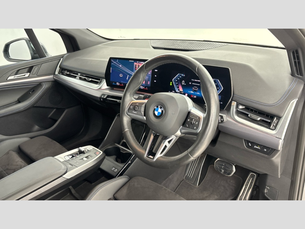 BMW 2 Series 220i MHT M Sport 5dr DCT Active Guard, Attentiveness assist, Automatic powered tailgate, Automatic start/stop function, BMW Online services, BMW Operating system 9 with BMW Maps, real-time traffic information, in-car experiences, remote services and smartphone integration, BMW Teleservices, Brake pad wear indicator in front and rear, Condition based service, ConnectedDrive Services, Drive off assistant, Flat air vents on instrument panel in high gloss black, adjustable slats with elements in pearl chrome, iDrive controller, Instrument cluster with speedometer with miles per hour read out, tachometer and fuel gauge, Language version English, On board computer - average speed+fuel consumption, service interval, clock/date, odometer/trip meter, outside temperature display and ice warning, Parking assistant with active park distance control, reversing assistant, lateral parking aid and rear view camera, Servotronic variable electric power steering (EPS), Widescreen display, Wireless charging, 54 litre fuel tank, Drive performance control with ECO PRO comfort + sport mode, Gear selector switch with toggle operation, M Adaptive suspension, Performance Control, Petrol Particulate Filter, Steptronic transmission with double clutch and gear shift paddles, 2x USB Type C ports in front centre console for charging and data transfer, 2x USB Type C ports in rear centre console for charging, DAB Digital radio, Personal eSim, Welcome sound upon opening of the front driver or passenger door, Air inlet middle part on front apron in lines specific design with trim strip in satinised aluminium, Automatic headlights, Black rear bumper trim strip, BMW emblem, engine compartment lid and tailgate, Body colour roof mouldings, Body coloured door mirror caps, Contoured rear roof spoiler in vehicle colour with side aeroblades in black high-gloss, Driver side exterior mirror lighting with BMW logo projection, Dynamic brake lights, Electric adjustable heated door mirrors, Electric windows - front and rear, with open/close fingertip control, anti-trap facility and comfort closing, Folding door handles integrated flush with surface, Front and rear windscreen wipers with heated front washer nozzles, Front bumper cover with independent design in body colour with inserts in black high gloss, Front bumper design elements in satinised aluminium, Front door exit lights, Front door sill finishers aluminium inserts with M inscription, Front entry sills with aluminium inserts + BMW inscription, Front oramental grille with radiator grille bars in satinised aluminium, Heated rear window, Hidden exhaust pipe, High gloss shadow line, Home light, Key with M identification, LED Daytime running lights and parking lights with turn indicators, LED number plate light, LED third brake light in rear spoiler, M identification on sides, Manual headlight range control, Model inscription on right tailgate, Rain sensor, Rear bumper cover with independent design in body colour with inserts in black high gloss, Rear side wing doors, Shark fin antenna, Side sill covers with independent design in Body colour, Trailer stabilisation logic, Trims on front and rear bumper covers colour-coordinated with side window graphic, Visible VIN plate, Welcome lighting, Windscreen washer nozzle for rear view camera, 12V power socket in luggage compartment and front centre console, 12V socket in right side trim panel, 2 bag hooks in luggage compartment, 2 front reading lights, 2 open cup holders in front centre console, 2 x USB Type C ports for charging in front centre console + 2 x USB Type C ports for charging in rear centre console, 3 seat bench in 2nd row, Ambient lighting front and rear, Automatic two zone climate control air conditioning, Bottle trays in all doors, Child seat ISOFIX attachment for two outer rear seats and front passenger seat with anchorage points, Driver and front passenger sports seats, Embellishers on steering wheel spokes in pearl chrome, Four grab handles integrated in roof lining, Front and rear door pockets, Front and rear footwell lighting, Front and rear side armrest integrated into door trim, Front centre console storage compartment, Front head restraints, Glovebox with light, Heated front seats, Height adjustable 3 rear head restraints, Illuminated wireless charging tray, Interior door handle recess light on all doors, Luggage compartment lighting, M Anthracite headlining, M specific floor mats, M sport leather steering wheel, Manual adjustment of seat height, fore/aft position, seat depth, backrest tilt and head restraint height, Map pockets, Mechanical rear seats with fore/aft adjustment, Middle centre console storage compartment, Multi-function controls for steering wheel, One piece parcel shelf opens together with tailgate and removable, Rear cloth hooks, Single front passenger seat, Stainless steel pedals, Steering wheel column manual adjustment, Storage compartment lighting in centre console and storage tray in centre stack, Storage compartment net in left side trim panel, Storage compartment with folding cover under centre console armrest cushion, Sunvisors with illuminated vanity mirrors, 3 point seatbelts on all seats, front pyrotechnic belt tensioners, stopper and belt force limiters, rear coded belt buckles, Airbag - Front driver and passenger, front and rear head, front side, curtain head protection, manual deactivation of front passenger airbag possible, Anti lock braking system (ABS) with brake assist, Automatic hold function, BMW emergency call, Brake drying, Braking readiness, Child proof locking system in rear door, Cornering brake control, Crash Sensor - activates hazard/interior lighting + unlocks doors, DSC - Dynamic Stability Control, Dynamic brake control, Dynamic Traction Control - DTC, Electromechanical parking brake, Energy recovery system, Front disc brakes, Integrated braking system, PC iBrake PostCrash approach control warning with light braking function, Rear disc brakes, Tyre pressure mon