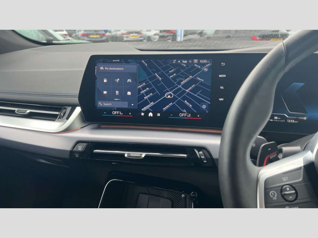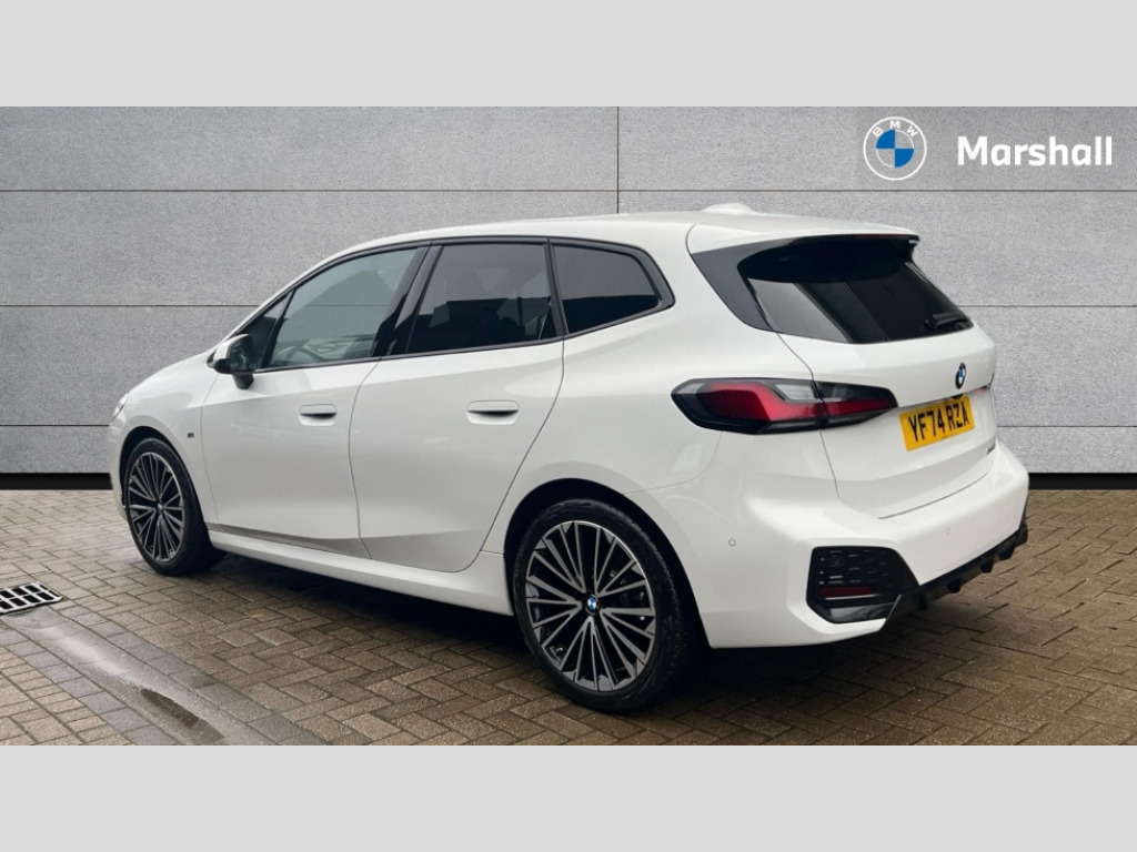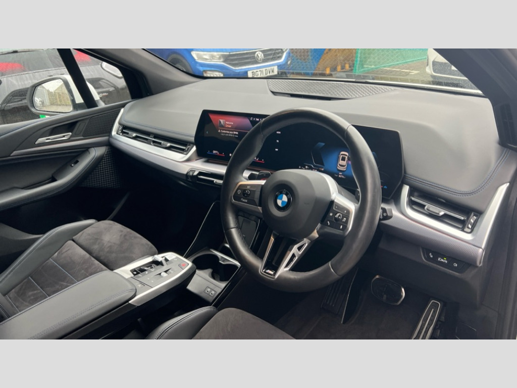 BMW 2 Series 220i MHT M Sport 5dr DCT Active Guard, Attentiveness assist, Automatic powered tailgate, Automatic start/stop function, BMW Online services, BMW Operating system 9 with BMW Maps, real-time traffic information, in-car experiences, remote services and smartphone integration, BMW Teleservices, Brake pad wear indicator in front and rear, Condition based service, ConnectedDrive Services, Drive off assistant, Flat air vents on instrument panel in high gloss black, adjustable slats with elements in pearl chrome, iDrive controller, Instrument cluster with speedometer with miles per hour read out, tachometer and fuel gauge, Language version English, On board computer - average speed+fuel consumption, service interval, clock/date, odometer/trip meter, outside temperature display and ice warning, Parking assistant with active park distance control, reversing assistant, lateral parking aid and rear view camera, Servotronic variable electric power steering (EPS), Widescreen display, Wireless charging, 54 litre fuel tank, Drive performance control with ECO PRO comfort + sport mode, Gear selector switch with toggle operation, M Adaptive suspension, Performance Control, Petrol Particulate Filter, Steptronic transmission with double clutch and gear shift paddles, 2x USB Type C ports in front centre console for charging and data transfer, 2x USB Type C ports in rear centre console for charging, DAB Digital radio, Personal eSim, Welcome sound upon opening of the front driver or passenger door, Air inlet middle part on front apron in lines specific design with trim strip in satinised aluminium, Automatic headlights, Black rear bumper trim strip, BMW emblem, engine compartment lid and tailgate, Body colour roof mouldings, Body coloured door mirror caps, Contoured rear roof spoiler in vehicle colour with side aeroblades in black high-gloss, Driver side exterior mirror lighting with BMW logo projection, Dynamic brake lights, Electric adjustable heated door mirrors, Electric windows - front and rear, with open/close fingertip control, anti-trap facility and comfort closing, Folding door handles integrated flush with surface, Front and rear windscreen wipers with heated front washer nozzles, Front bumper cover with independent design in body colour with inserts in black high gloss, Front bumper design elements in satinised aluminium, Front door exit lights, Front door sill finishers aluminium inserts with M inscription, Front entry sills with aluminium inserts + BMW inscription, Front oramental grille with radiator grille bars in satinised aluminium, Heated rear window, Hidden exhaust pipe, High gloss shadow line, Home light, Key with M identification, LED Daytime running lights and parking lights with turn indicators, LED number plate light, LED third brake light in rear spoiler, M identification on sides, Manual headlight range control, Model inscription on right tailgate, Rain sensor, Rear bumper cover with independent design in body colour with inserts in black high gloss, Rear side wing doors, Shark fin antenna, Side sill covers with independent design in Body colour, Trailer stabilisation logic, Trims on front and rear bumper covers colour-coordinated with side window graphic, Visible VIN plate, Welcome lighting, Windscreen washer nozzle for rear view camera, 12V power socket in luggage compartment and front centre console, 12V socket in right side trim panel, 2 bag hooks in luggage compartment, 2 front reading lights, 2 open cup holders in front centre console, 2 x USB Type C ports for charging in front centre console + 2 x USB Type C ports for charging in rear centre console, 3 seat bench in 2nd row, Ambient lighting front and rear, Automatic two zone climate control air conditioning, Bottle trays in all doors, Child seat ISOFIX attachment for two outer rear seats and front passenger seat with anchorage points, Driver and front passenger sports seats, Embellishers on steering wheel spokes in pearl chrome, Four grab handles integrated in roof lining, Front and rear door pockets, Front and rear footwell lighting, Front and rear side armrest integrated into door trim, Front centre console storage compartment, Front head restraints, Glovebox with light, Heated front seats, Height adjustable 3 rear head restraints, Illuminated wireless charging tray, Interior door handle recess light on all doors, Luggage compartment lighting, M Anthracite headlining, M specific floor mats, M sport leather steering wheel, Manual adjustment of seat height, fore/aft position, seat depth, backrest tilt and head restraint height, Map pockets, Mechanical rear seats with fore/aft adjustment, Middle centre console storage compartment, Multi-function controls for steering wheel, One piece parcel shelf opens together with tailgate and removable, Rear cloth hooks, Single front passenger seat, Stainless steel pedals, Steering wheel column manual adjustment, Storage compartment lighting in centre console and storage tray in centre stack, Storage compartment net in left side trim panel, Storage compartment with folding cover under centre console armrest cushion, Sunvisors with illuminated vanity mirrors, 3 point seatbelts on all seats, front pyrotechnic belt tensioners, stopper and belt force limiters, rear coded belt buckles, Airbag - Front driver and passenger, front and rear head, front side, curtain head protection, manual deactivation of front passenger airbag possible, Anti lock braking system (ABS) with brake assist, Automatic hold function, BMW emergency call, Brake drying, Braking readiness, Child proof locking system in rear door, Cornering brake control, Crash Sensor - activates hazard/interior lighting + unlocks doors, DSC - Dynamic Stability Control, Dynamic brake control, Dynamic Traction Control - DTC, Electromechanical parking brake, Energy recovery system, Front disc brakes, Integrated braking system, PC iBrake PostCrash approach control warning with light braking function, Rear disc brakes, Tyre pressure mon