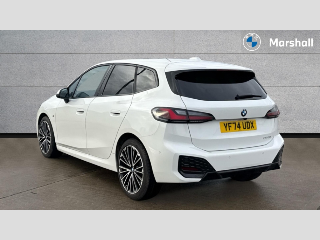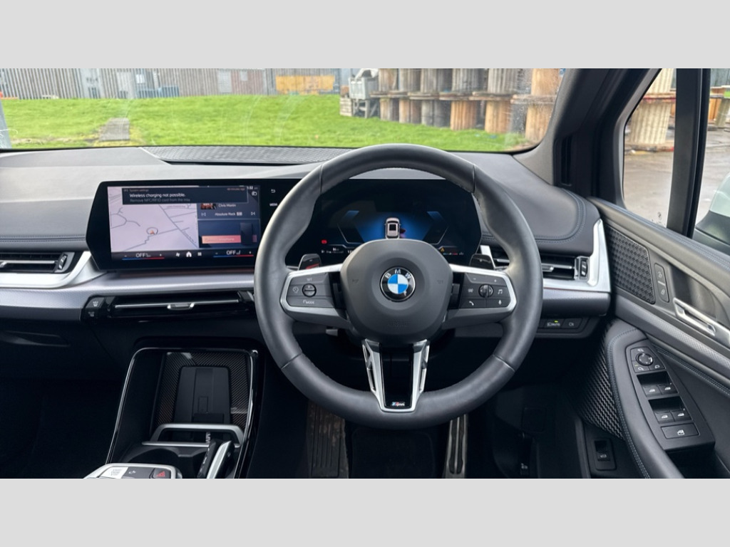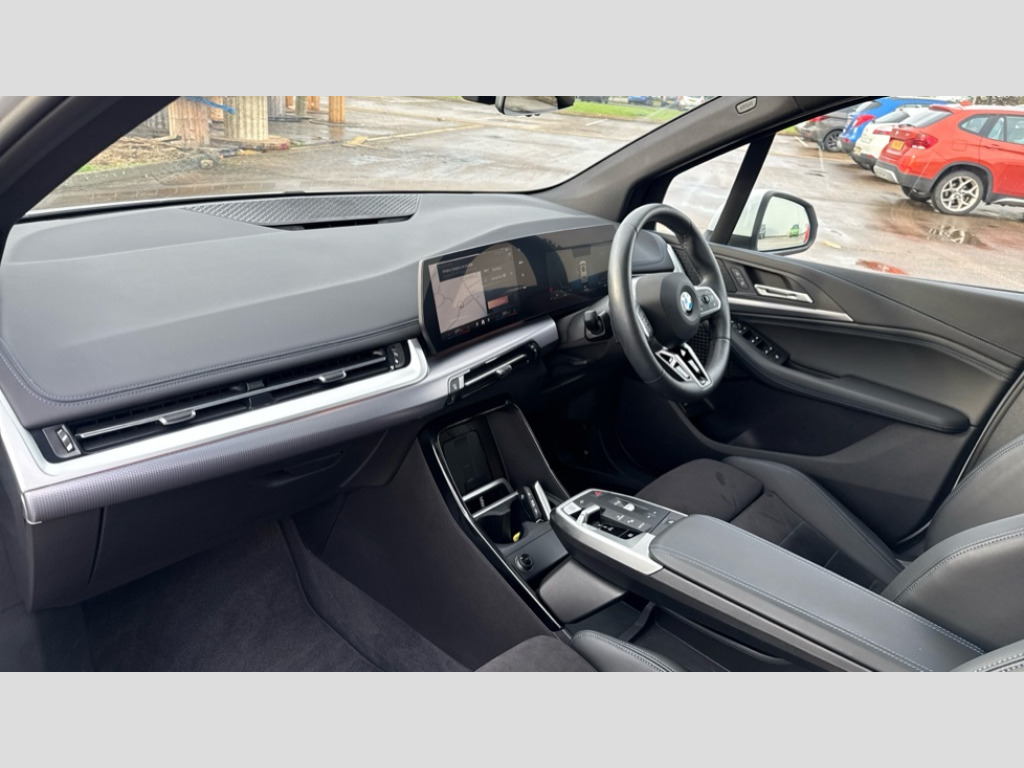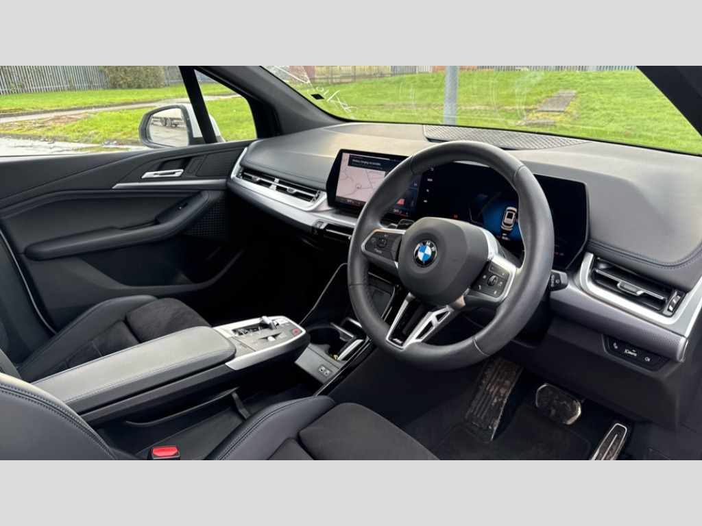 BMW 2 Series 220i MHT M Sport 5dr DCT Active Guard, Attentiveness assist, Automatic powered tailgate, Automatic start/stop function, BMW Online services, BMW Operating system 9 with BMW Maps, real-time traffic information, in-car experiences, remote services and smartphone integration, BMW Teleservices, Brake pad wear indicator in front and rear, Condition based service, ConnectedDrive Services, Drive off assistant, Flat air vents on instrument panel in high gloss black, adjustable slats with elements in pearl chrome, iDrive controller, Instrument cluster with speedometer with miles per hour read out, tachometer and fuel gauge, Language version English, On board computer - average speed+fuel consumption, service interval, clock/date, odometer/trip meter, outside temperature display and ice warning, Parking assistant with active park distance control, reversing assistant, lateral parking aid and rear view camera, Servotronic variable electric power steering (EPS), Widescreen display, Wireless charging, 54 litre fuel tank, Drive performance control with ECO PRO comfort + sport mode, Gear selector switch with toggle operation, M Adaptive suspension, Performance Control, Petrol Particulate Filter, Steptronic transmission with double clutch and gear shift paddles, 2x USB Type C ports in front centre console for charging and data transfer, 2x USB Type C ports in rear centre console for charging, DAB Digital radio, Personal eSim, Welcome sound upon opening of the front driver or passenger door, Air inlet middle part on front apron in lines specific design with trim strip in satinised aluminium, Automatic headlights, Black rear bumper trim strip, BMW emblem, engine compartment lid and tailgate, Body colour roof mouldings, Body coloured door mirror caps, Contoured rear roof spoiler in vehicle colour with side aeroblades in black high-gloss, Driver side exterior mirror lighting with BMW logo projection, Dynamic brake lights, Electric adjustable heated door mirrors, Electric windows - front and rear, with open/close fingertip control, anti-trap facility and comfort closing, Folding door handles integrated flush with surface, Front and rear windscreen wipers with heated front washer nozzles, Front bumper cover with independent design in body colour with inserts in black high gloss, Front bumper design elements in satinised aluminium, Front door exit lights, Front door sill finishers aluminium inserts with M inscription, Front entry sills with aluminium inserts + BMW inscription, Front oramental grille with radiator grille bars in satinised aluminium, Heated rear window, Hidden exhaust pipe, High gloss shadow line, Home light, Key with M identification, LED Daytime running lights and parking lights with turn indicators, LED number plate light, LED third brake light in rear spoiler, M identification on sides, Manual headlight range control, Model inscription on right tailgate, Rain sensor, Rear bumper cover with independent design in body colour with inserts in black high gloss, Rear side wing doors, Shark fin antenna, Side sill covers with independent design in Body colour, Trailer stabilisation logic, Trims on front and rear bumper covers colour-coordinated with side window graphic, Visible VIN plate, Welcome lighting, Windscreen washer nozzle for rear view camera, 12V power socket in luggage compartment and front centre console, 12V socket in right side trim panel, 2 bag hooks in luggage compartment, 2 front reading lights, 2 open cup holders in front centre console, 2 x USB Type C ports for charging in front centre console + 2 x USB Type C ports for charging in rear centre console, 3 seat bench in 2nd row, Ambient lighting front and rear, Automatic two zone climate control air conditioning, Bottle trays in all doors, Child seat ISOFIX attachment for two outer rear seats and front passenger seat with anchorage points, Driver and front passenger sports seats, Embellishers on steering wheel spokes in pearl chrome, Four grab handles integrated in roof lining, Front and rear door pockets, Front and rear footwell lighting, Front and rear side armrest integrated into door trim, Front centre console storage compartment, Front head restraints, Glovebox with light, Heated front seats, Height adjustable 3 rear head restraints, Illuminated wireless charging tray, Interior door handle recess light on all doors, Luggage compartment lighting, M Anthracite headlining, M specific floor mats, M sport leather steering wheel, Manual adjustment of seat height, fore/aft position, seat depth, backrest tilt and head restraint height, Map pockets, Mechanical rear seats with fore/aft adjustment, Middle centre console storage compartment, Multi-function controls for steering wheel, One piece parcel shelf opens together with tailgate and removable, Rear cloth hooks, Single front passenger seat, Stainless steel pedals, Steering wheel column manual adjustment, Storage compartment lighting in centre console and storage tray in centre stack, Storage compartment net in left side trim panel, Storage compartment with folding cover under centre console armrest cushion, Sunvisors with illuminated vanity mirrors, 3 point seatbelts on all seats, front pyrotechnic belt tensioners, stopper and belt force limiters, rear coded belt buckles, Airbag - Front driver and passenger, front and rear head, front side, curtain head protection, manual deactivation of front passenger airbag possible, Anti lock braking system (ABS) with brake assist, Automatic hold function, BMW emergency call, Brake drying, Braking readiness, Child proof locking system in rear door, Cornering brake control, Crash Sensor - activates hazard/interior lighting + unlocks doors, DSC - Dynamic Stability Control, Dynamic brake control, Dynamic Traction Control - DTC, Electromechanical parking brake, Energy recovery system, Front disc brakes, Integrated braking system, PC iBrake PostCrash approach control warning with light braking function, Rear disc brakes, Tyre pressure mon