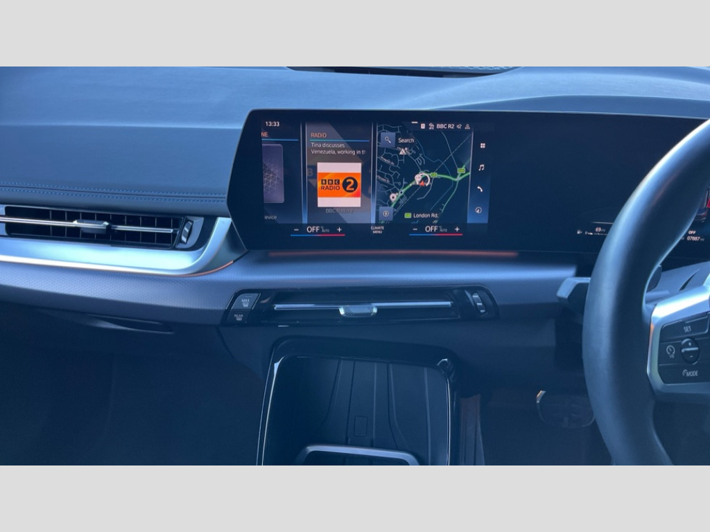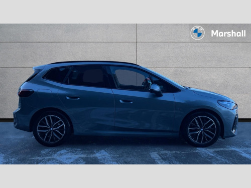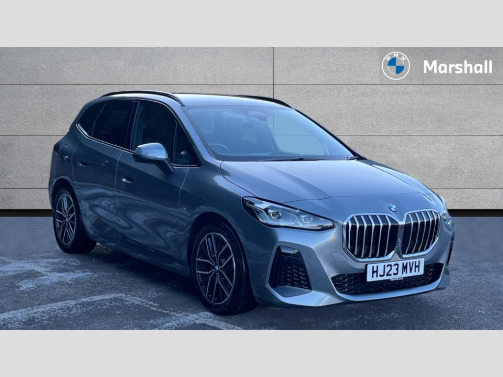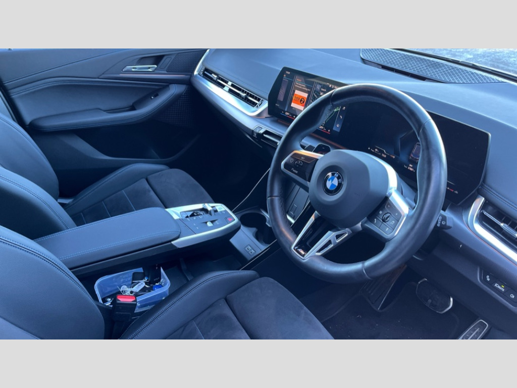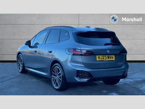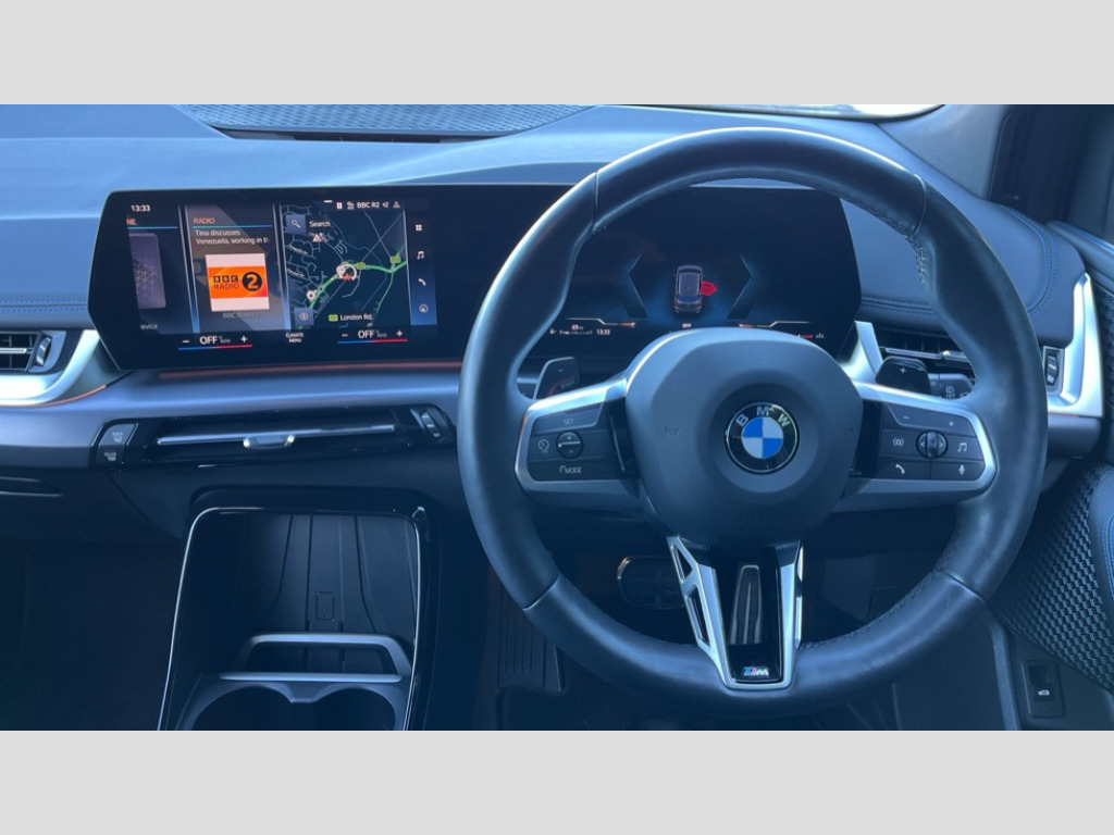 BMW 2 Series 223i MHT M Sport 5dr DCT Active Guard incl speed limiting and lane departure functions with auto steering, and front collision warning with brake intervention, Automatic powered tailgate, Automatic start/stop function, BMW Online services, BMW Teleservices, Brake pad wear indicator in front and rear, Condition based service, Drive off assistant, Flat air vents on instrument panel in high gloss black, adjustable slats with elements in pearl chrome, iDrive controller, Language version English, On board computer - average speed+fuel consumption, service interval, clock/date, odometer/trip meter, outside temperature display and ice warning, Parking assistant with active park distance control, reversing assistant, lateral parking aid and rear view camera, Servotronic variable electric power steering (EPS), Smartphone integration, Widescreen display, Drive performance control with ECO PRO comfort + sport mode, Gear selector switch with toggle operation, M Adaptive suspension, Petrol Particulate Filter, Steptronic sport transmission with double clutch and gear shift paddles, 2x USB Type C ports in front centre console for charging and data transfer, 2x USB Type C ports in rear centre console for charging, DAB Digital radio, Welcome sound upon opening of the front driver or passenger door, Air inlet middle part on front apron in lines specific design with trim strip in satinised aluminium, Automatic headlights, Black rear bumper trim strip, BMW emblem, engine compartment lid and tailgate, Body colour roof mouldings, Body coloured door mirror caps, Contoured rear roof spoiler in vehicle colour with side aeroblades in black high-gloss, Driver side exterior mirror lighting with BMW logo projection, Dynamic brake lights, Electric adjustable heated door mirrors, Electric windows - front and rear, with open/close fingertip control, anti-trap facility and comfort closing, Folding door handles integrated flush with surface, Front and rear windscreen wipers with heated front washer nozzles, Front bumper cover with independent design in body colour with inserts in black high gloss, Front bumper design elements in satinised aluminium, Front door exit lights, Front door sill finishers aluminium inserts with M inscription, Front entry sills with aluminium inserts + BMW inscription, Front oramental grille with radiator grille bars in satinised aluminium, Heated rear window, Hidden exhaust pipe, High gloss shadow line, High gloss shadowline roof rails, Key with M identification, LED Daytime running lights and parking lights with turn indicators, LED number plate light, LED third brake light in rear spoiler, M identification on sides, Manual headlight range control, Model inscription on right tailgate, Rain sensor, Rear bumper cover with independent design in body colour with inserts in black high gloss, Rear side wing doors, Shark fin antenna, Side sill covers with independent design in Body colour, Trailer stabilisation logic, Trims on front and rear bumper covers colour-coordinated with side window graphic, Visible VIN plate, Welcome lighting, Windscreen washer nozzle for rear view camera, 12V power socket in luggage compartment and front centre console, 12V socket in right side trim panel, 2 bag hooks in luggage compartment, 2 front reading lights, 2 open cup holders in front centre console, 3 seat bench in 2nd row, 40:20:40 split folding rear seat backrests, Ambient lighting front and rear, Automatic two zone climate control air conditioning, Bottle trays in all doors, Child seat ISOFIX attachment for two outer rear seats and front passenger seat with anchorage points, Driver and front passenger sports seats, Four grab handles integrated in roof lining, Front and rear door pockets, Front and rear footwell lighting, Front and rear side armrest integrated into door trim, Front centre console storage compartment, Front head restraints, Glovebox with light, Heated front seats, Height adjustable 3 rear head restraints, Interior door handle recess light on all doors, Luggage compartment lighting, M Anthracite headlining, M specific floor mats, M sport leather steering wheel, Map pockets, Mechanical rear seats with fore/aft adjustment, Multi-function controls for steering wheel, One piece parcel shelf opens together with tailgate and removable, Rear cloth hooks, Single front passenger seat, Sliding rear seat bench, Stainless steel pedals, Steering wheel column manual adjustment, Storage compartment lighting in centre console and storage tray in centre stack, Storage compartment net in left side trim panel, Storage compartment with folding cover under centre console armrest cushion, Sunvisors with illuminated vanity mirrors, Three spoke sport leather steering wheel, Connected pack professional - 2 Series Active Tourer, Technology pack - 2 Series Active Tourer - MY22, 3 point seatbelts on all seats, front pyrotechnic belt tensioners, stopper and belt force limiters, rear coded belt buckles, Airbag - Front driver and passenger, front and rear head, front side, curtain head protection, manual deactivation of front passenger airbag possible, Anti lock braking system (ABS) with brake assist, Automatic hold function, BMW emergency call, Brake drying, Braking readiness, Child proof locking system in rear door, Cornering brake control, Crash Sensor - activates hazard/interior lighting + unlocks doors, DSC - Dynamic Stability Control, Dynamic brake control, Dynamic Traction Control - DTC, Electromechanical parking brake, Energy recovery system, Front disc brakes, Integrated braking system, PC iBrake PostCrash approach control warning with light braking function, Rear disc brakes, Tyre pressure monitoring system, Warning triangle and first aid kit, Anti theft alarm system, Closing system with central locking, Engine immobiliser, Locking wheel bolts, Front centre console trim in high gloss black with my mode expressive, BMW mobility tyre sealing system, Reduced rolling resistance tyres