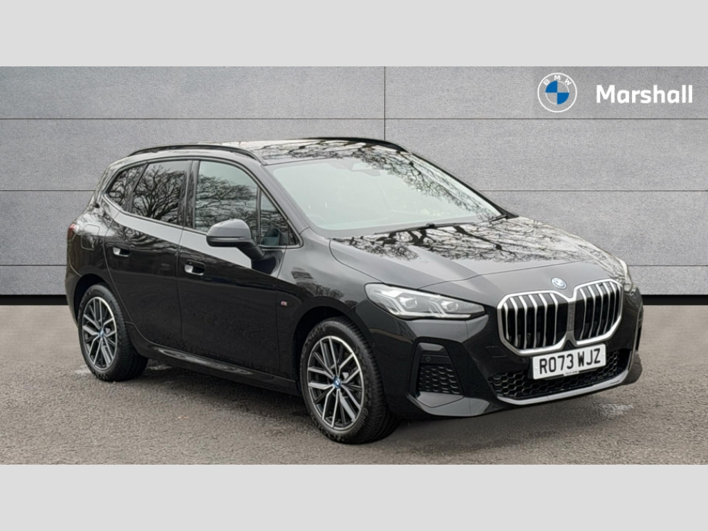 BMW 2 Series 225e xDrive M Sport 5dr DCT Active Guard, Attentiveness assist, Automatic powered tailgate, Automatic start/stop function, BMW Online services, BMW Operating system 9 with BMW Maps, real-time traffic information, in-car experiences, remote services and smartphone integration, BMW Teleservices, Brake pad wear indicator in front and rear, Condition based service, ConnectedDrive Services, Drive off assistant, Flat air vents on instrument panel in high gloss black, adjustable slats with elements in pearl chrome, iDrive controller, Instrument cluster with speedometer with miles per hour read out, tachometer and fuel gauge, Language version English, On board computer - average speed+fuel consumption, service interval, clock/date, odometer/trip meter, outside temperature display and ice warning, Parking assistant with active park distance control, reversing assistant, lateral parking aid and rear view camera, Servotronic variable electric power steering (EPS), Widescreen display, Wireless charging, 45 Litre fuel tank, Drive performance control with ECO PRO comfort + sport mode, eDrive exterior sound, Flexible Fast Charger (Mode 2), Gear selector switch with toggle operation, M Adaptive suspension, Mode 3 charging cable, Petrol Particulate Filter, Steptronic transmission with double clutch and gear shift paddles, 2x USB Type C ports in front centre console for charging and data transfer, 2x USB Type C ports in rear centre console for charging, DAB Digital radio, Welcome sound upon opening of the front driver or passenger door, Air inlet middle part on front apron in lines specific design with trim strip in satinised aluminium, Automatic headlights, Black rear bumper trim strip, BMW emblem, engine compartment lid and tailgate, Body colour roof mouldings, Body coloured door mirror caps, Contoured rear roof spoiler in vehicle colour with side aeroblades in black high-gloss, Driver side exterior mirror lighting with BMW logo projection, Dynamic brake lights, Electric adjustable heated door mirrors, Electric windows - front and rear, with open/close fingertip control, anti-trap facility and comfort closing, Folding door handles integrated flush with surface, Front and rear windscreen wipers with heated front washer nozzles, Front bumper cover with independent design in body colour with inserts in black high gloss, Front bumper design elements in satinised aluminium, Front door exit lights, Front door sill finishers aluminium inserts with M inscription, Front entry sills with aluminium inserts + BMW inscription, Front oramental grille with radiator grille bars in satinised aluminium, Heated rear window, Hidden exhaust pipe, High gloss shadow line, Home light, Key with M identification, LED Daytime running lights and parking lights with turn indicators, LED number plate light, LED third brake light in rear spoiler, M identification on sides, Manual headlight range control, Model inscription on right tailgate, Rain sensor, Rear bumper cover with independent design in body colour with inserts in black high gloss, Rear side wing doors, Shark fin antenna, Side sill covers with independent design in Body colour, Trailer stabilisation logic, Trims on front and rear bumper covers colour-coordinated with side window graphic, Visible VIN plate, Welcome lighting, Windscreen washer nozzle for rear view camera, 12V power socket in luggage compartment and front centre console, 12V socket in right side trim panel, 2 bag hooks in luggage compartment, 2 front reading lights, 2 open cup holders in front centre console, 3 seat bench in 2nd row, 40:20:40 split folding rear seats with backrest, Ambient lighting front and rear, Automatic two zone climate control air conditioning, Bottle trays in all doors, Child seat ISOFIX attachment for two outer rear seats and front passenger seat with anchorage points, Driver and front passenger sports seats, Embellishers on steering wheel spokes in pearl chrome, Four grab handles integrated in roof lining, Front and rear door pockets, Front and rear footwell lighting, Front and rear side armrest integrated into door trim, Front centre console storage compartment, Front head restraints, Glovebox with light, Heated front seats, Height adjustable 3 rear head restraints, Interior door handle recess light on all doors, Luggage compartment lighting, M Anthracite headlining, M specific floor mats, M sport leather steering wheel, Manual adjustment of seat height, fore/aft position, seat depth, backrest tilt and head restraint height, Map pockets, Mechanical rear seats with fore/aft adjustment, Middle centre console storage compartment, Multi-function controls for steering wheel, One piece parcel shelf opens together with tailgate and removable, Rear cloth hooks, Single front passenger seat, Stainless steel pedals, Steering wheel column manual adjustment, Storage compartment lighting in centre console and storage tray in centre stack, Storage compartment net in left side trim panel, Storage compartment with folding cover under centre console armrest cushion, Sunvisors with illuminated vanity mirrors, 3 point seatbelts on all seats, front pyrotechnic belt tensioners, stopper and belt force limiters, rear coded belt buckles, Acoustic protection for pedestrians, Airbag - Front driver and passenger, front and rear head, front side, curtain head protection, manual deactivation of front passenger airbag possible, Anti lock braking system (ABS) with brake assist, Automatic hold function, BMW emergency call, Brake drying, Braking readiness, Child proof locking system in rear door, Cornering brake control, Crash Sensor - activates hazard/interior lighting + unlocks doors, DSC - Dynamic Stability Control, Dynamic brake control, Dynamic Traction Control - DTC, Electromechanical parking brake, Energy recovery system, Front disc brakes, Integrated braking system, PC iBrake PostCrash approach control warning with light braking function, Rear disc brakes, Tyre pressure monitoring system, Warning