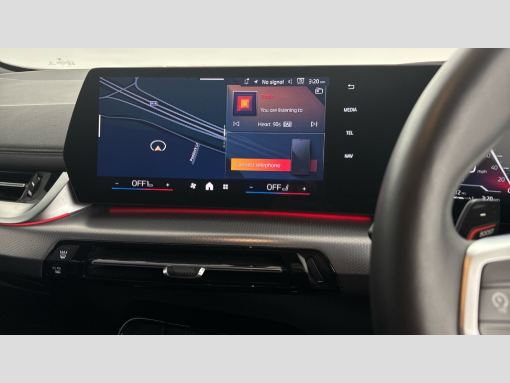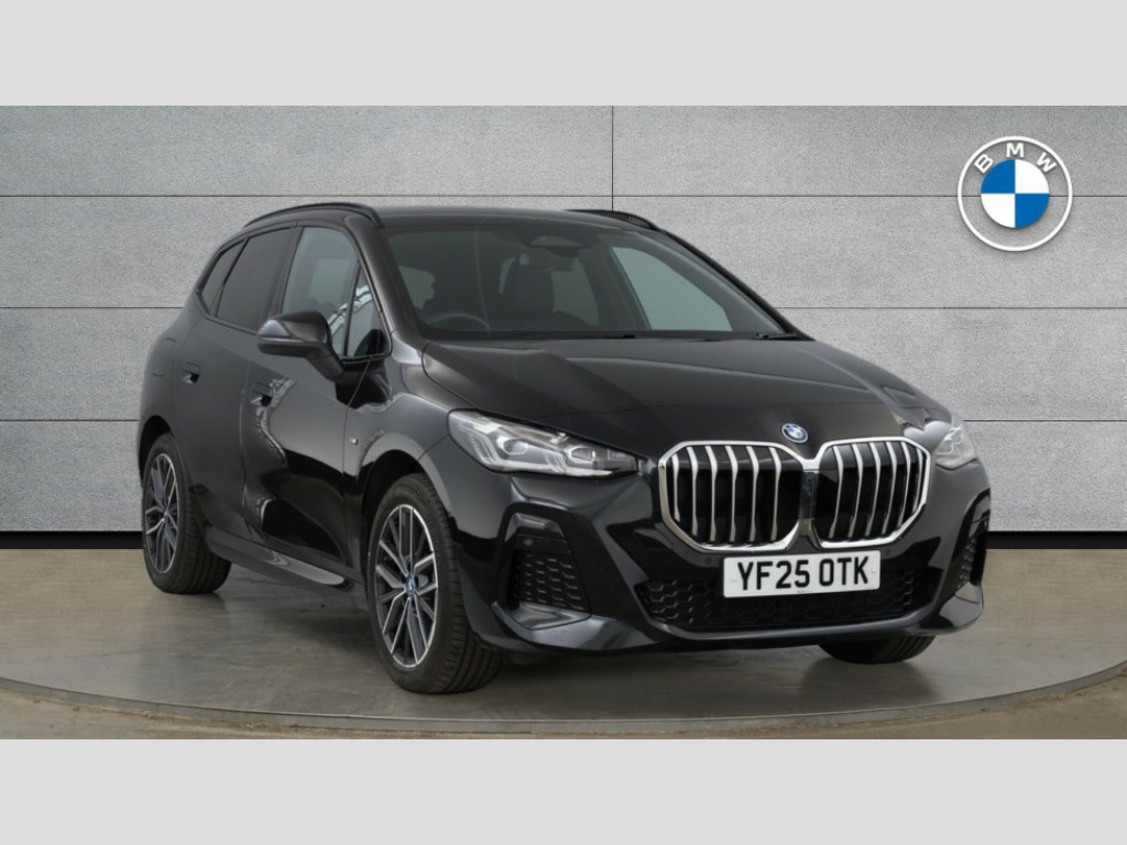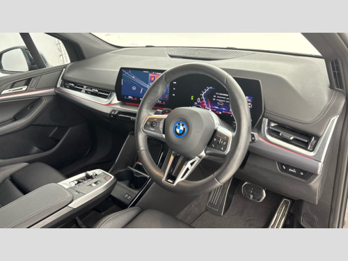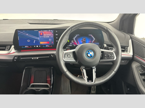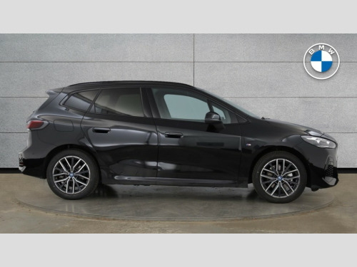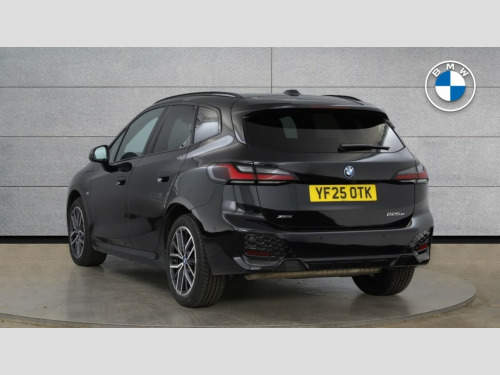 BMW 2 Series 225e xDrive M Sport 5dr DCT Active Guard, Attentiveness assist, Automatic powered tailgate, Automatic start/stop function, BMW Online services, BMW Operating system 9 with BMW Maps, real-time traffic information, in-car experiences, remote services and smartphone integration, BMW Teleservices, Brake pad wear indicator in front and rear, Condition based service, ConnectedDrive Services, Drive off assistant, Flat air vents on instrument panel in high gloss black, adjustable slats with elements in pearl chrome, iDrive controller, Instrument cluster with speedometer with miles per hour read out, tachometer and fuel gauge, Language version English, On board computer - average speed+fuel consumption, service interval, clock/date, odometer/trip meter, outside temperature display and ice warning, Parking assistant with active park distance control, reversing assistant, lateral parking aid and rear view camera, Servotronic variable electric power steering (EPS), Widescreen display, Wireless charging, 11kW AC charging, Drive performance control with ECO PRO comfort + sport mode, eDrive exterior sound, Gear selector switch with toggle operation, M Adaptive suspension, Mode 3 charging cable, Performance Control, Petrol Particulate Filter, Steptronic transmission with double clutch and gear shift paddles, 2x USB Type C ports in front centre console for charging and data transfer, 2x USB Type C ports in rear centre console for charging, DAB Digital radio, Personal eSim, Welcome sound upon opening of the front driver or passenger door, Air inlet middle part on front apron in lines specific design with trim strip in satinised aluminium, Automatic headlights, Black rear bumper trim strip, BMW emblem, engine compartment lid and tailgate, Body colour roof mouldings, Body coloured door mirror caps, Contoured rear roof spoiler in vehicle colour with side aeroblades in black high-gloss, Driver side exterior mirror lighting with BMW logo projection, Dynamic brake lights, Electric adjustable heated door mirrors, Electric windows - front and rear, with open/close fingertip control, anti-trap facility and comfort closing, Folding door handles integrated flush with surface, Front and rear windscreen wipers with heated front washer nozzles, Front bumper cover with independent design in body colour with inserts in black high gloss, Front bumper design elements in satinised aluminium, Front door exit lights, Front door sill finishers aluminium inserts with M inscription, Front entry sills with aluminium inserts + BMW inscription, Front oramental grille with radiator grille bars in satinised aluminium, Heated rear window, Hidden exhaust pipe, High gloss shadow line, High gloss shadowline roof rails, Home light, Key with M identification, LED Daytime running lights and parking lights with turn indicators, LED number plate light, LED third brake light in rear spoiler, M identification on sides, Manual headlight range control, Model inscription on right tailgate, Rain sensor, Rear bumper cover with independent design in body colour with inserts in black high gloss, Rear side wing doors, Shark fin antenna, Side sill covers with independent design in Body colour, Trailer stabilisation logic, Trims on front and rear bumper covers colour-coordinated with side window graphic, Visible VIN plate, Welcome lighting, Windscreen washer nozzle for rear view camera, 12V power socket in luggage compartment and front centre console, 12V socket in right side trim panel, 2 bag hooks in luggage compartment, 2 front reading lights, 2 open cup holders in front centre console, 2 x USB Type C ports for charging in front centre console + 2 x USB Type C ports for charging in rear centre console, 3 seat bench in 2nd row, 40:20:40 split folding rear seat backrests, Ambient lighting front and rear, Automatic two zone climate control air conditioning, Bottle trays in all doors, Child seat ISOFIX attachment for two outer rear seats and front passenger seat with anchorage points, Driver and front passenger sports seats, Embellishers on steering wheel spokes in pearl chrome, Four grab handles integrated in roof lining, Front and rear door pockets, Front and rear footwell lighting, Front and rear side armrest integrated into door trim, Front centre console storage compartment, Front head restraints, Glovebox with light, Heated front seats, Height adjustable 3 rear head restraints, Illuminated wireless charging tray, Interior door handle recess light on all doors, Luggage compartment lighting, M Anthracite headlining, M specific floor mats, M sport leather steering wheel, Manual adjustment of seat height, fore/aft position, seat depth, backrest tilt and head restraint height, Map pockets, Mechanical rear seats with fore/aft adjustment, Middle centre console storage compartment, Multi-function controls for steering wheel, One piece parcel shelf opens together with tailgate and removable, Rear cloth hooks, Single front passenger seat, Stainless steel pedals, Steering wheel column manual adjustment, Storage compartment lighting in centre console and storage tray in centre stack, Storage compartment net in left side trim panel, Storage compartment with folding cover under centre console armrest cushion, Sunvisors with illuminated vanity mirrors, 3 point seatbelts on all seats, front pyrotechnic belt tensioners, stopper and belt force limiters, rear coded belt buckles, Acoustic protection for pedestrians, Airbag - Front driver and passenger, front and rear head, front side, curtain head protection, manual deactivation of front passenger airbag possible, Anti lock braking system (ABS) with brake assist, Automatic hold function, BMW emergency call, Brake drying, Braking readiness, Child proof locking system in rear door, Cornering brake control, Crash Sensor - activates hazard/interior lighting + unlocks doors, DSC - Dynamic Stability Control, Dynamic brake control, Dynamic Traction Control - DTC, Electromechanical parking brake, Energy recovery s