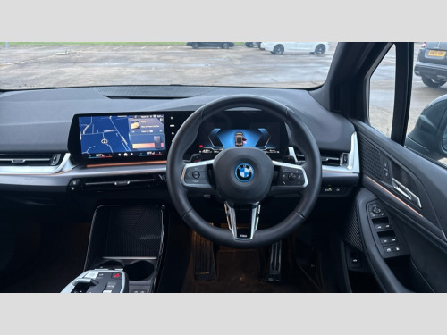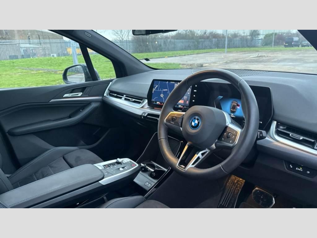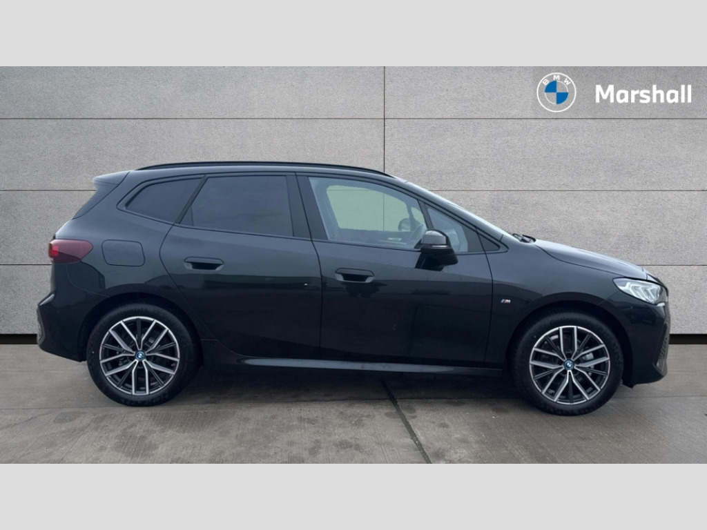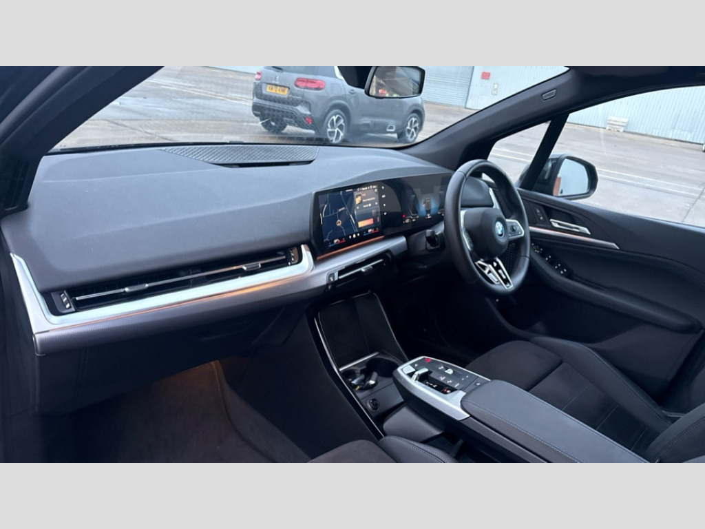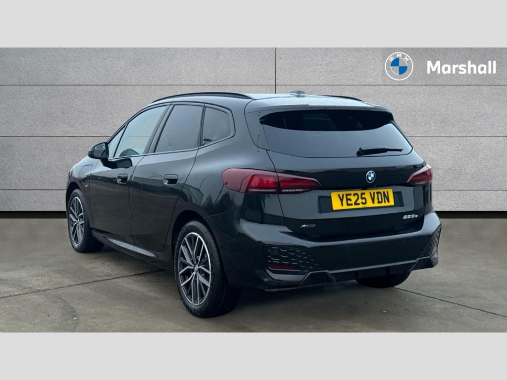 BMW 2 Series 225e xDrive M Sport 5dr DCT Active Guard, Attentiveness assist, Automatic powered tailgate, Automatic start/stop function, BMW Online services, BMW Operating system 9 with BMW Maps, real-time traffic information, in-car experiences, remote services and smartphone integration, BMW Teleservices, Brake pad wear indicator in front and rear, Condition based service, ConnectedDrive Services, Drive off assistant, Flat air vents on instrument panel in high gloss black, adjustable slats with elements in pearl chrome, iDrive controller, Instrument cluster with speedometer with miles per hour read out, tachometer and fuel gauge, Language version English, On board computer - average speed+fuel consumption, service interval, clock/date, odometer/trip meter, outside temperature display and ice warning, Parking assistant with active park distance control, reversing assistant, lateral parking aid and rear view camera, Servotronic variable electric power steering (EPS), Widescreen display, Wireless charging, 11kW AC charging, Drive performance control with ECO PRO comfort + sport mode, eDrive exterior sound, Gear selector switch with toggle operation, M Adaptive suspension, Mode 3 charging cable, Performance Control, Petrol Particulate Filter, Steptronic transmission with double clutch and gear shift paddles, 2x USB Type C ports in front centre console for charging and data transfer, 2x USB Type C ports in rear centre console for charging, DAB Digital radio, Personal eSim, Welcome sound upon opening of the front driver or passenger door, Air inlet middle part on front apron in lines specific design with trim strip in satinised aluminium, Automatic headlights, Black rear bumper trim strip, BMW emblem, engine compartment lid and tailgate, Body colour roof mouldings, Body coloured door mirror caps, Contoured rear roof spoiler in vehicle colour with side aeroblades in black high-gloss, Driver side exterior mirror lighting with BMW logo projection, Dynamic brake lights, Electric adjustable heated door mirrors, Electric windows - front and rear, with open/close fingertip control, anti-trap facility and comfort closing, Folding door handles integrated flush with surface, Front and rear windscreen wipers with heated front washer nozzles, Front bumper cover with independent design in body colour with inserts in black high gloss, Front bumper design elements in satinised aluminium, Front door exit lights, Front door sill finishers aluminium inserts with M inscription, Front entry sills with aluminium inserts + BMW inscription, Front oramental grille with radiator grille bars in satinised aluminium, Heated rear window, Hidden exhaust pipe, High gloss shadow line, High gloss shadowline roof rails, Home light, Key with M identification, LED Daytime running lights and parking lights with turn indicators, LED number plate light, LED third brake light in rear spoiler, M identification on sides, Manual headlight range control, Model inscription on right tailgate, Rain sensor, Rear bumper cover with independent design in body colour with inserts in black high gloss, Rear side wing doors, Shark fin antenna, Side sill covers with independent design in Body colour, Trailer stabilisation logic, Trims on front and rear bumper covers colour-coordinated with side window graphic, Visible VIN plate, Welcome lighting, Windscreen washer nozzle for rear view camera, 12V power socket in luggage compartment and front centre console, 12V socket in right side trim panel, 2 bag hooks in luggage compartment, 2 front reading lights, 2 open cup holders in front centre console, 2 x USB Type C ports for charging in front centre console + 2 x USB Type C ports for charging in rear centre console, 3 seat bench in 2nd row, 40:20:40 split folding rear seat backrests, Ambient lighting front and rear, Automatic two zone climate control air conditioning, Bottle trays in all doors, Child seat ISOFIX attachment for two outer rear seats and front passenger seat with anchorage points, Driver and front passenger sports seats, Embellishers on steering wheel spokes in pearl chrome, Four grab handles integrated in roof lining, Front and rear door pockets, Front and rear footwell lighting, Front and rear side armrest integrated into door trim, Front centre console storage compartment, Front head restraints, Glovebox with light, Heated front seats, Height adjustable 3 rear head restraints, Illuminated wireless charging tray, Interior door handle recess light on all doors, Luggage compartment lighting, M Anthracite headlining, M specific floor mats, M sport leather steering wheel, Manual adjustment of seat height, fore/aft position, seat depth, backrest tilt and head restraint height, Map pockets, Mechanical rear seats with fore/aft adjustment, Middle centre console storage compartment, Multi-function controls for steering wheel, One piece parcel shelf opens together with tailgate and removable, Rear cloth hooks, Single front passenger seat, Stainless steel pedals, Steering wheel column manual adjustment, Storage compartment lighting in centre console and storage tray in centre stack, Storage compartment net in left side trim panel, Storage compartment with folding cover under centre console armrest cushion, Sunvisors with illuminated vanity mirrors, 3 point seatbelts on all seats, front pyrotechnic belt tensioners, stopper and belt force limiters, rear coded belt buckles, Acoustic protection for pedestrians, Airbag - Front driver and passenger, front and rear head, front side, curtain head protection, manual deactivation of front passenger airbag possible, Anti lock braking system (ABS) with brake assist, Automatic hold function, BMW emergency call, Brake drying, Braking readiness, Child proof locking system in rear door, Cornering brake control, Crash Sensor - activates hazard/interior lighting + unlocks doors, DSC - Dynamic Stability Control, Dynamic brake control, Dynamic Traction Control - DTC, Electromechanical parking brake, Energy recovery s
