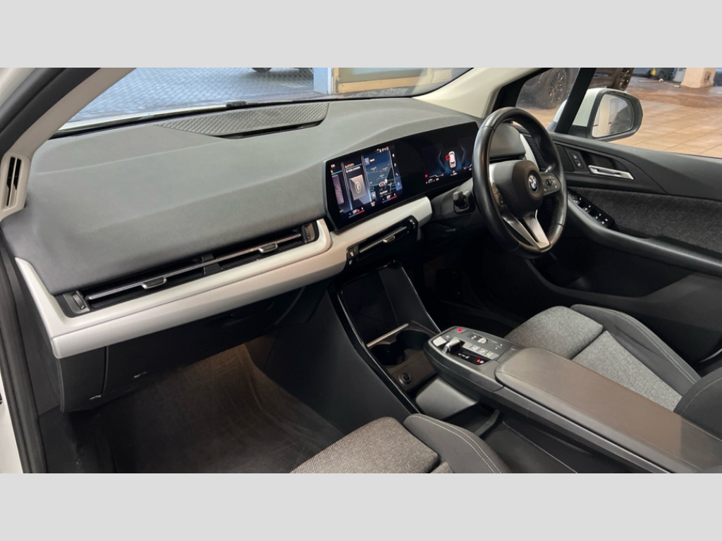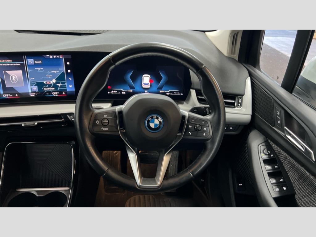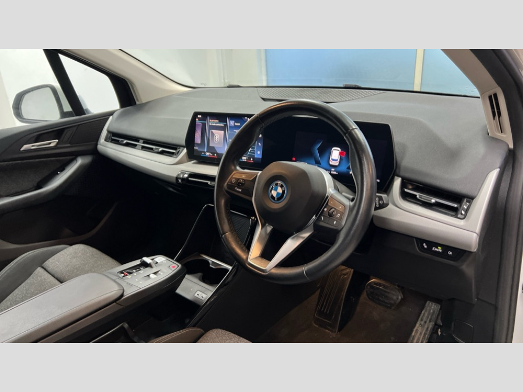 BMW 2 Series 225e xDrive Sport 5dr DCT Active Guard incl speed limiting and lane departure functions with auto steering, and front collision warning with brake intervention, Automatic powered tailgate, Automatic start/stop function, BMW Iconic sounds electric, BMW Online services, BMW Teleservices, Brake pad wear indicator in front and rear, Condition based service, Drive off assistant, Flat air vents on instrument panel in high gloss black, adjustable slats with elements in pearl chrome, iDrive controller, Language version English, On board computer - average speed+fuel consumption, service interval, clock/date, odometer/trip meter, outside temperature display and ice warning, Parking assistant with active park distance control, reversing assistant, lateral parking aid and rear view camera, Servotronic variable electric power steering (EPS), Smartphone integration, Widescreen display, 45 Litre fuel tank, Drive performance control with ECO PRO comfort + sport mode, eDrive exterior sound, Gear selector switch with toggle operation, Mode 3 charging cable, Petrol Particulate Filter, Standard suspension, Steptronic transmission with double clutch, 2x USB Type C ports in front centre console for charging and data transfer, 2x USB Type C ports in rear centre console for charging, DAB Digital radio, Welcome sound upon opening of the front driver or passenger door, Automatic headlights, BMW emblem, engine compartment lid and tailgate, BMW radiator grille with grille struts, end face black high-gloss, radiator grille frame chrome high-gloss, Body colour sill covers, Body coloured door mirror caps, Contoured rear roof spoiler in vehicle colour with side aeroblades in black high-gloss, Driver side exterior mirror lighting with BMW logo projection, Dynamic brake lights, Electric adjustable heated door mirrors, Electric windows - front and rear, with open/close fingertip control, anti-trap facility and comfort closing, Folding door handles integrated flush with surface, Front and rear windscreen wipers with heated front washer nozzles, Front bumper cover with air inlet trims for air curtains in matt black, Front door exit lights, Heated rear window, Hidden exhaust pipe, High gloss shadow line, High gloss shadowline roof rails, LED Daytime running lights and parking lights with turn indicators, LED number plate light, LED third brake light in rear spoiler, Manual headlight range control, Matt black roof strips, Model inscription on right tailgate, Rain sensor, Rear bumper cover with two L-shaped trims in Pearl chrome, Rear side wing doors, Shark fin antenna, Trailer stabilisation logic, Visible VIN plate, Welcome lighting, Windscreen washer nozzle for rear view camera, 12V power socket in luggage compartment and front centre console, 12V socket in right side trim panel, 2 bag hooks in luggage compartment, 2 front reading lights, 2 open cup holders in front centre console, 3 seat bench in 2nd row, 40:20:40 split folding rear seat backrests, Ambient lighting front and rear, Automatic two zone climate control air conditioning, Bottle trays in all doors, Child seat ISOFIX attachment for two outer rear seats and front passenger seat with anchorage points, Driver and front passenger sports seats, Footrest and pedals in black plastic, Four grab handles integrated in roof lining, Front and rear door pockets, Front and rear footwell lighting, Front and rear side armrest integrated into door trim, Front and rear velour floor mats in anthracite, Front centre console storage compartment, Front head restraints, Glovebox with light, Height adjustable 3 rear head restraints, Interior door handle recess light on all doors, Luggage compartment lighting, Map pockets, Mechanical rear seats with fore/aft adjustment, Multi-function controls for steering wheel, One piece parcel shelf opens together with tailgate and removable, Rear cloth hooks, Single front passenger seat, Steering wheel column manual adjustment, Storage compartment lighting in centre console and storage tray in centre stack, Storage compartment net in left side trim panel, Storage compartment with folding cover under centre console armrest cushion, Storage tray in right side trim panel, Sunvisors with illuminated vanity mirrors, Three spoke sport leather steering wheel, Connected pack professional - 2 Series Active Tourer, 3 point seatbelts on all seats, front pyrotechnic belt tensioners, stopper and belt force limiters, rear coded belt buckles, Airbag - Front driver and passenger, front and rear head, front side, curtain head protection, manual deactivation of front passenger airbag possible, Anti lock braking system (ABS) with brake assist, Automatic hold function, BMW emergency call, Brake drying, Braking readiness, Child proof locking system in rear door, Cornering brake control, Crash Sensor - activates hazard/interior lighting + unlocks doors, DSC - Dynamic Stability Control, Dynamic brake control, Dynamic Traction Control - DTC, Electromechanical parking brake, Energy recovery system, Front disc brakes, Integrated braking system, PC iBrake PostCrash approach control warning with light braking function, Rear disc brakes, Tyre pressure monitoring system, Warning triangle and first aid kit, Anti theft alarm system, Closing system with central locking, Engine immobiliser, Locking wheel bolts, Front centre console trim in high gloss black with my mode expressive, BMW mobility tyre sealing system, Reduced rolling resistance tyres
