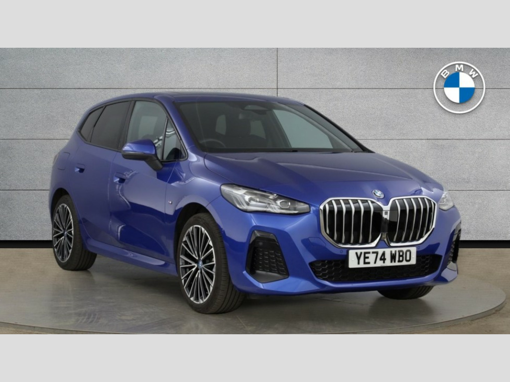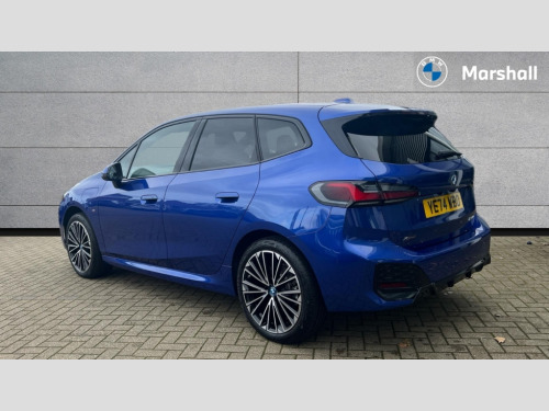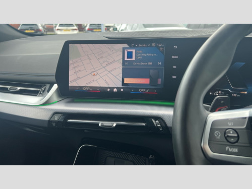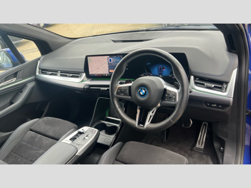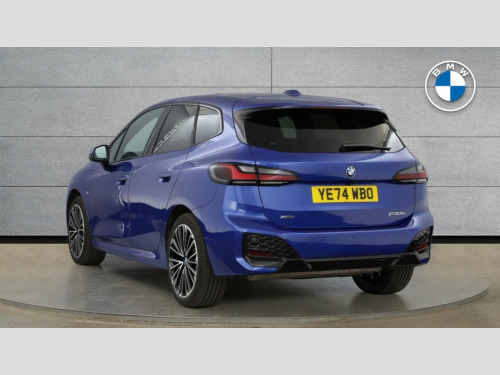 BMW 2 Series 230e xDrive M Sport 5dr DCT Active Guard, Attentiveness assist, Automatic powered tailgate, Automatic start/stop function, BMW Online services, BMW Operating system 9 with BMW Maps, real-time traffic information, in-car experiences, remote services and smartphone integration, BMW Teleservices, Brake pad wear indicator in front and rear, Condition based service, ConnectedDrive Services, Drive off assistant, Flat air vents on instrument panel in high gloss black, adjustable slats with elements in pearl chrome, iDrive controller, Instrument cluster with speedometer with miles per hour read out, tachometer and fuel gauge, Language version English, On board computer - average speed+fuel consumption, service interval, clock/date, odometer/trip meter, outside temperature display and ice warning, Parking assistant with active park distance control, reversing assistant, lateral parking aid and rear view camera, Servotronic variable electric power steering (EPS), Widescreen display, Wireless charging, Drive performance control with ECO PRO comfort + sport mode, eDrive exterior sound, Gear selector switch with toggle operation, M Adaptive suspension, Mode 3 charging cable, Performance Control, Petrol Particulate Filter, Steptronic transmission with double clutch and gear shift paddles, 2x USB Type C ports in front centre console for charging and data transfer, 2x USB Type C ports in rear centre console for charging, DAB Digital radio, Personal eSim, Welcome sound upon opening of the front driver or passenger door, Air inlet middle part on front apron in lines specific design with trim strip in satinised aluminium, Automatic headlights, Black rear bumper trim strip, BMW emblem, engine compartment lid and tailgate, Body colour roof mouldings, Body coloured door mirror caps, Contoured rear roof spoiler in vehicle colour with side aeroblades in black high-gloss, Driver side exterior mirror lighting with BMW logo projection, Dynamic brake lights, Electric adjustable heated door mirrors, Electric windows - front and rear, with open/close fingertip control, anti-trap facility and comfort closing, Folding door handles integrated flush with surface, Front and rear windscreen wipers with heated front washer nozzles, Front bumper cover with independent design in body colour with inserts in black high gloss, Front bumper design elements in satinised aluminium, Front door exit lights, Front door sill finishers aluminium inserts with M inscription, Front entry sills with aluminium inserts + BMW inscription, Front oramental grille with radiator grille bars in satinised aluminium, Heated rear window, Hidden exhaust pipe, High gloss shadow line, Home light, Key with M identification, LED Daytime running lights and parking lights with turn indicators, LED number plate light, LED third brake light in rear spoiler, M identification on sides, Manual headlight range control, Model inscription on right tailgate, Rain sensor, Rear bumper cover with independent design in body colour with inserts in black high gloss, Rear side wing doors, Shark fin antenna, Side sill covers with independent design in Body colour, Trailer stabilisation logic, Trims on front and rear bumper covers colour-coordinated with side window graphic, Visible VIN plate, Welcome lighting, Windscreen washer nozzle for rear view camera, 12V power socket in luggage compartment and front centre console, 12V socket in right side trim panel, 2 bag hooks in luggage compartment, 2 front reading lights, 2 open cup holders in front centre console, 2 x USB Type C ports for charging in front centre console + 2 x USB Type C ports for charging in rear centre console, 3 seat bench in 2nd row, 40:20:40 split folding rear seat backrests, Ambient lighting front and rear, Automatic two zone climate control air conditioning, Bottle trays in all doors, Child seat ISOFIX attachment for two outer rear seats and front passenger seat with anchorage points, Driver and front passenger sports seats, Embellishers on steering wheel spokes in pearl chrome, Four grab handles integrated in roof lining, Front and rear door pockets, Front and rear footwell lighting, Front and rear side armrest integrated into door trim, Front centre console storage compartment, Front head restraints, Glovebox with light, Heated front seats, Height adjustable 3 rear head restraints, Illuminated wireless charging tray, Interior door handle recess light on all doors, Luggage compartment lighting, M Anthracite headlining, M specific floor mats, M sport leather steering wheel, Manual adjustment of seat height, fore/aft position, seat depth, backrest tilt and head restraint height, Map pockets, Mechanical rear seats with fore/aft adjustment, Middle centre console storage compartment, Multi-function controls for steering wheel, One piece parcel shelf opens together with tailgate and removable, Rear cloth hooks, Single front passenger seat, Stainless steel pedals, Steering wheel column manual adjustment, Storage compartment lighting in centre console and storage tray in centre stack, Storage compartment net in left side trim panel, Storage compartment with folding cover under centre console armrest cushion, Sunvisors with illuminated vanity mirrors, 3 point seatbelts on all seats, front pyrotechnic belt tensioners, stopper and belt force limiters, rear coded belt buckles, Acoustic protection for pedestrians, Airbag - Front driver and passenger, front and rear head, front side, curtain head protection, manual deactivation of front passenger airbag possible, Anti lock braking system (ABS) with brake assist, Automatic hold function, BMW emergency call, Brake drying, Braking readiness, Child proof locking system in rear door, Cornering brake control, Crash Sensor - activates hazard/interior lighting + unlocks doors, DSC - Dynamic Stability Control, Dynamic brake control, Dynamic Traction Control - DTC, Electromechanical parking brake, Energy recovery system, Front disc brakes, Integrated braking system,