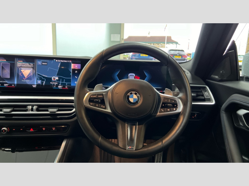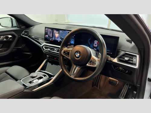 BMW 2 Series 230i M Sport 2dr Step Auto 2 USB connections for charging and transferring data, 4G LTE connectivity with hard wired 4G network sim card, Attentiveness assist, Bluetooth with USB, BMW ConnectedDrive online services, BMW Intelligent Personal Assistant, BMW operating system 8 with variable, configurable widgets display information in real time, BMW Teleservices, Check Control warning system for monitoring of lights and door/luggage compartment open warning, Direct selection buttons, Drive off assistant, Eco pro mode, Electric power steering, Front and rear parking sensors, Front/rear Parking distance control, iDrive controller with turn and press function, Integrated owners handbook, Intelligent functions, Live cockpit plus with nav function 12.3" instrument cluster and 14.9" centre display, Oil sensor for level and grade, Optimum shift indicator, Personal Profile, Touch operation on control display, Variable sport steering, Widescreen multi-media display, WiFi interface for wireless connection of mobile terminal devices, Active sound design, Aluminium lightweight construction, Balancer shaft, BMW TwinPower Turbo four-cylinder petrol engine, Double VANOS, Drive performance control with ECO PRO comfort + sport mode, Electronic differential lock, High precision injection, M sport suspension, Petrol Particulate Filter, Sport automatic steptronic transmission with gearshift paddles, manual gearshift time display, launch control, coasting idle ECO PRO/COMFORT modes, Sprint mode, Twin scroll turbocharger with Valvetronic, DAB tuner, Harman/Kardon surround sound system, Acoustic windscreen wipers for reduced driving noise, Adaptive LED Headlights, Automatic windscreen wipers and automatic headlight, Automatically dimming rear view mirror, BMW individual lights shadow line, Body colour door handles flush with door surface, Body colour door mirrors, Body colour front and rear bumpers, Daytime running lights, Electric windows - front and rear, with open/close fingertip control and trap release, Exhaust tailpipes x2 - 90mm in left and right, Extended high gloss shadow line exterior trim, Fading support, Front and rear bumper system with replaceable deformation elements, Front door sill finishers in black plastic with BMW designation, Front windscreen wipers with integrated washer jets, Green tinted heat protection glazing, High beam assistant, High gloss black sill, bumper trim sides and diffuser insert, High level third brake light, Indicators integrated int mirror housing, LED registration plate light, LED technology rear tail lights, brake lights and turn indicators, Lightweight engineering, M Sport spoiler - Gurney in high gloss black, Model designation on right side of tailgate, One piece kidney grille with hight gloss chrome surround, Rear boot, Rear fog lights, Reversing light in rear light cluster, Shark fin antenna, Single part LED rear lights with smoked glass components, Trailer stabilisation logic, Visible VIN plate, 12V power socket in front centre console with blanking plug, 2 cupholders in front centre console, 2 zone automatic air conditioning, Ambient lighting, Compartment in front of cupholder, Conditioned based service, Driver seat backrest width adjustment, Front and rear side armrests integrated into door trim, Front armrest, Front door pockets, Front head restraints, Front sport seats, Heated front seats, Illuminated glove compartment with separate small compartment, M headliner Anthracite, M sport leather steering wheel, Manually adjustment steering wheel column, Rear seat backrest with manual 40:20:40 split folding, Rear seat centre foldable armrest with integrated cup holder, Single front passenger seat, Storage compartment between rear seats, Storage tray and compartment with cover in centre console, Sun visors with vanity mirrors and insert tab, Through loading system with 40/20/40 split folding 2 rear seat in 2nd row, Two folding rear seat headrests, Velour floor mats, Additional storage compartment pack without USB - 2 Series Coupe, Connected pack professional - 2 Series Coupe, Interior and exterior mirror pack - 2 Series Coupe, M Sport exterior styling aerodynamics pack - 2 Series Coupe, 2 tone horn, Anti lock braking system (ABS) with cornering brake control, Automatic Stability Control (ASC), BMW emergency call, Brake drying, Child seat ISOFIX attachment for the two outer rear seats, Crash sensor activating of airbags, Unlocking doors, hazard warning lights, interior light, safety battery terminal, Deactivation of fuel pump in the event of a crash, Driver and front passenger airbags, Driver and front passenger side airbags, integrated in the door side seat backrest bolsters for all seat variants, Dynamic brake control, Dynamic stability control + (DSC+), Dynamic Traction Control - DTC, Electrically operated hand brake including automatic hold function and automatic release when driving off, Front and rear disc brakes, Head airbags for all 4 outer seats, M sport seatbelt, Manual deactivation of front passenger airbag, Seat belt security check for driver and front passenger, Seatbelt warning, Side impact protection, Three point seat belts on 4 seats including front belt stopper, pyrotechnic belt tensioners and belt force limiters, Tyre pressure sensor, Warning triangle and first aid kit, Alarm system (Thatcham 1) with remote control and electronic engine immobiliser, Central locking switch for all doors, fuel filler cap and luggage compartment, Deadlocking function system to all doors, Drive away locking system on all doors and luggage compartment, Locking wheel bolts, Start/Stop button (illuminated) in centre console with keyless engine start and Auto Start-Stop deactivation button, Two remote control key with integrated key - one button for open and close doors/fuel flap/tailgate and separate button for unlock luggage compartment, BMW mobility tyre sealing system, Electrically powered 12V compressor, Reduced rolling resistance tyres
