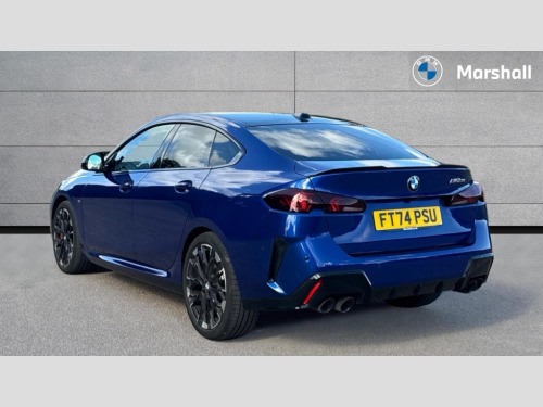 BMW 2 Series M235 xDrive 4dr Step Auto 3 driving modes Normal, Eco, Sport, Active guard plus, Attentiveness assist, Auto start-stop, Bluetooth / WiFi interface for wireless connection of mobile terminal devices and audio streaming, BMW ConnectedDrive online services, BMW Intelligent Personal Assistant, BMW Live cockpit plus, BMW Online services, BMW operating system with 7.0 mid interface, BMW Teleservices, Check Control warning system for monitoring of lights and door/luggage compartment open warning, Cruise control with braking function, Electric power steering, Front and rear parking sensors, Gearshift time display in manual mode, Integrated navigation data with map data via USB +features such as 3D landmarks and micro city models, Integrated owners handbook, Intelligent voice assistant, Lane departure warning system, Oil sensor for level and grade, On board computer - average speed+fuel consumption, service interval, clock/date, odometer/trip meter, outside temperature display and ice warning, Optimum shift indicator, Park assist including reversing assistant, lateral parking aid and reversing assist camera, Personal e-SIM, Personal Profile, Pull away assistant, Speed limit Info including no-overtaking indicator, Speed limiting function, Sporty fast gear shifting in sport mode, 49 litre fuel tank, Automatic transmission with gearshift paddles, Drive Performance Control, Electronic differential lock, M Adaptive suspension, Performance Control, Petrol Particulate Filter, VALVETRONIC engine management, 2x USB Type C ports (for charging and data transfer), 4G LTE Connectivity with hard wied 4G network sim card, DAB Digital radio, HiFi Loudspeaker system Harman Kardon with 12 speakers, Auto wipers, Automatic headlight beam throw control, Automatically dimming rear view mirror, Body colour door handles, Body colour mirror caps, Direction indicator side lights integrated exterior mirrors, Exterior M sport design elements, Folding side mirrors with auto dimming/folding wing mirrors with auto dimming, Follow me home headlights, Front and rear bumper panel with M specific design, in body colour with inserts in black high gloss, Heated door mirrors, High level third brake light, Key with M identification, LED daytime running lights, LED eyebrow turn indicators, M identification on the sides, M rear spoiler, Rain sensor with automatic headlight activation, Rear boot, Rear fog lights, Rear side wing doors, Rear window heating, Roof trim strip in vehicle colour, Shark fin antenna, Side sill covers with M specific design in body colour, Sun protection glass, Trailer stabilisation logic, Visible VIN plate, Welcome lighting, 12V power socket in centre console, 2 cupholders in front centre console, 3 rear seat head restraints, 3 seat bench in 2nd row, 3 spoke sports leather steering wheel with black leather and stitching, pearl chrome decorative finish, specific M Badge, Anthracite headlining, Child seat ISOFIX attachment for two outer rear seats and front passenger seat with anchorage points, Conditioned based service, Driver and front passenger backrest net on rear, Driver and front passenger seat heating, Four grab handles integrated in roof lining, Front and rear door pockets including bottle trays, Front and rear side armrest integrated into door trim, Front head restraints, Height adjustable front head restraints, Luggage compartment lighting, Rear seat backrest with manual 60:40 split folding with 3 top tether clips integrated on rear of seat panels, Single front passenger seat, Stainless steel pedal covers, Sun visors with vanity mirrors and insert tab, Connected pack professional - 2 Series Gran Coupe, 2 tone horn, Airbag - Front driver and passenger, front and rear head, front side, curtain head protection, manual deactivation of front passenger airbag possible, Anti lock braking system (ABS) with cornering brake control, BMW emergency call, Brake drying, Braking readiness, City braking function, Crash sensor activating of airbags, Unlocking doors, hazard warning lights, interior light, safety battery terminal, Dynamic stability control + (DSC+), Dynamic Traction Control - DTC, Electrically operated hand brake, Front and rear disc brakes, PC iBrake (Post crash approach control warning with light braking function), Rear brake discs, Rear child proof door locks, Seat belt security check for driver and front passenger, Seatbelt warning, Side impact protection, Three point seat belts on all seats including front belt stopper, pyrotechnic belt tensioners and belt force limiters, Trailer stability control, Tyre pressure monitoring system, Ventilated front disc brakes, Warning triangle and first aid kit, Central locking switch for all doors, fuel filler cap and luggage compartment, Deadlocking function system to all doors, Drive away locking system on all doors and luggage compartment, Locking wheel bolts, Start/Stop button (illuminated) in centre console with keyless engine start and Auto Start-Stop deactivation button, Thatcham Cat.1 alarm and immobiliser, Two remote control key with integrated key - open/close doors/fuel flap/tailgate +1 button for unlock compartment with M design high gloss black inlay, Reduced rolling resistance tyres, Tyre repair kit