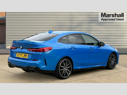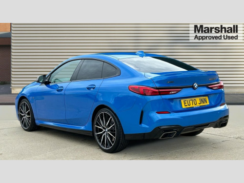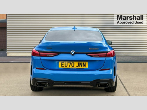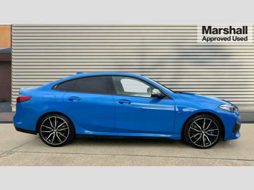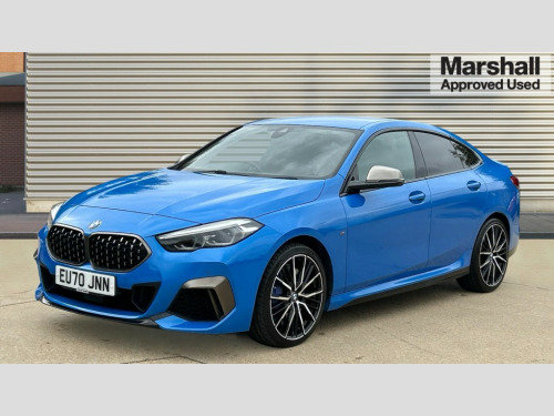 BMW 2 Series M235i xDrive 4dr Step Auto Active guard plus, Attentiveness assist, Auto start-stop, BMW iDrive controller on centre console, BMW Intelligent Personal Assistant, BMW Live Cockpit Professional with 10.25" high resolution instrument and control display, BMW Online services, BMW operating system with 7.0 mid interface, BMW Teleservices, Check Control warning system for monitoring of lights and door/luggage compartment open warning, Connected eDrive Services, Eco pro mode, Electric Power Steering (EPS) with Servotronic, Integrated navigation data with map data via USB +features such as 3D landmarks and micro city models, Integrated owners handbook, Intelligent voice assistant, On board computer - average speed+fuel consumption, service interval, clock/date, odometer/trip meter, outside temperature display and ice warning, Optimum shift indicator, Personal Profile, Pull away assistant, Smartphone integration, Speed limiting function, 2 balance shafts, 8 speed automatic transmission, Anti roll bar front and rear, Double VANOS, Drive performance control with ECO PRO comfort + sport mode, Electronic differential lock, Engine cover with M performance designation, High precision injection, Larger fuel tank capacity (50 litres), Launch control, Performance Control, Petrol Particulate Filter, Twin tube gas filled shock absorbers with degressive characteristic curve, VALVETRONIC engine management, 2x USB Type C ports (for charging and data transfer), 4G LTE Connectivity with hard wied 4G network sim card, Bluetooth audio streaming, BMW Music, Connected music, DAB digital radio, MP3 players and RDS double tuner, Automatic headlight beam throw control, Automatically dimming rear view mirror, Body colour door handles, Direction indicator side lights integrated exterior mirrors, Electric windows - front and rear, with open/close fingertip control and trap release, Exterior mirrors - electrically folding with anti-dazzle, Fading support, Follow me home headlights, Front and rear bumper system with replaceable deformation elements, Front door sill finishers in black plastic with M235i designation, Heated, electrically adjustable exterior mirror aspheric on driver side, convex on passenger side, High gloss black B pillar finish, High gloss shadow line exterior trim, High level third brake light, LED daytime running lights, Lightweight engineering, M performance exhaust system, M rear spoiler, Model designation on right side of tailgate, Preparation for high beam assistant, Rain sensor with automatic headlight activation, Rear fog lights, Reversing light in rear light cluster, Welcome lighting, 12V power socket in centre console, 2 cupholders in front centre console, 3 rear seat head restraints, 3 spoke M sports design leather steering wheel finished in nappa leather with specific M badge, Anthracite floor mats, Anthracite headlining, Automatic two zone climate control air conditioning, Child seat ISOFIX attachment for two outer rear seats and front passenger seat with anchorage points, Conditioned based service, Driver and front passenger seat heating, Front and rear door pockets, Front and rear side armrests integrated into door trim, Front armrest foldable with integrated storage compartment, Front centre interior light over interior mirror and rear centre automatic interior light when door is opened/ignition switched off or via remote key, Front head restraints, Front M seats, Glove compartment, Glovebox with light, Luggage compartment lighting, M Sport seats, Manually adjustment steering wheel column, Multi-function controls for steering wheel, Steering wheel paddles, Sun visors with vanity mirrors and insert tab, Through loading system with 40/20/40 split folding rear seat, Two lashing eyes, Connected pack professional - 2 Series Gran Coupe, Extended Lighting pack - 2 Series Gran Coupe, Extended storage pack - 2 Series Gran Coupe, M Sport exterior styling aerodynamics pack - 2 Series Gran Coupe 235i, 2 tone horn, Airbag - Front driver and passenger, front and rear head, front side, curtain head protection, manual deactivation of front passenger airbag possible, Anti lock braking system (ABS) with cornering brake control, BMW emergency call, Brake drying, Braking readiness, Crash sensor activating of airbags, Unlocking doors, hazard warning lights, interior light, safety battery terminal, Dynamic stability control + (DSC+), Dynamic Traction Control - DTC, Electrically operated hand brake, Integrated torsen mechanical limited slip differential on front axle, M Sport braking system in blue high gloss + blue painted brake calipers with M designation, M sport seatbelt, Rear brake discs, Rear child proof door locks, Seat belt security check for driver and front passenger, Seatbelt warning, Side impact protection, Three point seat belts on all seats including front belt stopper, pyrotechnic belt tensioners and belt force limiters, Trailer stability control, Tyre pressure monitoring system, Ventilated front disc brakes, Warning triangle and first aid kit, Central locking switch for all doors, fuel filler cap and luggage compartment, Deadlocking function system to all doors, Drive away locking system on all doors and luggage compartment, Locking wheel bolts, Remote control with integrated key with High-gloss Black inlay and M designation and 1 button for open/ close lock, window, open luggage compartment, Start/stop button with Comfort Go keyless engine start and auto Start/stop deactivation button, Thatcham Cat.1 alarm and immobiliser, Two remote control key with integrated key - one button for open and close doors/fuel flap/tailgate and separate button for unlock luggage compartment, Contrast stitching on instrument panel, 18" Burnished M double spoke Bi-colour alloy wheels finished in Cerium grey matt - style 556M, BMW mobility system, Reduced rolling resistance tyres