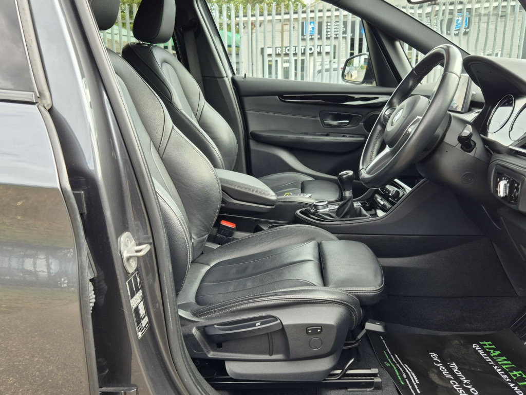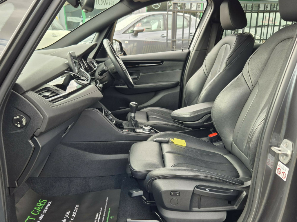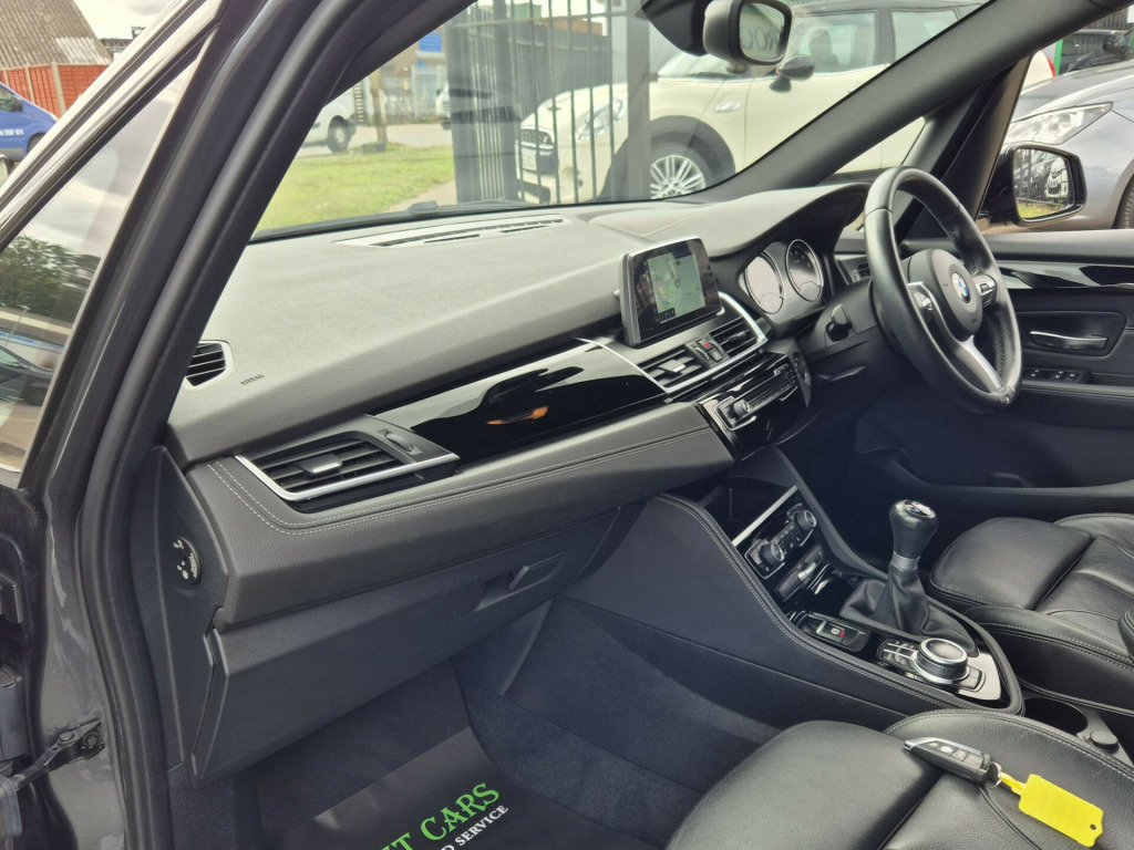 SERVICE HISTORY, SAT NAV, HEATED FULL LEATHER, ELECTRIC TAILGATE, PARKING SENSORS, BLUETOOTH, DAB RADIO, CRUISE CONTROL, AIR CONDITIONING, 2 KEYS, REMOTE CENTRAL LOCKING, NAVIGATION SYSTEM, ELECTRIC WINDOWS, 18'' ALLOY WHEELS, Seat Heating for Driver and Front Passenger, Sun Protection Glazing, Interior Trim - High-Gloss Black with Pearl Chrome Finisher, Perforated Dakota Leather - Black with Grey Stitching, Standard Features - 12V Power Socket - Centre Console, 12V Power Socket - Passenger Footwell, 12V Power Socket in Centre Console Rear with Blanking Plug, 18in Alloy Wheels - M Double-Spoke - 486 with Run-Flat Tyres, 40-20-40 Electrically Split Folding Rear Seat with 60-40 Manual Sliding Bench, Active Guard, Air Conditioning - Automatic with Two-Zone Control, Air Curtain, Airbags, Alarm System Thatcham Category 1 with Remote Control and Engine Immobiliser - EWS IV, Ambiance Lighting - Switchable, Armrest Front - Free Standing and can be Fixed in Five Positions, Automatic Tailgate, BMW ConnectedDrive, BMW ConnectedDrive Online Services, BMW Emergency Call, BMW Navigation, BMW Professional Radio with Single CD Player - with MP3 Playback Compatibility, BMW TeleServices, Battery Safety Cut Off, Bluetooth Hands Free with USB Audio Interface, Brake Pad Wear Indicator - Front and Rear, Bumper System Front and Rear - Replaceable Deformation Elements for Impacts Up to 9mph, Central Locking Switch - Doors - Fuel Filler Cap - Luggage Compartment, Check Control Warning System for Monitoring of Lights and Door-Luggage Compartment Open Warning, Child Proof Locking System - Rear Doors, Child Seat ISOFIX Attachment For The Two Outer Rear Seats And Front Passenger Seat, Condition Based Service, Contrast Stitching - Instrument Panel, Crash Sensor - Activating Central Locking Release - Hazard Warning Lights - Battery Safety Cut Off - Interior Lighting, Cruise Control with Brake Function, Cup Holders x2, DAB Digital Radio, DSC - Dynamic Stability Control Plus, Direction Indicator - Side Repeaters - Integrated in Exterior Mirrors, Direction Indicator Lights - Clear Lenses, Door Sill Finishers - M Designation - Front, Drive Performance Control with ECO PRO - Comfort and Sport Modes, Dynamic Brake Lights, EDLC - Electronic Differential Lock Control, EPS - Electric Power Steering, Electric Windows - Front and Rear with Open-Close Fingertip Control - Anti-Trap Facility and Comfort Closing Function, Electrically Operated Parking Brake, Exhaust Tailpipe - Chrome Finisher - Single Round Left, Extended Storage, Exterior Mirrors Electrically Adjustable, Exterior Parts in Body Colour, Exterior Trim - High-Gloss Shadowline, First Aid Kit and Warning Triangle, Floor Mats - Velour, Gearshift Lever with M Designation - Short-Shift, Glove Box with Light, Grab Handles - Integrated in Roof Lining x4, Halogen Headlights, Headlining - Anthracite, FINANCE DEALS FROM 10.9%APR AND ZERO DEPOSIT. APPLY ON OUR WEBSITE FOR A QUICK DECISION, tentiveness assist, automatic tailgate operation, bmw online services, bmw remote services, bmw teleservices, check control system, cruise control with brake assist, door/boot open warning light, forward collision warning, lights on warning, oil temperature gauge, on board computer, outside temperature display, personal profile, service interval indicator, speed limiter, stop/start button, drive performance control, electronic differential lock, 2x usb sockets in front, bluetooth audio streaming, bmw professional radio/cd/mp3, dab digital radio, body colour bumpers, body colour door handles, body colour door mirrors, body colour roof mouldings, chrome exhaust tailpipe, chrome kidney grille with black vertical slats, door sill finishers, electric adjustable heated door mirrors, electric front/rear windows with one touch/auto up/down, follow me home headlights, heat insulating tinted glass, heated windscreen washer jets, high beam assistant, led daytime running lights, led front fog lights, rain sensor including auto headlights activation, rear wiper, welcome lighting, 3 rear headrests, 3 spoke leather m sport multifunction sports steering wheel, 4 grab handles, anthracite headlining, anthracite velour floor mats, dakota leather upholstery, dual zone automatic air conditioning, front armrest, front head restraints, front sports seats with electric side bolster adjustment, front/rear armrests within door panels, illuminated glovebox, isofix front passenger and rear seat preparation, luggage compartment lighting, multifunction steering wheel, reach + rake adjustable steering column, rear centre armrest, sliding rear seats with front under seat storage, sunvisors, extended storage pack - 2 series active/gran tourer, 3 point seatbelts on all seats, abs, bmw emergency call, brake assist function, childproof rear door locks, collision mitigation braking system, crash sensor - activates hazard/interior lighting + unlocks doors, driver/front passenger airbags, dsc+, dynamic traction control - dtc, front and rear curtain airbags, front passenger airbag deactivation, front seatbelt force limiters, front seatbelt pretensioner, front side airbags, hill start assist, seatbelt warning, side impact protection, tyre pressure monitoring system, warning triangle and first aid kit, electronic immobiliser, key integrated remote control central locking, locking wheel bolts, remote control thatcham category 1 alarm, 18'' m double spoke alloy wheels - style 486, run flat tyres, 18'' Alloys