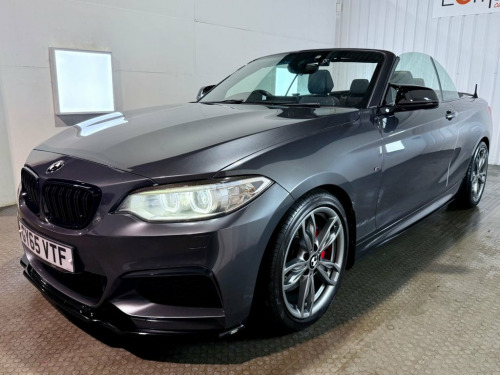 **THIS VEHICLE MAY BE AT OUR 150-CAR STORAGE FACILITY. PLEASE CALL AHEAD TO ARRANGE VIEWING AT OUR WINCHESTER SALES SITE** MOT October 2026. Serviced at 23k, 34k, 42k miles and will be serviced again by us upon sale. This BMW M235i convertible is sure to draw attention thanks to being finished in a stunning Mineral Grey with a black leather interior and 18 inch alloy wheels. Equipped with various features such as front heated seats, reversing assist camera, Harman Kardon premium sound system, automatic dual zone air conditioning speed limiter and more. Powered by a 3 litre petrol engine and an automatic gearbox making this a punchy, fun car to drive. 12V Power Socket - Centre Console, 12V Power Socket - Front x2, 12V Power Socket - Passenger Footwell, 12V Power Socket - Rear of Centre Consol, 18in Alloy Wheels - M Light Double Spoke, 6.5in Colour Display Screen, ABS - Anti Lock Braking System, Acoustic Soft-Top in Anthracite, Adaptive Headlights, ADB Sport - Active Differential Brake, Air Conditioning - Automatic with Two-Zo, Air Microfilter, Airbags - Driver, Airbags - Front Side, Airbags - Passenger, Airbags - Passenger Deactivation, Airblades - Ferric Grey, Alarm System Thatcham 1 with Remote Cont, Ambient Light - Front, Ambient Lighting - Switchable BMW Classi, Armrest - Front and Rear Integrated into, Armrest - Front with Sliding Ad
