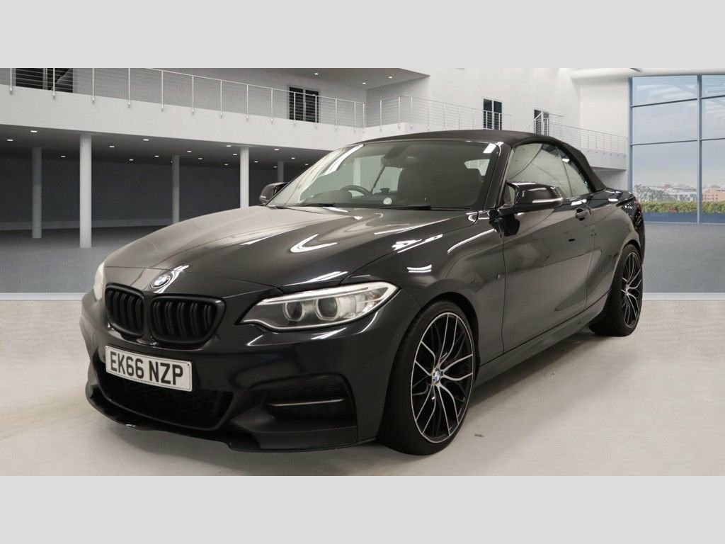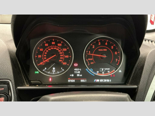 his 2016 BMW 2 Series M235i boasts a clear vehicle history, offering peace of mind for its next owner. Powered by a potent 3.0 litre petrol engine and meeting Euro 6 emission standards, this M235i variant combines performance with efficiency. Inside, you'll find enhanced Bluetooth telephone functionality with USB audio interface and voice control, ensuring seamless connectivity. Comfort is also a priority, with seat heating for both the driver and front passenger, and convenient parking assistance provided by front and rear Park Distance Control. The impressive acceleration of this BMW 2 Series, achieving 0-62mph in just 5.0 seconds, clearly demonstrates its superior performance compared to other vehicles in its class. Furthermore, its low insurance group rating indicates that running costs are also more favourable than many similar cars. Adding to its practicality, this model offers generous boot space, making it a versatile choice for everyday use and longer journeys alike. 12V Power Socket - Centre Console, 12V Power Socket - Passenger Footwell, 18in Alloy Wheels - M Light Double Spoke, 3.5mm Auxiliary Input Point for Auxiliar, Acoustic Soft-Top in Anthracite, Active Differential Brake - ADB Sport - , Adaptive Headlights, Air Conditioning - Automatic with Two-Zo, Airbags, Airblades - Ferric Grey, Alarm System - Thatcham 1 with Remote Co, Ambient Lighting - Switchable, Armrest - Front with Sliding Adjustment, Automatically Dimming Rear View Mirror, BMW ConnectedDrive Online Services, BMW Emergency Call, BMW Mobility System, BMW Navigation, BMW Professional Radio with Single CD Pl, BMW TeleServices, Battery Age Recognition Function, Battery Safety Cut Off, Bluet