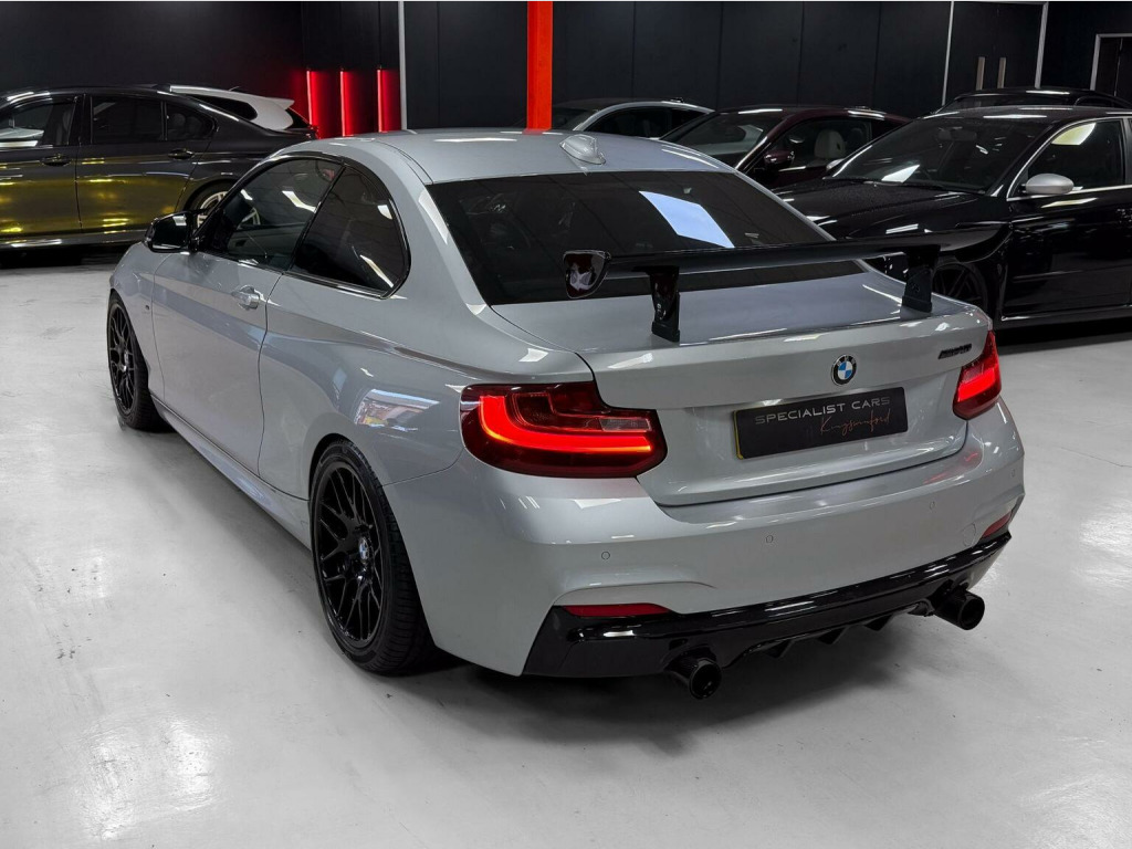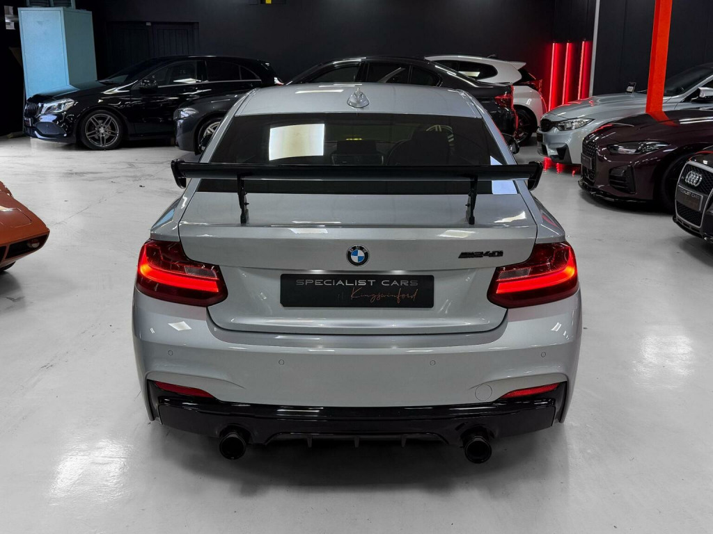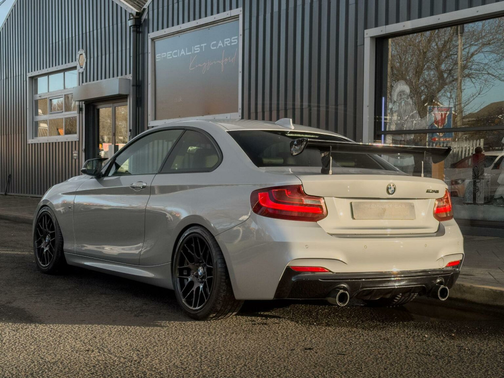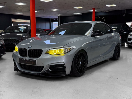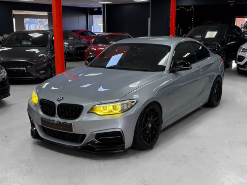 BMW 2 Series 3.0 M240i Auto Euro 6, presented in outstanding condition and fitted with an impressive list of upgrades and factory options. Bridgestone tyres with only around 1,000 miles, unmarked alloys, and a rare specification for an M240i. The car benefits from a Stage 2+ setup featuring the B58TU high-pressure pump, supported by a dyno printout showing 471bhp and 700Nm. It sits on BC Racing RM coilovers, complete with warranty and the ability to adjust, with the setup alone costing around £2,000. Also fitted are DTM-style alloys, a GT4 rear wing, and Apple CarPlay. Full specification includes:, • Sport Automatic Transmission, • Media Package – BMW Professional, • Harman Kardon loudspeaker system, • Driver Comfort Package, • Enhanced Bluetooth with USB interface and voice control, • Cruise control with brake function, • Sun Protection Package, • Sun protection glazing, • Park Distance Control – front and rear, • Heated front seats, • Folding and auto-dimming door mirrors (rare option), • Concierge Service, • Apple CarPlay preparation (very rare), • Speed Limit Information (very rare), • Dakota leather in black, • Black high-gloss interior trim with oxide silver matt finisher, A rare opportunity to own an M240i with this level of performance, equipment, and presentation.