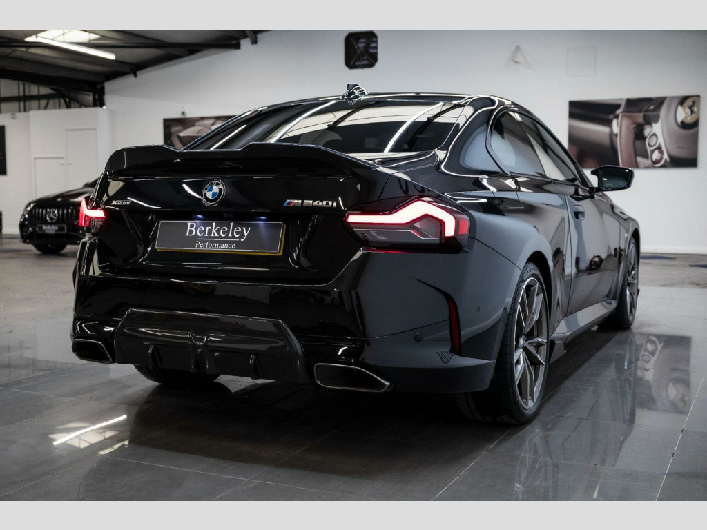 New arrival at Berkeley Performance! Here we have a one previous owner, BMW 2 Series 3.0 M240i Auto xDrive finished in Metallic Black, with Black- Blue contrasting stitching interior. This beautiful example comes with a full service history and fitted with a carbon front splitter, side skirts, rear diffuser and rear spoiler. This vehicle comes with the following options;, Harman Kardon Surround Audio Sound System, 19in Alloy Wheels - Double Spoke Style - 893 M - Bicolour with Mixed and Performance Tyres