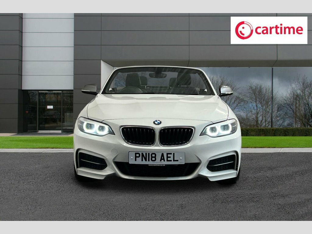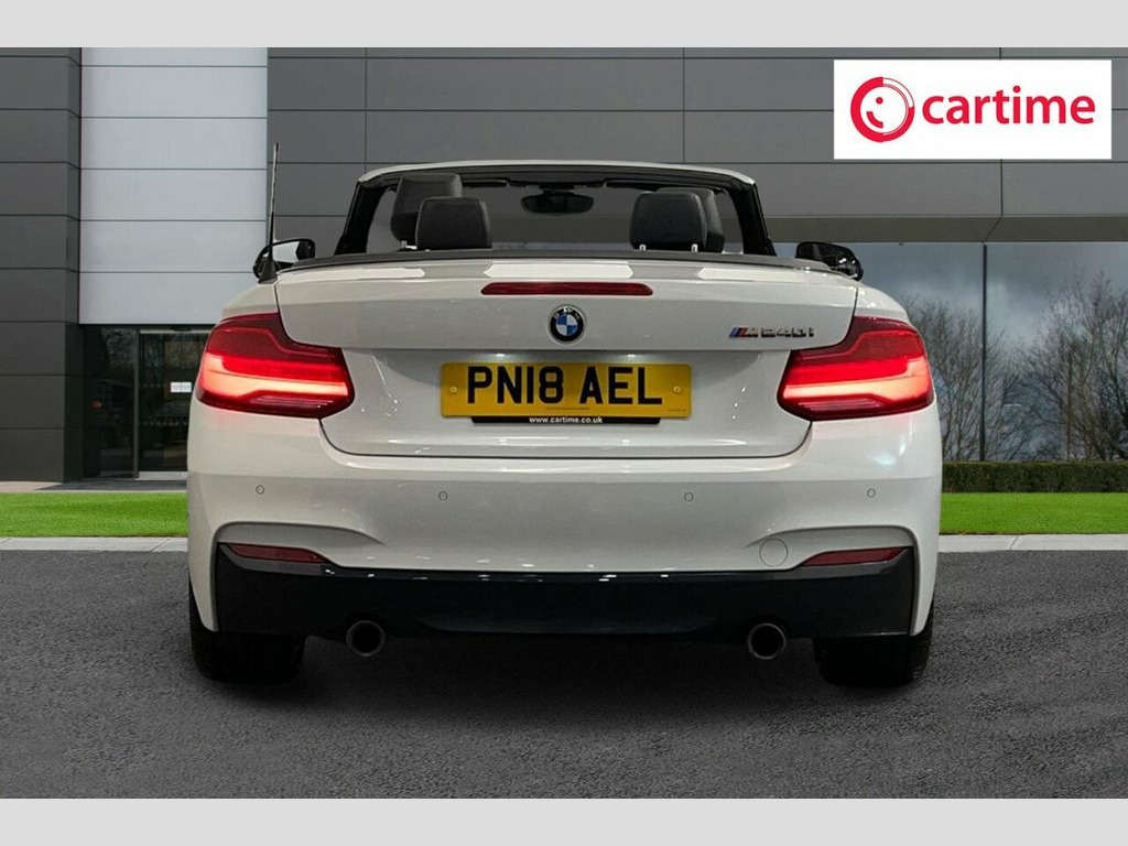 This 2018 BMW 2 Series M240i offers excellent value with its MOT valid until March 2026, providing peace of mind for the coming years. This striking M240i variant is powered by a potent 3.0 litre petrol engine, meeting Euro 6 emission standards. It comes equipped with desirable features such as 18 inch M Light Double Spoke Style 719 M Jet Black alloy wheels, a rain sensor that automatically activates the headlights, and heated seats for both the driver and front passenger. Parking is made easier with rear Park Distance Control, and the vehicle benefits from bright LED headlights. The performance of this BMW 2 Series is truly impressive, with a rapid 0 to 60 mph acceleration time of just 4.7 seconds, demonstrating its dynamic capabilities. This model also sits in a low insurance group, which can help to reduce running costs. These highlights, combined with its advanced features and strong performance credentials, indicate that this BMW 2 Series M240i offers a superior driving experience compared to many other vehicles in its class. 12V Power Socket - Centre Console, 12V Power Socket - Passenger Footwell, 18in Alloy Wheels - M Light Double Spoke, 18in Alloy Wheels - M Light Double-Spoke, Access to BMW Connected Plus (12 Month S, Acoustic Soft-Top in Anthracite, Active Differential Brake - ADB Sport - , Air Conditioning - Automatic with Two-Zo, Airbags, Airblades - Ferric Grey, Alarm System - Thatcham 1 with Remote Co, Alpine White, Ambient Lighting - Switchable, Armrest - Front with Sliding Adjustment, Automatically Dimming Rear View Mirror, Battery Age Recognition Function, Battery Safety Cut Off, Bluetooth Hands-Free Facility with USB A, BMW ConnectedDrive Online Services, BMW Emergency Call, BMW Mobility System, BMW