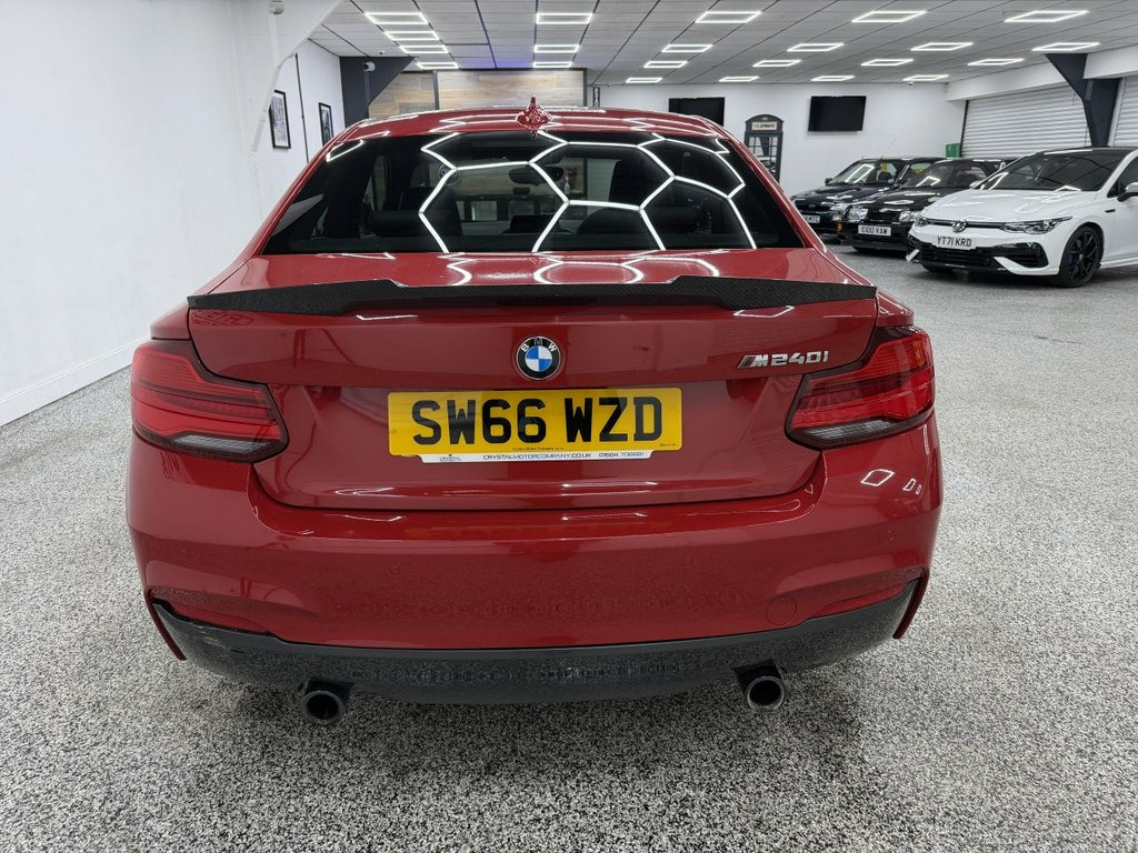 Crystal motor company are delighted to offer for sale this beautifully presented 2016 BMW 2 SERIES 3.0 M240i Coupe 2dr Petrol Auto Euro 6 (s/s) (340 ps) finished in MELBOURNE RED. This car comes with TWO KEYS, THREE FORMER KEEPERS, SERVICE HISTORY. This car is equipped with 18" ALLOY WHEELS, M SPORT BRAKES, FRONT AND REAR PARKING SENSORS, HIGH BEAM ASSIST, ADAPTIVE M SPORT SUSPENSION, BLACK LEATHER SEATS, PADDLE SHIFT, CRUISE CONTROL, HARMAN KARDON SOUND SYSTEM, DAB RADIO, BLUETOOTH AUDIO, BLUETOOTH PHONE CONNECTION, SATNAV, CD PLAYER. The car is 100% HPi clear. Part exchange and finance are available and all major credit and debit cards accepted. Crystal Motor Company Ltd Used Programme includes a full PDI inside and out, MOT, mileage certificate and a full inside and out valet. You can request a personalised video with attention given to any specifics you would like a better view of and we will be pleased to assist you. Likewise, we offer our customers a free collection service. Our journey began in 1996 with the aim to deliver the best possible customer experience, you will enjoy a completely hassle free approach, no pressure and great prices, values we stand by to this day. Looking to finance your next car? We have over 30 lenders on board to help each customer with their financial circumstance. Every vehicle benefits from a minimum of 3 months warranty with the option to extend to 6/12/24/36 months. 12V Power Socket - Centre Console, 12V Power Socket - Passenger Footwell, 18in Alloy Wheels - M Light Double Spoke, 3.5mm Auxiliary Input Point for Auxiliar, Active Differential Brake - ADB Sport - , Adaptive M Sport Suspension, Air Conditioning - Automatic with Two-Zo, Airbags, Airblades - Ferric Grey, Alarm System - Thatcham 1 with Remote Co, Ambient Lighting - Switchable, Armrest - Front with Sliding Adjustment, Automatically Dimming Rear View Mirror, Battery Age Recognition Function, Battery Safety Cut Off, Bluetooth Hands-Free Facility with USB A, BMW ConnectedDrive Online Services, BMW Emergency Call, BMW Mobility System, BMW Navigation, BMW Professional Radio with Single CD Pl, BMW Te