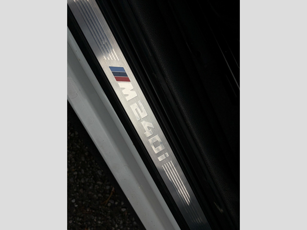v power socket - centre console, 12v power socket - passenger footwell, 3.5mm auxiliary input point for auxiliary playing devices, bmw connecteddrive online services, bmw emergency call, bmw navigation, bmw professional radio with single cd player - with mp3 playback compatibility, bmw teleservices, bluetooth hands-free facility with usb audio interface and audio streaming, dab digital radio, full black panel display, real time traffic information, rear window aerial, shark fin aerial, wifi hotspot preparation, 18in alloy wheels - m light double spoke - ferric grey - 436m, airblades - ferric grey, bmw mobility system, bumper - rear with high gloss black finisher, bumper system - front and rear, direction indicator - side repeaters - integrated in exterior mirrors, direction indicator lights - clear lenses, direction indicator side lights integrated in exterior mirrors, door mirrors - electric and heated, door mirrors - ferric grey housing, door mirrors - integrated indicators, electric windows - front and rear with open-close fingertip control - anti-trap facility and comfort closing function, engine cover with bmw roundel and twinpower turbo designation, exhaust tailpipes - dark chrome - twin - round - split, exterior parts in body colour, exterior trim - high-gloss shadowline, heat protection glazing with green tint, heated windscreen washer jets, kidney grille - chrome extra-wide eight high-gloss black vertical slats, locking wheel bolts, m aerodynamic bodystyling with airblades in ferric grey - no front fog lights, m logo designation on front wings in unique dark chrome, m rear spoiler, model designation, reversing light in rear light clusters, tyres - reduced rolling resistance, active differential brake - adb sport - electronic differential lock in dsc-off mode, airbags, alarm system - thatcham 1 with remote control and engine immobiliser, battery safety cut off, child seat isofix attachment for the two outer rear seats, crash sensor, dsc - dynamic stability control plus, dynamic brake lights, first aid kit and warning triangle, remote control with integrated key with insert in blue, seat belt security check for driver and front passenger, side impact protection, three-point seat belts - all seats, visible vin, air conditioning - automatic with two-zone control, ambient lighting - switchable, armrest - front with sliding adjustment, automatically dimming rear view mirror, central locking switch - doors - fuel filler cap - luggage compartment, coat hooks - integrated into rear of b pillar, cup holders x2, door sill finishers - m240i designation, extended lighting, extended storage, floor mats - velour, gearshift lever with m designation - short-shift, glove box with chrome surround and key lock, handbrake lever and gear lever in leather, head restraints - rear and folding, headlining - anthracite, interior comfort package, interior lighting - front centre over interior mirror and rear centre, interior trim - aluminium hexagon with estoril blue finisher, lashing eyes in luggage compartment at sill x2, luggage compartment - light, luggage compartment access via bmw roundel, multifunction controls for steering wheel, personal profile - extended, rain sensor with automatic headlight activation, rear fog light, rear seat headrests - outer headrests folding, seats - 60-40 split folding rear, side armrests - front and rear integrated into door trim, sport seats - front, standard seat for driver and passenger with manual adjustment, start-stop button with comfort go keyless engine start and auto start-stop deactivation button, steering wheel - m sport leather multifunction finished in nappa leather, steering-wheel column adjustment - manual, storage compartment - rear centre console and in door trim - front, sun visors with vanity mirrors and ticket holder, twin horns, welcome light, battery age recognition function, brake pad wear indicator, drive performance control - eco pro - comfort - sport - sport plus, eco pro mode, m sport braking system, m sport suspension, obc - on-board computer, oil sensor for level and grade - warning by check control system, optimum shift indicator, pdc - park distance control - rear, sport instrument cluster - differentiated dial design featuring finer chrono-scaling, suspension - m sport with individual m240i setup, tpms - tyre pressure monitoring system, variable sport steering, check control warning system for monitoring of lights and door-luggage compartment open warning, daytime driving lights, headlights - washer system, high level third brake light, led rear light bars, lights-on warning by audio warning signal when ignition is switched off, xenon headlight package