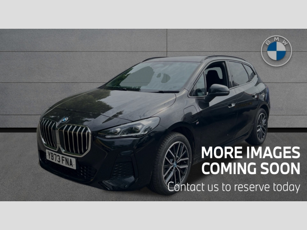 BMW 2 Series 225e xDrive M Sport 5dr DCT Active Guard, Attentiveness assist, Automatic powered tailgate, Automatic start/stop function, BMW Online services, BMW Operating system 9 with BMW Maps, real-time traffic information, in-car experiences, remote services and smartphone integration, BMW Teleservices, Brake pad wear indicator in front and rear, Condition based service, ConnectedDrive Services, Drive off assistant, Flat air vents on instrument panel in high gloss black, adjustable slats with elements in pearl chrome, iDrive controller, Instrument cluster with speedometer with miles per hour read out, tachometer and fuel gauge, Language version English, On board computer - average speed+fuel consumption, service interval, clock/date, odometer/trip meter, outside temperature display and ice warning, Parking assistant with active park distance control, reversing assistant, lateral parking aid and rear view camera, Servotronic variable electric power steering (EPS), Widescreen display, Wireless charging, 45 Litre fuel tank, Drive performance control with ECO PRO comfort + sport mode, eDrive exterior sound, Gear selector switch with toggle operation, M Adaptive suspension, Mode 3 charging cable, Petrol Particulate Filter, Steptronic transmission with double clutch and gear shift paddles, 2x USB Type C ports in front centre console for charging and data transfer, 2x USB Type C ports in rear centre console for charging, DAB Digital radio, Welcome sound upon opening of the front driver or passenger door, Air inlet middle part on front apron in lines specific design with trim strip in satinised aluminium, Automatic headlights, Black rear bumper trim strip, BMW emblem, engine compartment lid and tailgate, Body colour roof mouldings, Body coloured door mirror caps, Contoured rear roof spoiler in vehicle colour with side aeroblades in black high-gloss, Driver side exterior mirror lighting with BMW logo projection, Dynamic brake lights, Electric adjustable heated door mirrors, Electric windows - front and rear, with open/close fingertip control, anti-trap facility and comfort closing, Folding door handles integrated flush with surface, Front and rear windscreen wipers with heated front washer nozzles, Front bumper cover with independent design in body colour with inserts in black high gloss, Front bumper design elements in satinised aluminium, Front door exit lights, Front door sill finishers aluminium inserts with M inscription, Front entry sills with aluminium inserts + BMW inscription, Front oramental grille with radiator grille bars in satinised aluminium, Heated rear window, Hidden exhaust pipe, High gloss shadow line, Home light, Key with M identification, LED Daytime running lights and parking lights with turn indicators, LED number plate light, LED third brake light in rear spoiler, M identification on sides, Manual headlight range control, Model inscription on right tailgate, Rain sensor, Rear bumper cover with independent design in body colour with inserts in black high gloss, Rear side wing doors, Shark fin antenna, Side sill covers with independent design in Body colour, Trailer stabilisation logic, Trims on front and rear bumper covers colour-coordinated with side window graphic, Visible VIN plate, Welcome lighting, Windscreen washer nozzle for rear view camera, 12V power socket in luggage compartment and front centre console, 12V socket in right side trim panel, 2 bag hooks in luggage compartment, 2 front reading lights, 2 open cup holders in front centre console, 3 seat bench in 2nd row, 40:20:40 split folding rear seat backrests, Ambient lighting front and rear, Automatic two zone climate control air conditioning, Bottle trays in all doors, Child seat ISOFIX attachment for two outer rear seats and front passenger seat with anchorage points, Driver and front passenger sports seats, Embellishers on steering wheel spokes in pearl chrome, Four grab handles integrated in roof lining, Front and rear door pockets, Front and rear footwell lighting, Front and rear side armrest integrated into door trim, Front centre console storage compartment, Front head restraints, Glovebox with light, Heated front seats, Height adjustable 3 rear head restraints, Interior door handle recess light on all doors, Luggage compartment lighting, M Anthracite headlining, M specific floor mats, M sport leather steering wheel, Manual adjustment of seat height, fore/aft position, seat depth, backrest tilt and head restraint height, Map pockets, Mechanical rear seats with fore/aft adjustment, Middle centre console storage compartment, Multi-function controls for steering wheel, One piece parcel shelf opens together with tailgate and removable, Rear cloth hooks, Single front passenger seat, Stainless steel pedals, Steering wheel column manual adjustment, Storage compartment lighting in centre console and storage tray in centre stack, Storage compartment net in left side trim panel, Storage compartment with folding cover under centre console armrest cushion, Sunvisors with illuminated vanity mirrors, 3 point seatbelts on all seats, front pyrotechnic belt tensioners, stopper and belt force limiters, rear coded belt buckles, Acoustic protection for pedestrians, Airbag - Front driver and passenger, front and rear head, front side, curtain head protection, manual deactivation of front passenger airbag possible, Anti lock braking system (ABS) with brake assist, Automatic hold function, BMW emergency call, Brake drying, Braking readiness, Child proof locking system in rear door, Cornering brake control, Crash Sensor - activates hazard/interior lighting + unlocks doors, DSC - Dynamic Stability Control, Dynamic brake control, Dynamic Traction Control - DTC, Electromechanical parking brake, Energy recovery system, Front disc brakes, Integrated braking system, PC iBrake PostCrash approach control warning with light braking function, Rear disc brakes, Tyre pressure monitoring system, Warning triangle and first aid kit, Anti the