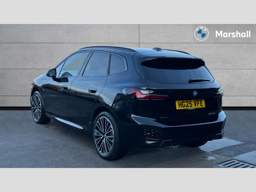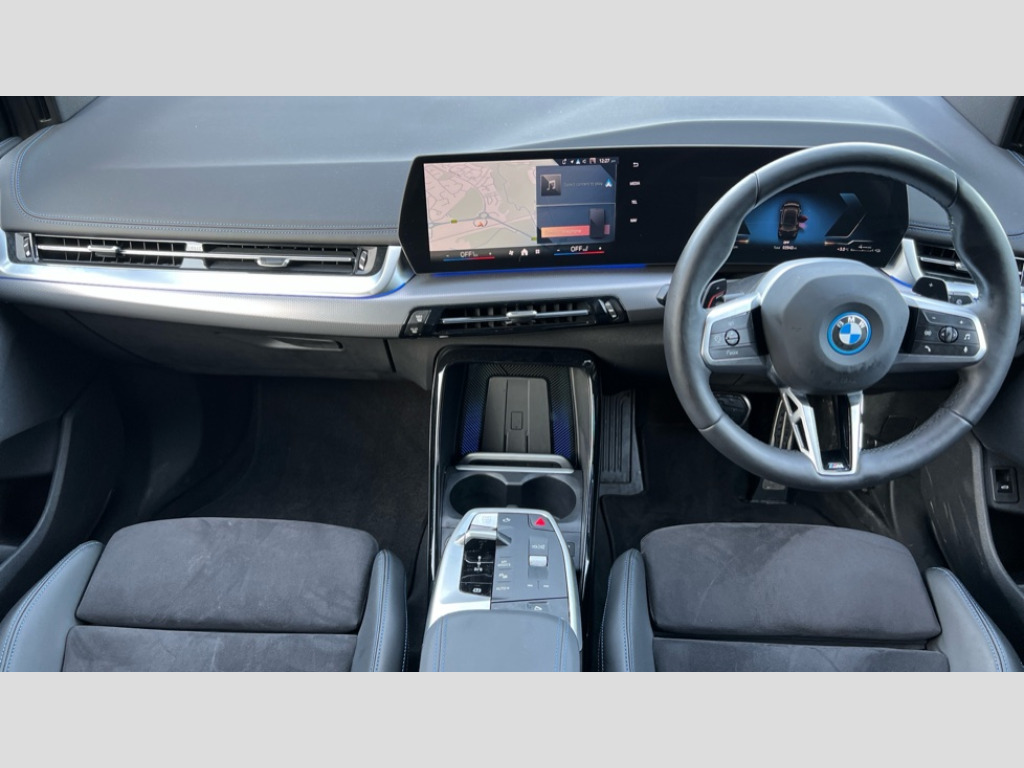BMW 2 Series 225e xDrive M Sport 5dr DCT Active Guard, Attentiveness assist, Automatic powered tailgate, Automatic start/stop function, BMW Online services, BMW Operating system 9 with BMW Maps, real-time traffic information, in-car experiences, remote services and smartphone integration, BMW Teleservices, Brake pad wear indicator in front and rear, Condition based service, ConnectedDrive Services, Drive off assistant, Flat air vents on instrument panel in high gloss black, adjustable slats with elements in pearl chrome, iDrive controller, Instrument cluster with speedometer with miles per hour read out, tachometer and fuel gauge, Language version English, On board computer - average speed+fuel consumption, service interval, clock/date, odometer/trip meter, outside temperature display and ice warning, Parking assistant with active park distance control, reversing assistant, lateral parking aid and rear view camera, Servotronic variable electric power steering (EPS), Widescreen display, Wireless charging, 11kW AC charging, Drive performance control with ECO PRO comfort + sport mode, eDrive exterior sound, Gear selector switch with toggle operation, M Adaptive suspension, Mode 3 public charging cable, Performance Control, Petrol Particulate Filter, Steptronic transmission with double clutch and gear shift paddles, 1x USB Type C ports in rear centre console for charging, 2x USB Type C ports in front centre console for charging and data transfer, DAB Digital radio, Personal eSim, Welcome sound upon opening of the front driver or passenger door, Air inlet middle part on front apron in lines specific design with trim strip in satinised aluminium, Automatic headlights, Black rear bumper trim strip, BMW emblem, engine compartment lid and tailgate, Body colour roof mouldings, Body coloured door mirror caps, Contoured rear roof spoiler in vehicle colour with side aeroblades in black high-gloss, Courtesy lights in exterior mirror with BMW logo projection, Dynamic brake lights, Electric adjustable heated door mirrors, Electric windows - front and rear, with open/close fingertip control, anti-trap facility and comfort closing, Folding door handles integrated flush with surface, Front and rear windscreen wipers with heated front washer nozzles, Front bumper cover with independent design in body colour with inserts in black high gloss, Front bumper design elements in satinised aluminium, Front door exit lights, Front door sill finishers aluminium inserts with M inscription, Front entry sills with aluminium inserts + BMW inscription, Front oramental grille with radiator grille bars in satinised aluminium, Heated rear window, Hidden exhaust pipe, High gloss shadow line, High gloss shadowline roof rails, Home light, Key with M identification, LED Daytime running lights and parking lights with turn indicators, LED number plate light, LED rear lights, LED third brake light in rear spoiler, Manual headlight range control, Model inscription on right tailgate, Rain sensor, Rear bumper cover with independent design in body colour with inserts in black high gloss, Rear side wing doors, Shark fin antenna, Side sill covers with independent design in Body colour, Trailer stabilisation logic, Trims on front and rear bumper covers colour-coordinated with side window graphic, Visible VIN plate, Welcome lighting, Windscreen washer nozzle for rear view camera, 12V power socket in luggage compartment and front centre console, 12V socket in right side trim panel, 2 bag hooks in luggage compartment, 2 front reading lights, 2 open cup holders in front centre console, 3 seat bench in 2nd row, 40:20:40 split folding rear seat backrests, Additional under floor storage in luggage compartment, Ambient lighting front and rear, Automatic two zone climate control air conditioning, Bottle trays in all doors, Child seat ISOFIX attachment for two outer rear seats and front passenger seat with anchorage points, Driver and front passenger sports seats, Embellishers on steering wheel spokes in pearl chrome, Four grab handles integrated in roof lining, Front and rear door pockets, Front and rear footwell lighting, Front and rear side armrest integrated into door trim, Front centre console storage compartment, Front head restraints, Glovebox with light, Heated front seats, Height adjustable 3 rear head restraints, Illuminated wireless charging tray, Interior door handle recess light on all doors, Luggage compartment lighting on right side, M Anthracite headlining, M specific floor mats, M sport leather steering wheel, Map pockets, Mechanical rear seats with fore/aft adjustment, Middle centre console storage compartment, Multi-function controls for steering wheel, One piece parcel shelf opens together with tailgate and removable, Rear cloth hooks, Single front passenger seat, Stainless steel pedals, Steering wheel column manual adjustment, Storage compartment lighting in centre console and storage tray in centre stack, Storage compartment net in left side trim panel, Storage compartment with folding cover under centre console armrest cushion, Sunvisors with illuminated vanity mirrors, Tilt adjustment incl. cargo function of 2nd row of seats, 3 point seatbelts on all seats, front pyrotechnic belt tensioners, stopper and belt force limiters, rear coded belt buckles, Acoustic protection for pedestrians, Airbag - Front driver and passenger, front and rear head, front side, curtain head protection, manual deactivation of front passenger airbag possible, Anti lock braking system (ABS) with brake assist, Automatic hold function, BMW emergency call, Brake drying, Braking readiness, Child proof locking system in rear door, Cornering brake control, Crash Sensor - activates hazard/interior lighting + unlocks doors, DSC - Dynamic Stability Control, Dynamic brake control, Dynamic Traction Control - DTC, Electromechanical parking brake, Energy recovery system, Front disc brakes, Integrated braking system, PC iBrake PostCrash approach control warning with