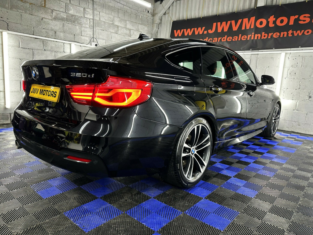 Rare BMW 320D M Sport GT Auto with just 1 owner from new, which is in excellent condition inside and out for its age and low mileage. Ulez compliant, Excellent running costs of just £35 road tax and excellent mpg for an Auto. Service history comprising of 1 main dealer and 1 other iDrive only. This car comes complete with our best 3 months comprehensive warranty, visit our website for full terms and conditions, for that extra peace of mind. HPI clear. Professionally valeted and detailed inside and out giving you the highest quality a car dealer can offer. The perfect new used car feeling. 2 x remote central locking key fobs. Part exchange welcome. This car is ready to drive away today. Appointments only giving you the customer our full attention, call today to arrange a viewing. All credit and debit cards accepted including American express. If you are looking for finance we work with a number of brokers to help find you the best deal. If you choose to finance your car with JWV Motors we will give you something back in return, up to months warranty with no admin fee. Unfortunately if you decide to choose an outsourced finance provider there will be an admin, this will vary depending on the company charges. If this car is not suitable for your needs you can visit all of our current stock on our website www.jwvmotors.co.uk. Why choose JWV Motors? Why not look at our reviews before making any decisions. Thank you for your time. SALE YOUR CAR THROUGH OUR SALE OR RETURN POLICY. INTERESTED PLEASE CALL FOR DETAILS. v power sockets, 3.5mm auxiliary input point in centre console for auxiliary playing devices, bmw connecteddrive online services, bmw emergency call, bmw teleservices, bluetooth hands-free facility with usb audio interface and audio streaming, dab digital radio, media package - bmw business, shark fin, 18in alloy wheels - light m star spoke - 400m, active rear spoiler - deployed at 70mph or manually, bumper system - front and rear, direction indicator - side repeaters - integrated in exterior mirrors, direction indicator lights - clear lenses, electric windows - front and rear with open-close fingertip control - anti-trap facility and comfort closing function, exhaust tailpipe - dual round - left with chrome finisher, exterior b pillar - black, exterior mirrors - heated - electrically adjustable, exterior parts in body colour, exterior trim - high gloss shadowline, heat protection glazing with green tint, heated windscreen washer jets, indicator lenses - clear, kidney grille - chrome with extra wide black - high gloss vertical slats, m aerodynamic bodystyling, m sport package, model designation, run flat tyres, side exterior m designation badges, tyres - reduced rolling resistance, air conditioning - automatic with two-zone control, ambient lighting - switchable bmw classic orange - cold white - led, armrest - front with storage compartment, armrest - rear centre with two cupholders, automatic tailgate, automatically dimming rear view mirror, bottle holders integrated into door trim storage compartments, central locking switch - doors - fuel filler cap - luggage compartment, cup holders - front x2, door sill finishers - m designation, extended lighting, floor mats - velour, glove box opener with chrome spider, grab handles - integrated in roof lining x4, handbrake and gear knob - leather, headlining - anthracite, headrests - rear x 3-outer foldable-fixed centre, instrument cluster, interior lighting, interior trim - aluminium hexagon with estoril blue matt finisher, luggage compartment - light, luggage compartment storage, m sport instrument cluster, non smoker package, personal profile, pollen filter, rain sensor with automatic headlight activation, rear seats - slope adjustable, side armrests - front and rear integrated into door trim, sport seats - front, start-stop button with comfort go keyless engine start and auto start-stop deactivation button, steering column - reach and rake manual adjustment, steering wheel - m sport leather multifunction, storage compartment - rear centre console and front-rear door trim, sun visors with vanity mirrors and ticket holder, through-loading system, tool kit located in luggage compartment, twin horns, welcome light, windscreen wipers - two-speed with adjustable intervals, airbags, alarm system - thatcham 1 with remote control and engine immobiliser, battery safety cut off, child proof locking system - rear doors, child seat isofix attachment - rear, crash sensor, dsc - dynamic stability control plus, dynamic brake lights, first aid kit and warning triangle, incorrect fuelling protection system, remote control including integrated key - 2, remote control with integrated key with insert in blue, seat belt security check for driver and front passenger, side impact protection, three-point seat belts - all seats, visible vin, brake pad wear indicator - front and rear, condition based service, cruise control with brake function, drive performance control - eco pro - comfort - sport - sport plus, m sport suspension, obc - on-board computer, oil sensor for level and grade - warning by check control system, optimum shift indicator, pdc - park distance control - rear, power steering - electric, rear suspension - five-link, suspension - front aluminium, tpms - tyre pressure monitoring system, idrive controller - 8 favourite buttons, check control warning system for monitoring of lights and door-luggage compartment open warning, fog lights front and rear - led, high level third brake light, led headlights, led tailights, lights-on warning by audio warning signal when ignition is switched off