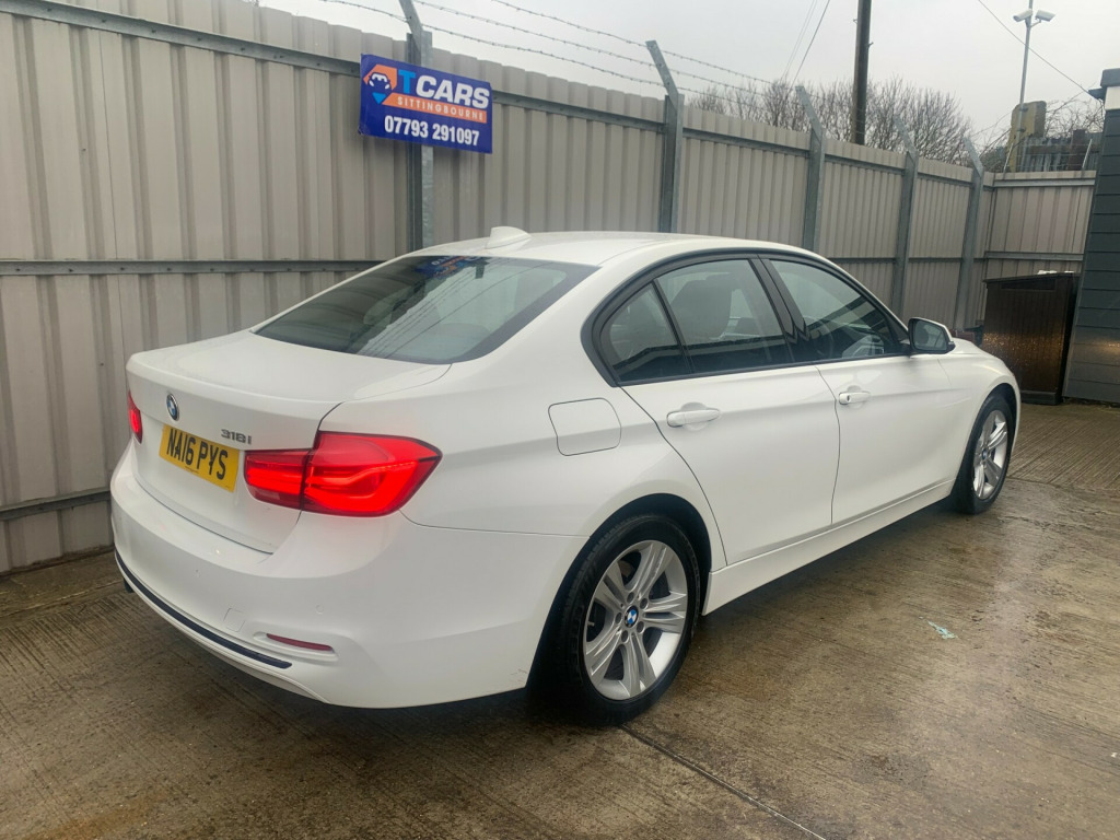 BMW 318i Sport 1.5 Petrol 4dr Manual 2016 16 Reg Car Has Covered 95,765 Miles in White with Grey Interior, 6 Speed Gearbox, Satellite Navigation, Satellite Navigation, Air Conditioning, Alloy Wheels, Electric Windows, Electric Mirrors, Power Steering, Remote Door Locking, Cruise Control, Rear Parking Sensors, Radio CD Player, Heated Seats, Front and Rear Headrests, 2 Keys, Mot to 18th December 2026, Service History to 92,203 miles £5995This Vehicle Is Exempt From The Ulez Daily Charge As Checked On The ulez.co.uk Website Delivery Can Be Arranged On This Vehicle please ask for details.Other Cars Are Available Please Check Our Facebook Page T-CARS Or Check Out Our Website tcars-kent.co.ukWe Are Located In Gas Road Sittingbourne Kent ME10 2QEYou Can Contact Us On 07793 291097