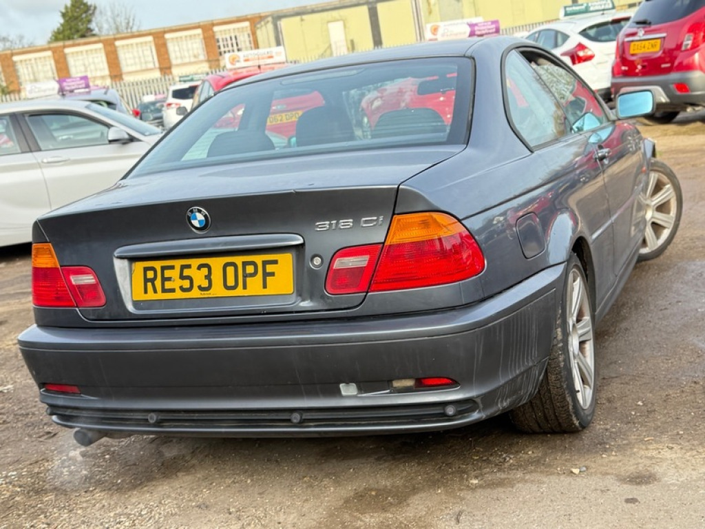 This 2003 BMW 3 Series 2.0 318Ci 318 SE Coupe 2dr Petrol Manual (180 g/km, 143 bhp) Coupe is currently available for £899 in Baldock with Petrol engine and Manual gearbox. For more information or to arrange a viewing, click here to send us an email using form below.