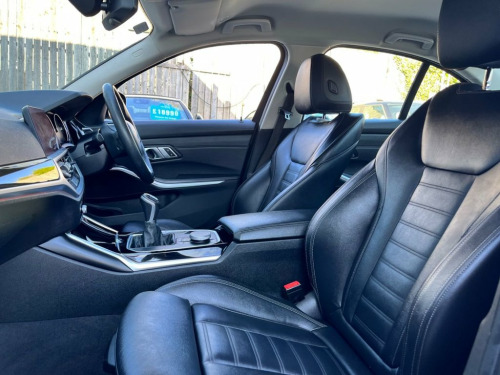 This striking new-shape BMW 3 Series boasts a high specification that includes heated leather seats, automatic LED headlights, rear camera, and cruise control. The media centre offers everything you could possibly need, including Apple CarPlay, sat nav, Bluetooth, and a rear camera that works in tandem with optical sensors to make parking a breeze. Under the bonnet is BMW's 2.0 TwinPower turbo engine that sends power to the rear wheels via a slick six-speed manual gearbox. 12V Power Socket in Front Storage Compar, 18in Alloy Wheels - Light V-Spoke Style , Acoustic Glazing, Active Air Stream Kidney Grille, Active Guard Plus, Air Conditioning - Automatic with Three-, Airbags, Alarm System - Thatcham 1 with Remote Co, Ambient Lighting with Welcome Light Carp, Armrest - Integrated in Door Trim Front , Armrest - Rear Centre with Two Cupholder, Attentiveness Assistant, BMW ConnectedDrive Online Services, BMW Emergency Call, BMW Live Cockpit Plus, BMW TeleServices, Balanced 50-50 Weight Distribution, Battery Safety Cut-Off in the Event of a, Bluetooth Hands Free with USB Audio Inte, Brake Pad Wear Indicator - Front and Rea, Bumper System - Front and Rear, Central Loc