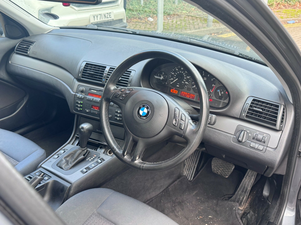 3 KEYS, ULEZ FREE, FRESH SERVICE, TOTAL OF 12 SERVICES (TOTAL OF 4 MAIN DEALER SERVICES), MOT DUE 01/08/2026, VOICE ASSISTANT, ELECTRIC WINDOWSFor sale is a 2002 BMW 3 Series 2.0 318i SE Saloon with 138000 miles on the clock. This petrol automatic vehicle has a valid MOT until 01/08/2026, and comes with 5 seats and 4 doors, making it ideal for the family. The car boasts features such as an adjustable steering column/wheel, automatic air-conditioning, electric windows in the front and rear, a radio/cassette entertainment system, and seat height adjustment for added comfort. With a carbon emissions rate of 196 g/km and 143 bhp, this car offers a powerful yet efficient driving experience. Don't miss out on this reliable and spacious saloon car that offers both comfort and performance. justable steering column/wheel, air-conditioning (automatic), electric windows (front/rear), in car entertainment (radio/cassette), seat height adjustment, steering wheel mounted controls (audio/cruise control/telephone), air bag driver, air bag passenger, air bag side, alarm, anti-lock brakes, central door locking, front fog lights, head air bags, head restraints, immobiliser, parking aid (rear), power-assisted steering, traction control system, alloy wheels (16in), mirrors external, spare wheel, computer