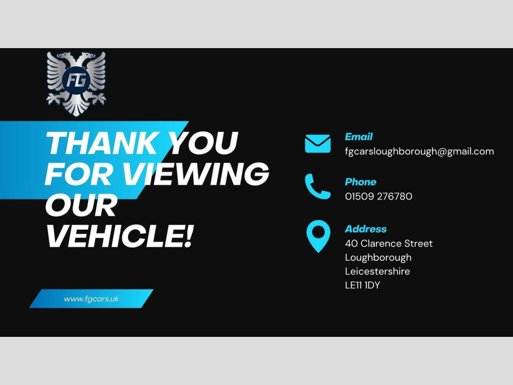 AMAZING EXAMPLE WITH ONLY ONE OWNER FROM NEW & FULL MAIN DEALER SERVICE HISTORY, £35 ANNUAL ROAD TAX, SATELLITE NAVIGATION SYSTEM, REVERSE CAMERA, FRONT & REAR PARKING SENSORS, LEATHER INTERIOR WITH HEATED FRONT SEATS, DAB RADIO, BLUETOOTH TELEPHONE, CRUISE CONTROL & SPEED LIMITER, AUTO CLIMATE CONTROL, POWER FOLDING ELECTRIC MIRRORS, ELECTRIC WINDOWS, AUTO LIGHTS, AUTO WIPERS, AUTO DIM REAR VIEW MIRROR, MULTI FUNCTIONAL STEERING WHEEL, USB + AUX INPUT, CENTRAL LOCKING, AIR CONDITIONING, CD RADIO + STEERING CONTROLS, ISOFIX, TRIP COMPUTER, AUTO + PADDLE SHIFTS, ELECTRIC TAILGATE, 18 ALLOY WHEELS, 2 X KEYS, Message us on WhatsApp for further information on +44 7599 432224, At F G Cars, were committed to providing a first class experience from the moment you arrive to the moment you drive away. Were proud to have been voted Leicestershires Motor Dealer of the Year 2025 by the England Business Awards, a testament to our dedication to excellence and customer satisfaction. With over 160 vehicles in stock, including all makes and models of cars and vans, we have something to suit every need and budget. Every vehicle comes fully prepared and backed by our excellent in-house warranty, so you can buy with complete peace of mind. Why Choose F G Cars?, ✔ England Business Awards – Motor Dealer of the Year 2025 (Leicestershire), ✔ AutoTrader 5-Star Rated , ✔ Fully HPI Clear Vehicles, ✔ Minimum 6 Months MOT, ✔ Serviced (if required), ✔ Professionally Valeted , ✔ FCA Regulated with Finance Options Available, Join hundreds of happy customers whove rated us 5 stars and experience why F G Cars is the trusted choice for your next vehicle.