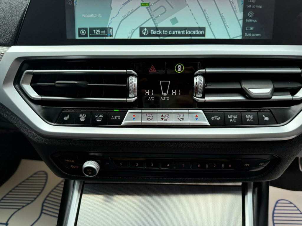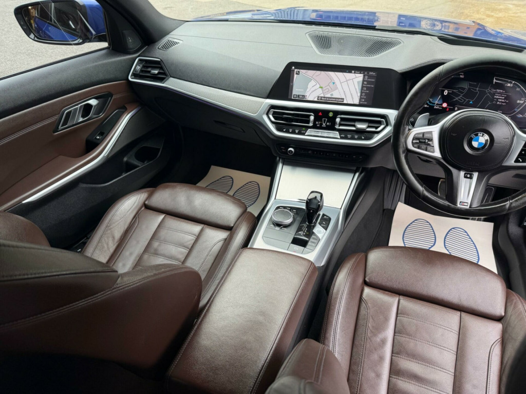 This 2019 BMW 3 Series 320d M Sport offers an exceptional blend of performance and efficiency, boasting a remarkable 54 mpg. This Euro 6 compliant model features a powerful 2.0L diesel engine, delivering an impressive 0-62mph acceleration in just 6.8 seconds. The M Sport trim enhances its dynamic appeal, while the Technology Package provides a host of modern conveniences, including Bluetooth connectivity, a Head Up Display, a premium branded sound system, and wireless phone charging. Further enhancing comfort and convenience are the Comfort Pack, which includes keyless entry and a heated steering wheel, alongside extended storage solutions.This BMW 3 Series stands out with its low CO2 emissions and low insurance group, making it an economical choice for drivers. The inclusion of Enhanced Bluetooth with Wireless Charging and a Heated Steering Wheel ensures a connected and comfortable driving experience in all conditions. These highlights demonstrate how this particular 320d M Sport offers a superior ownership proposition compared to other vehicles in its class. mfort pack, instrument panel in sensatec, enhanced bluetooth with wireless charging, extended storage, steering wheel - heated, interior trim - aluminium mesheffect, vernasca leather - mocha with night blue stitching, 12v power socket in front storage compartment, 18in alloy wheels - m light double-spoke style 790 m - bicolour orbit grey, acoustic glazing, active air stream kidney grille, active guard plus, air conditioning - automatic with three-zone, airbags, alarm system - thatcham 1 with remote control and electronic engine immobiliser, ambient lighting with welcome light carpet, armrest - integrated in door trim front and rear and in front on the centre console, armrest - rear centre with two cupholders, attentiveness assistant, bmw connected package professional, bmw connecteddrive online services, bmw emergency call, bmw live cockpit professional, bmw teleservices, battery safety cut-off in the event of an accident, bluetooth hands free with usb audio interface, brake pad wear indicator - front and rear, bumper system - front and rear, central locking switch - doors - fuel filler cap - luggage compartment, centre console rear storage compartment - ventilation grille, check control warning system for monitoring of lights and door-luggage compartment open warning, child proof locking system - rear doors, child seat isofix attachment - rear, condition based service, crash sensor, cruise control with brake function, cup holders in centre console - front - 2 cupholder inserts with clamping elements - inlay matt black, dab digital radio, dsc - dynamic stability control plus, door pockets - front and rear, door sill finishers - bmw designation - front - black, drive performance control, dynamic brake lights, eps - electric power steering, electric windows - front and rear, electro mechanical parking brake, exhaust tailpipes - split left and right - 90mm diameter, extended led headlights, exterior b pillar - black matt, exterior mirrors - electrically folding with anti dazzle, exterior parts in body colour, exterior trim - high-gloss shadowline, first aid kit and warning triangle, floor mats - velour - front and rear, glove compartment - illuminated - with separate small compartment, grab handles - integrated in roof lining x4, headlining - anthracite, heat protection glazing with green tint, incorrect fuelling protection system, instrument cluster, interior lighting, interior rear-view mirror with automatic anti-dazzle function, interior trim - aluminium tetragon, led fog lights - front, larger fuel tank, lashing eyes in luggage compartment x4, m aerodynamics package, m designation on front side panel - left and right, m leather steering wheel, m sport package, m sport suspension, model designation on tailgate - right, obc - on-board computer, oil sensor for level and grade - warning by check control system, optimum shift indicator, parking assistant, personal profile, rain sensor with automatic headlight activation, rear lights - led, rear seats, remote control - including integrated key, roof mouldings - black, run flat tyres, seat belt security check for driver and front passenger, seat heating for driver and front passenger, servotronic steering, shark fin aerial, side impact protection, split folding rear seat, sport automatic transmission, sport seats - front, start-stop button with keyless engine start and auto start-stop deactivation button, steering column mechanically and infinitely variably adjustable in height, stereo speaker system, sun visors with vanity mirrors and ticket holder, tpms - tyre pressure monitoring system, technology package, three-point seat belts - all seats, through-loading system, tool kit located in luggage compartment, two tone horn, tyres - reduced rolling resistance, variable sport steering, vehicle key with m-specific designation, visible vin, welcome light, windscreen wipers - with integrated washing jets, idrive controller