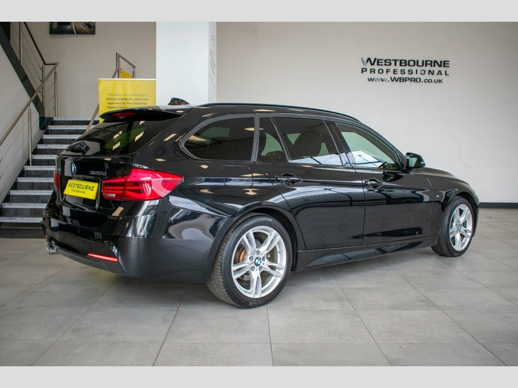 2016 '16' BMW 320d xDrive M Sport Touring, finished in Black Sapphire with Black Dakota Leather interior. Equipped with excellent specification including BMW Professional Wide Screen Satellite Navigation System, Heated Front Seats, Power Tailgate, Rear View Camera, Enhanced Bluetooth Connectivity, BMW Professional Media Package, Automatic Dual Zone Climate Control, Cruise Control, DAB Radio, Automatic LED Headlights, Rear Park Distance Control, Tyre Pressure Monitoring System, Power Folding Mirrors, Sun Protection Glazing and more. Supplied with full BMW main agent and specialist service history. 12V Power Socket in Front Centre Console, 18in Alloy Wheels - Light M Star Spoke -, 3.5mm Auxiliary Input Point in Centre Co, 6.5in Colour Display Screen, Air Conditioning - Automatic with Two-Zo, Airbags, Alarm System - Thatcham 1 with Remote Co, Ambient Lighting - Switchable BMW Classi, Armrest - Front - Folding with Storage C, Armrest - Rear Centre with Two Cupholder, Automatically Dimming Rear View Mirror, BMW ConnectedDrive Online Services, BMW Emergency Call, BMW Navigation System, BMW Professional Radio - Single CD and M, Battery Safety Cut Off, Bluetooth Hands Free with USB Audio Inte, Bottle Holders Integrated into Door Trim, Brake Pad Wear Indicator - Front and Rea, Bumper System F