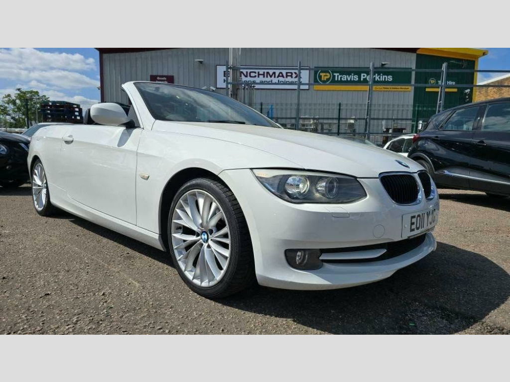 BRAND NEW MOT AND SERVICE INCLUDED IN THE PRICE - STUNNING LOOKING 320D CABRIOLET IN ALPINE WHITE WITH CONTRASTING FACTORY UPGRADED BLACK DAKOTA LEATHER - 2 KEYS - 4 PREVIOUS OWNERS - HPI CLEAR - SUPERB DRIVE - FULL STAMPED SERVICE HISTORY - CLEAN AND TIDY THROUGHOUT - HIGH SPEC WITH XENONS, BLUETOOTH, REAR SENSORS, 18 INCH WHEEL UPGRADE, AUTO LIGHTS AND WIPERS, FOLDING MIRRORS, ALL FACTORY OPTION UPGRADES! - FOLDINH HARD TOP SO PERFECT FOR ALL TYPES OF WEATHER NOT JUST SUMMER!. 17in Light Star Spoke Alloy Wheels- Style 339, 3Spoke Sports Leather Steering Wheel, 6 Speakers, Air Conditioning - Automatic with Two-Zone Control, Alarm System Thatcham 1 with Remote Control, Automatically Dimming Rear View Mirror, BMW ConnectedDrive- Assist, BMW ConnectedDrive- Online, BMW Online services, BMW Professional Radio - Single CD and MP3, BMW TeleServices, CD Changer Preparation, Child Seat ISOFIX Attachment - Rear x2, Chrome line Exterior Trim, Delete smokers Pack, Extended Lighting, Headlights - Washer System, High gloss Black Interior with Nappa Leather, LED Light Elements, M Aerodynamic Bodystyling, Model designation deletion, Multifunction Controls for Steering Wheel, PAS, Rear Parking distance Control, Satin Silver Interior Trim, Seat Adjustment - Front Electric with Driver Memory, Smokers Pack, Voice Control System when with Bluetooth interface, Xenon Headlights, 18in Alloy Wheels - Light V Spoke - 342, Bluetooth Telephone preparation, Door Mirrors - Folding - Automatically Dimming, Auto dimming & folding door mirrors, Bluetooth Hands Free Facility, Bluetooth Handsfree telephone connection, Door Mirrors - Electric Folding, Electric folding door mirrors, Servotronic Steering, Rain Sensor with Automatic Headlight Activation, Rain sensor with Auto Headlights activation, Model Designation Deletion, Dakota Leather - Black. Full service history