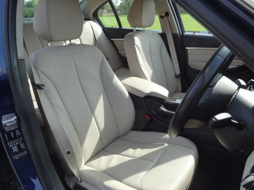 SWANCAR ESTABLISHED IN 1974 ARE DELIGHTED TO OFFER THIS BMW 320i LUXURY FINISHED IN MEDITERRANEAN BLUE WITH CONTRASTING FULL DAKOTA OYSTER LEATHER..SPECIFICATION INCLUDES -- SATELLITE NAVIGATION, ENHANCED BLUETOOTH WITH USB AUDIO INTERFACE AND VOICE RECOGNITION, DAB RADIO WITH A 6.5 COLOUR DISPLAY, HEATED FRONT SEATS, DUAL CLIMATE CONTROL, REAR PARK DISTANCE CONTROL, 18 INCH TURBINE ALLOY WHEELS FINISHED IN BRIGHT SILVER, CRUISE CONTROL WITH BRAKE FUNCTION, ELECTRIC WINDOWS AND REMOTE CENTRAL LOCKING WITH 2 REMOTE KEYS. 12V Power Socket in Front Centre Console, 18in Alloy Wheels - Multi Spoke - 416, 3.5mm Auxiliary Input Point in Centre Co, 6.5in Colour Display Screen, Air Conditioning - Automatic with Two-Zo, Air Conditioning and Radio Control Panel, Air Inlet - Front with Chrome Finisher, Airbags, Alarm System - Thatcham 1 with Remote Co, Ambient Lighting - Switchable BMW Classi, Armrest - Front - Folding with Storage C, Armrest - Rear Centre with Two Cupholder, Automatically Dimming Rear View Mirror, BMW ConnectedDrive Online Services, BMW Emergency Call, BMW Individual Leather Steering Wheel, BMW Navigation System, BMW Professional Radio - Single CD and M, Battery Safety Cut Off, Bluetooth Hands Free wi