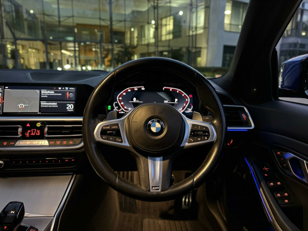 BMW 3 Series 2.0 320i M Sport Saloon Auto - 2020 (69 reg)36,000 miles Petrol Automatic £24,489Presented in striking Portimao Blue Metallic with black Vernasca leather interior, this high-spec BMW 320i M Sport stands out with its premium factory options, aggressive styling, and outstanding condition. Backed by full BMW service history and just freshly serviced by BMW.Key Features:•Electric Glass Sunroof•360 Surround View Camera •Head-Up Display (Technology Package)•Harman Kardon Surround Sound System•Heated Front Seats•Wireless Apple CarPlay•Wireless Phone Charging • Ambient Lighting•Gesture Control•Reversing Camera•Adaptive Suspension•Auto Hold Assist•Electric Front Memory Seats with Lumbar Support•Enhanced Bluetooth with Wireless Charging•19in M Light Double Spoke Alloys - Jet Black•Sun Protection Glazing•M Sport Plus Pack•Premium Package•Comfort Pack and Extended Storage•Instrument Panel in SensatecAdditional Details:•ULEZ compliant•Just freshly serviced by BMW•2 previous owners•12 months MOT•6 months warranty included (extendable up to 2 years)•Competitive finance options available•Part exchange welcome•Nationwide delivery availableThis is a highly spec'd M Sport saloon offering serious presence, performance, and premium features. Don't miss out - contact us today to arrange a viewing or reserve. sport plus pack, technology package, premium package, loudspeaker system - harman kardon, parking assistant plus, enhanced bluetooth with wireless charging, sun protection glazing, lumbar support - driver and front passenger, 19in alloy wheels - m light double spoke - 791m bicolour jet black with mixed tyres and runflat tyres, interior trim - aluminium mesheffect, vernasca leather - black with grey stitching, 12v power socket in front storage compartment, 18in alloy wheels - m light double-spoke style 790 m - bicolour orbit grey, acoustic glazing, active air stream kidney grille, active guard plus, air conditioning - automatic with three-zone, airbags, alarm system - thatcham 1 with remote control and electronic engine immobiliser, ambient lighting with welcome light carpet, armrest - integrated in door trim front and rear and in front on the centre console, armrest - rear centre with two cupholders, attentiveness assistant, bmw connected package professional, bmw connecteddrive online services, bmw emergency call, bmw live cockpit professional, bmw teleservices, balanced 50-50 weight distribution, battery safety cut-off in the event of an accident, bluetooth hands free with usb audio interface, brake pad wear indicator - front and rear, bumper system - front and rear, central locking switch - doors - fuel filler cap - luggage compartment, centre console rear storage compartment - ventilation grille, check control warning system for monitoring of lights and door-luggage compartment open warning, child proof locking system - rear doors, child seat isofix attachment - rear, condition based service, crash sensor, cruise control with brake function, cup holders in centre console - front - 2 cupholder inserts with clamping elements - inlay matt black, dab digital radio, dsc - dynamic stability control plus, door pockets - front and rear, door sill finishers - bmw designation - front - black, drive performance control, driving experience modes, dynamic brake lights, eps - electric power steering, electric windows - front and rear, electro mechanical parking brake, exhaust tailpipes - split left and right - 90mm diameter, extended led headlights, exterior b pillar - black matt, exterior mirrors - electrically folding with anti dazzle, exterior parts in body colour, exterior trim - high-gloss shadowline, first aid kit and warning triangle, floor mats - velour - front and rear, glove compartment - illuminated - with separate small compartment, grab handles - integrated in roof lining x4, headlining - anthracite, heat protection glazing with green tint, instrument cluster, interior lighting, interior rear-view mirror with automatic anti-dazzle function, interior trim - aluminium tetragon, led fog lights - front, larger fuel tank, lashing eyes in luggage compartment x4, luggage compartment - light, m aerodynamics package, m designation on front side panel - left and right, m leather steering wheel, m sport package, m sport suspension, model designation on tailgate - right, obc - on-board computer, oil sensor for level and grade - warning by check control system, optimum shift indicator, pdc - park distance control - front and rear, parking assistant, personal profile, rain sensor with automatic headlight activation, rear lights - led, rear seats, remote control - including integrated key, roof mouldings - black, run flat tyres, seat belt security check for driver and front passenger, seat heating for driver and front passenger, servotronic steering, shark fin aerial, side impact protection, split folding rear seat, sport automatic transmission, sport multi-function leather steering wheel - three-spoke, sport seats - front, start-stop button with keyless engine start and auto start-stop deactivation button, steering column mechanically and infinitely variably adjustable in height, stereo speaker system, stroke-dependent dampers, sun visors with vanity mirrors and ticket holder, tpms - tyre pressure monitoring system, three-point seat belts - all seats, through-loading system, tool kit located in luggage compartment, two tone horn, tyres - reduced rolling resistance, variable sport steering, vehicle key with m-specific designation, visible vin, welcome light, windscreen wipers - with integrated washing jets, idrive controller