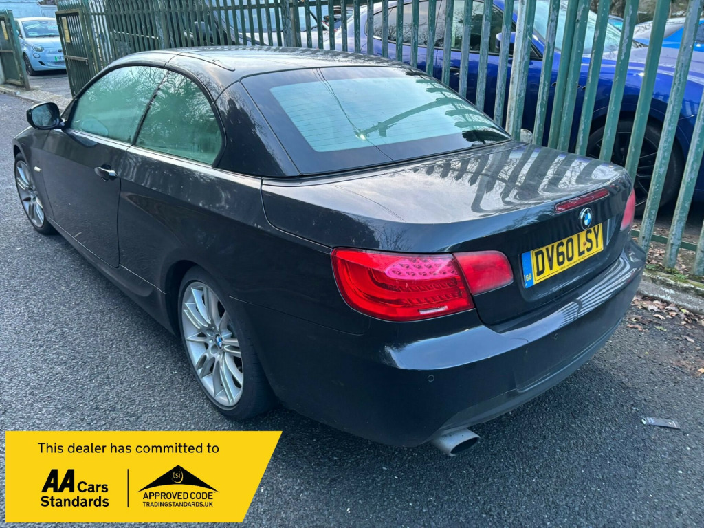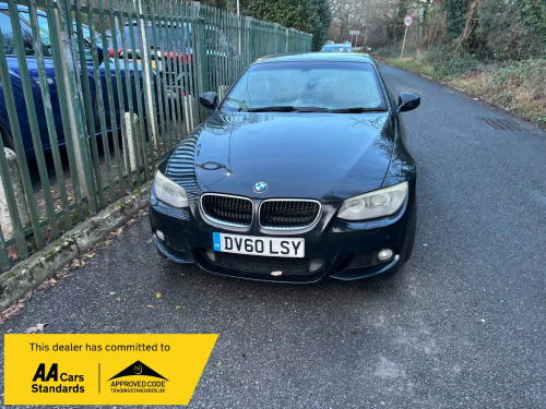 MUST BE SEEN THIS BEAUTIFUL 2010/60 BMW 320i M SPORT FINISHED IN COSMIC METALLIC BLACK WITH CREAM LEATHER AND ONLY LOW MILEAGE BEING ONLY 69,000 MILES WITH SERVICE HISTORY AND REALLY MUST BE AEEN AS HIGHLY RECOMMEND ENDED AND JUST ON TIME FOR THE SUMMER , SO GO ROOFLESS THIS SUMMER AND BEAT THE CONVERTIBLE APRING SUMMER RUSH AND RESERVE IT NOW GUYS !!!Ran cars and commercials limited in light star spoke alloy wheel- style 193 m, m sport package, abs - anti lock braking system, aluminium glacier silver interior trim, brushed aluminium interior trim, chrome line exterior trim, delete smokers pack, fine brushed aluminium interior trim, high gloss shadow line, model designation deletion, smokers pack, bmw assist, bmw connecteddrive- assist, bmw connecteddrive- online, bmw online services, bmw professional radio & cd & mp3, m sports suspension, pas, rear parking distance control, standard suspension, voice control system when with bluetooth interface