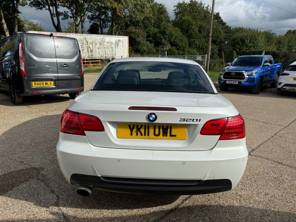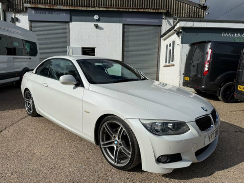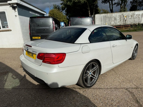 CHECK OUT OVER 400 5 STAR AUTO TRADER REVIEWS FROM OUR CUSTOMERS-LOW DEPOSIT FINANCE AVAILABLE-INCLUDES 3 MONTHS DRIVELINE WARRANTY  We have for sale an exceptional condition 2 owner ULEZ COMPLIANT 2011 BMW 3 SERIES 2.0  320i M Sport Convertible  Automatic 170ps  in Polaris  White with a very comprehensiveservice history which we took in in part exchange  In excellent condition throughout the interior and exterior paint and bodywork please view all the pictures to see just how stunning  this BMW is -please note pictures taken prior to all the alloy wheels being refurbished  Full black leather trim  air conditioning,Bluetooth phone connection  plus voice control and music streaming,park assist,alloy wheels,heated seats,cruise control,power hard top all in perfect working order  etc Drives great as you would expect from a 2 owner BMW with service history and such low mileage,this is an exceptionally well maintained and cared for car,just 2 owners from new the last owner  Supplied with MOT until July 2026 no advisories and with 3 months driveline  warranty, any independent inspection welcome all vehicles taken in part exchange  17in Alloy Wheels - Light Star Spoke - 3, 18in Light Star Spoke alloy Wheel- Style, 6 Speakers, ABS - Anti Lock Braking System, Air Conditioning - Automatic - Dual Zone, Airbags - Driver, Airbags - Driver and Front Passenger Sid, Alarm System Thatcham 1 with Remote Cont, Armrest - Front Centre, Automatically Dimming Rear View Mirror, Auxiliary Input, BMW ConnectedDrive- Assist, BMW ConnectedDrive- Online, BMW Online services, BMW Professional Radio - Single CD and M, BMW TeleServices, CBC - Cornering Brake Control, CD Changer Preparation, Check Control Warning System, Child Seat ISOFIX Attachment - Front and, Chrome line Exterior Trim, Cruise Control, Cup Holders - Front, DSC - Dynamic Stabi