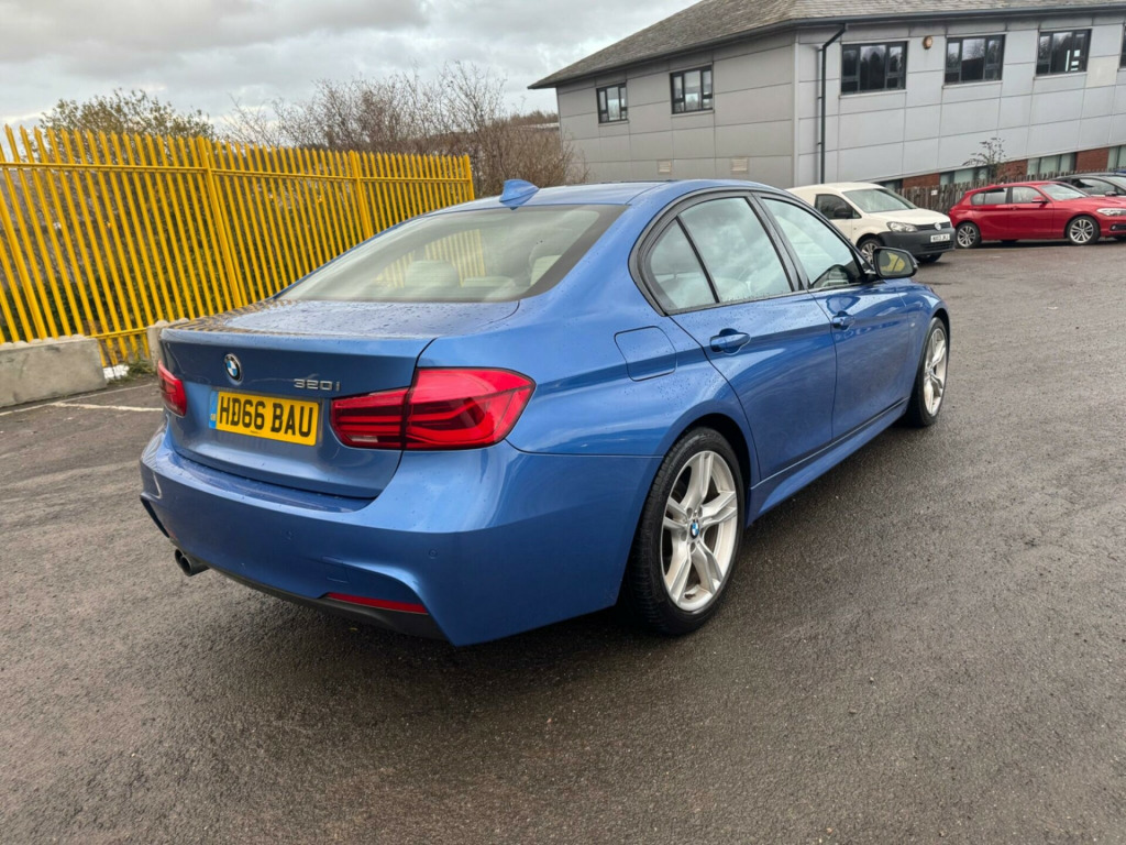 This 2016 BMW 3 Series 320i M Sport boasts a clear vehicle history and has been owned by only two careful owners. As a Euro 6 compliant model, it features a responsive 2.0L petrol engine and comes in the desirable M Sport trim. Notable features include the convenience of High Beam Assistant, front and rear Park Distance Control with parking assistance sensors, and automatic climate control with two zone settings. Enjoy seamless connectivity with Bluetooth hands free and USB audio interface, while automatic headlights ensure optimal visibility.This BMW 320i M Sport offers impressive performance, achieving 0-62mph in just 7.2 seconds, which is better than many similar vehicles. Its fuel economy is also a strong point, achieving up to 48 mpg, indicating it is more economical than comparable cars. Furthermore, its low CO2 emissions and low insurance group highlight its cost effectiveness, making it a sensible choice for many drivers. v power socket - centre console, 12v power socket - passenger footwell, 18in alloy wheels - light m star spoke - 400m, 6.5in colour display screen, abs - anti lock braking system, asc - automatic stability control, active carbon microfilter, air conditioning - automatic with two-zone control, airbags - curtain, airbags - driver, airbags - front side, airbags - passenger, airbags - passenger deactivation, alarm system thatcham 1 with remote control, ambient lighting - switchable bmw classic orange - cold white - led, armrest - front and rear integrated into door trim, armrest - front with storage compartment, armrest - rear centre, automatically dimming rear view mirror, auxiliary input, bmw emergency call, bmw navigation system, bmw professional radio - single cd and mp3, bmw teleservices, battery safety cut off, bluetooth - audio streaming - with compatible devices, bluetooth hands free with usb audio interface, bottle holders - front door storage compartments, brake assist, brake drying, brake pad wear indicator, brake pre-tensioning, bumper system front and rear - replaceable deformation elements for impacts up to 9mph, bumpers - body colour, cbc - cornering brake control, central locking - remote, check control warning system, child proof locking system - rear doors, child seat isofix attachment - rear, comfort go keyless engine start, crash sensor - activating central locking-hazard warning lights-fuel cut off, cruise control with brake function, cup holders - front, cup holders - rear armrest, dab digital radio, dbc - dynamic brake control, dsc - dynamic stability control plus, dtc - dynamic traction control, daytime running lights - led, door handle lighting, door handles - body colour, door mirrors - body coloured, door mirrors - electric and heated - aspheric drivers side, door mirrors - integrated indicators, door sill finishers - neutral bmw designation - front, drive performance control - eco pro - comfort - sport and sport plus, dynamic brake lights, electric windows - front and rear with open-close fingertip control, electronic differential lock, electronic engine immobiliser, exhaust - dual with chrome finisher, exit lighting - front, extended lighting, exterior trim - high-gloss shadowline, first aid kit, floor mats - velour, follow me home headlight function, footwell lights - front and rear, front reading lights using led technology, glove compartment - opener with chrome trim, grab handles - in roof lining x4, halogen headlights, handbrake and gear knob - leather, headlights - automatic activation, headlights - beam throw control, headlining - anthracite, heat protection glazing with green tint, heated windscreen washer jets, high level third brake light, hill start assistant, humidity sensor, indicator lenses - clear, interior trim - aluminium hexagon with estoril blue finisher, kidney grille - chrome extra-wide high-gloss black vertical slats, led fog lights - front, led tailights, lashing eyes in luggage compartment x4, lights-on audio warning, luggage compartment light - led, m aerodynamic bodystyling, m sport instrument cluster, m sport package, m sport suspension, model designation, multifunction controls for steering wheel, non smokers package, obc - on-board computer, optimum shift indicator, pdc - park distance control - rear, personal profile, power steering - electric, rain sensor, rear fog light - led, rear interior light - centre with reading lights using led technology, remote control with integrated key with insert in blue, roof mouldings - body colour, run flat tyres, seat belt security check for driver, seats - front - manual height adjustment, shark fin aerial, side exterior m designation badges, side impact protection, solar sensor, speakers x6, sport seats - front, steering column with manual reach and rake adjustment, steering wheel - leather - m sport, storage compartment - door trim panels - front, storage compartment - rear centre console, storage compartment - underneath floor of the luggage compartment, sun visors with vanity mirrors and ticket holder, tmc - traffic information, tpms - tyre pressure monitoring system, tool kit located in luggage compartment, usb audio interface, warning triangle, windscreen wipers - two-speed with adjustable intervals, idrive controller - 8 favourite buttons, enhanced bluetooth telephone preparation with usb audio interface and voice control, pdc - park distance control - front and rear, high-beam assistant, interior trim - brushed aluminium with black high-gloss finisher, dakota leather - oyster with dark oyster highlight with black interior