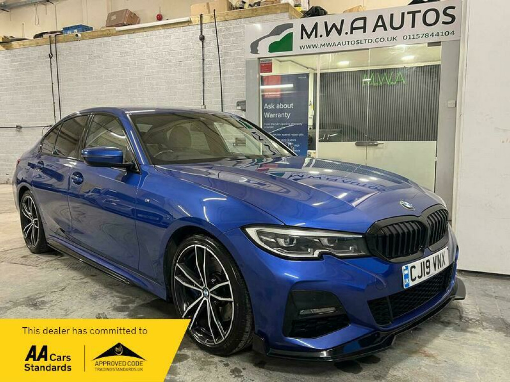 Here we have a nice example of a BMW 320i 2.0 M Sport which offers great spec including Alloy wheels, Electric front windows, electric mirrors, Air Conditioning, Heated Seats, Sat Nav, aux and much more! 3 Keys! Service history (TWO), Undergoing Health check, MOT 30/07/2026 . Finished in stunning metallic Blue and Diamond Cut alloy wheels. The car is in Good condition inside and out. Starts and drives very well. Any inspection welcome. 30 Days inhouse warranty and 12 months AA breakdown. We also offer drive away insurance, upgraded and extended warranty 3,6,12,18,24,36 months. Part exchange is welcome, we are regulated by the FCA and offer low interest rates for finance, Come down visit our indoor showroom – Please call prior to viewing to confirm – out of hours viewing available by appointments only. 3 Elson street Nottingham NG7 7HQ. FOR MORE CARS PLEASE VISIT US DIRECTLY ON : https://www.mwaautosltd.co.uk. 12V Power Sockets, 18in Alloy Wheels - M Light Double-Spoke Style 790 M - Bicolour Orbit Grey, Acoustic Glazing, Active Guard Plus, Air Conditioning - Automatic, Airbags, Alarm System, Ambient Lighting, Armrest, Attentiveness Assistant, Automatic Start-Stop Button, Automatically Dimming Rear View Mirror, BMW ConnectedDrive Online Services, BMW Emergency Call, BMW ID, BMW Live Cockpit Professional, BMW Mobility System, BMW TeleServices, BMW iDrive, Battery in Luggage Compartment, Bumper System, Centre Lock Switch, Closing System with Central Locking, Condition Based Service, Connected Package Pro, Crash Sensor, Cruise Control with Brake Function, Cupholder, DAB Tuner, DSC - Dynamic Stability Control Plus, Deletion Lumbar Support-Width Adjustment Passenger Side, Door Sill Strips, Double-Jointed Spring-Strut Front Axle, Driving Experience Switch, EPS - Electric Power Steering, Electric Windows - Front and Rear, Electro Mechanical Parking Brake, Electronic Differential Lock, Electronic Engine Immobiliser, Exhaust Tailpipe Finishers - Visible, Exterior Items, Exterior Trim - High-Gloss Shadowline, Floor Mats in Velour, Follow-Me-Home Function, Fuel Tank Breather System, Glove Compartment - Illuminated, Headlight Beam-Throw Control, Headlights - Adaptive LED, Headlining - Anthracite, Heat Protection Glazing with Green Tint, Interior Lighting, Interior Trim - Aluminium Tetragon, LED Fog Lights - Front, Larger Fuel Tank, Lashing Eyelets in Luggage Compartment, Luggage Compartment - Light, M Leather Steering Wheel, M Sport Exterior Styling, M Sport Package, M Sport Suspension, Model Logo, Multifunction for Steering Wheel, Oil Sensor For Level and Grade, Parking Assistant, Plastic Fuel Tank, Power Sockets, Preparation For High-Beam Assistant, Rear Backrest - Foldable and Dividable by 40-20-40, Rear Lights - LED, Reversing Light, Safety Battery Terminal Clamp, Seat Backrest Width Adjustment, Seat Heating for Driver and Front Passenger, Shifting Point Display, Side Impact Protection, Smartphone Integration, Speed Limiter, Split Folding Rear Seat, Sport Seats - Front, Steering Column Adjustment, Steering Wheel - Gearshift Paddles, Stereo Speaker System, Sun Visors with Ticket Holder and Illuminated Vanity Mirror, TPMS - Tyre Pressure Monitoring System, Third Brake Light, Tool Kit Located in Luggage Compartment, Variable Sport Steering, Warning Triangle, Washer Jets - Heated, Welcome Light.