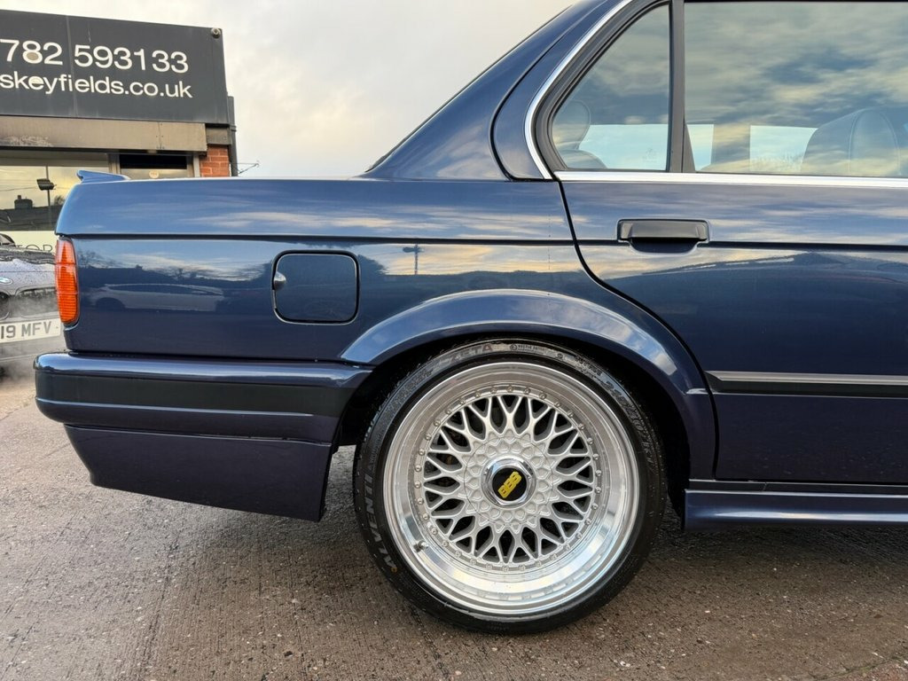 BMW 3 SERIES 1990, AZURE BLUE METALLIC, Grey cloth trim in perfect condition, M Tec style body kit, BBS RS style Wheels, 6 Branch Tubular Manifolds, Stainless exhaust, A/C PAS 4 x Electric Windows, Looks and sounds superb, Came from Japan in 2017 so no rust and never been welded. 16in Steel Wheels with full Wheel covers, 3Spoke Leather Steering Wheel, 6 Speakers, Air Conditioning, Black door handles, Black roof mouldings, Black side frame strips, Black window recess finisher, BMW Assist, BMW Business Radio with single CD player, Folding Front centre armrest & stora, Manual adjust height & backrest &, Manual folding door mirrors, Model designation deletion, Paint- Metallic, Single CD player, Titanium matt Interior Trim