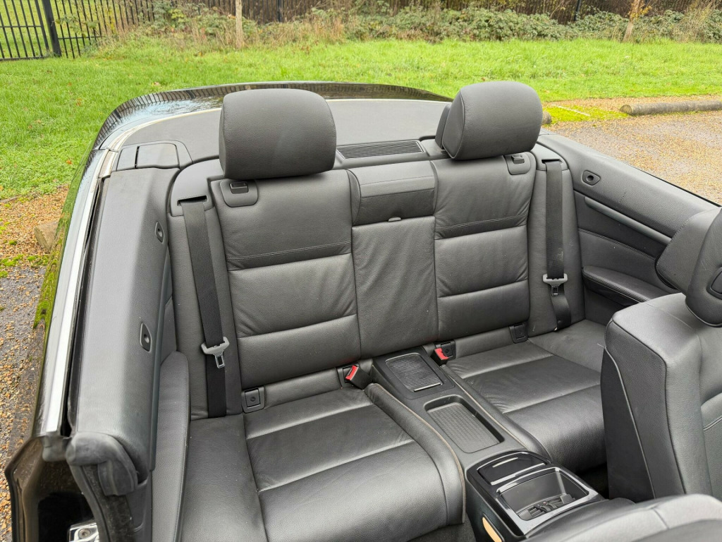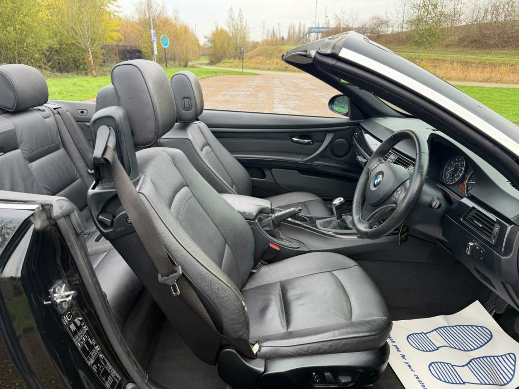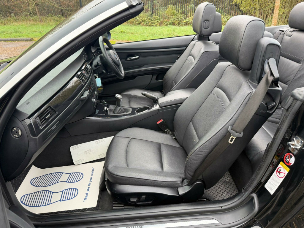 We are pleased to present this clean BMW 320i SE Convertible. Owned by 3 members of the same family for some time, this example looks and drives as a well cared for example. The father of the family had his own garage and maintained the car as and when needed. Finished in Black with black leather and specified with M-Sport wheels electric seats, climate control, on board computer, traction control and the usual BMW refinements.We have just had the car serviced, replaced the rocker cover gaskets and changed the knock sensor. This charming convertible is now ready to bring miles of enjoyment to its new owners., ont passenger isofix childseat attachment, leather- dakota- black, electric power steering with servotronic, 17in light star spoke alloy wheel- style 157, 3spoke sports leather steering wheel, bmw assist, bmw connecteddrive- assist, bmw connecteddrive- online, bmw online services, bmw professional radio & cd & mp3, chrome line exterior trim, delete smokers pack, high gloss black interior with nappa leather, high gloss black interior with dakota & nappa leather, model designation deletion, pas, rear parking distance control, satin silver interior trim, smokers pack, titanium light interior trim, voice control system when with bluetooth interface