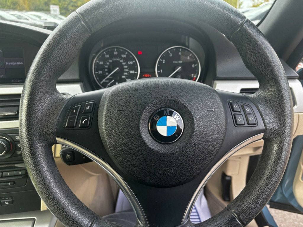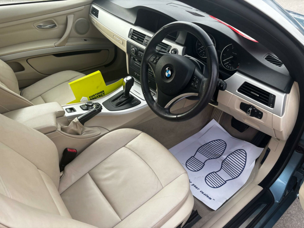 This 2009 BMW 3 Series 320i SE is a truly special find, having been cherished by just one owner since new. This well appointed SE trim model boasts a smooth 2.0 litre petrol engine and comes equipped with a suite of desirable features. Navigate with ease using the SatNav Business advanced system and benefit from the Front and Rear Parking Distance Control, complete with a front camera for added assistance. Inside, you'll appreciate the comfort of heated front seats and the luxurious Cream Beige Dakota leather upholstery, complemented by a practical wind deflector.This BMW 3 Series offers excellent running costs, achieving an impressive fuel economy of 41 miles per gallon, which is better than many other vehicles in its class. Furthermore, its low insurance group rating means more money in your pocket, and its low CO2 emissions are also a significant advantage. These factors combined make this 320i SE a sensible and appealing choice for those seeking quality and efficiency.. 17in Light Star Spoke alloy Wheel- Style 157, 3Spoke Sports Leather Steering Wheel, BMW Assist, BMW ConnectedDrive- Assist, BMW ConnectedDrive- Online, BMW Online services, BMW Professional Radio & CD & MP3, Chrome line Exterior Trim, Delete smokers Pack, High gloss Black Interior with Nappa Leather, High gloss Black Interior with dakota & Nappa Leather, Model designation deletion, PAS, Rear Parking distance Control, Satin Silver Interior Trim, Smokers Pack, Titanium Light Interior Trim, Voice Control System when with Bluetooth interface, SatNav Business advanced, Front&Rear Parking distance Control, Heated Front Seats, Wind deflector, Front Passenger isofix ChildSeat attachment, Leather- Dakota- Cream Beige. Full service history