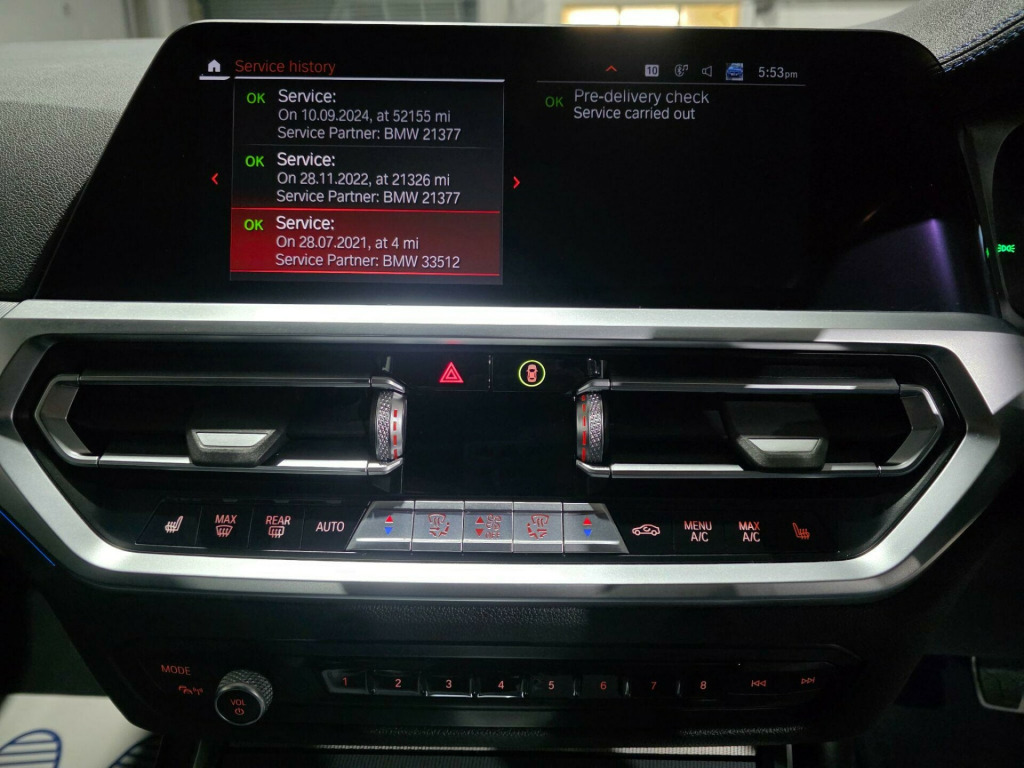 BMW Service History, HPI Clear, Excellent condition, 1 Owner From NewFull Black Leather Interior, Heated seats, Park distance control (Front & Rear ) , Air conditioning, Electric windows, Electric mirror Paddle Shift, Cruise control, Climate Control, Multi-function steering wheel, Remote central locking, Immobiliser, keyless go, Folding Mirrors, Fog lights, Xenon light, Bluetooth, airbags, ABS, PAS, Spare key, v power socket in front storage compartment, 18in alloy wheels - m light double-spoke style 790 m - bicolour orbit grey, acoustic glazing, active air stream kidney grille, active guard plus, air conditioning - automatic with three-zone, airbags, alarm system - thatcham 1 with remote control and electronic engine immobiliser, ambient lighting with welcome light carpet, armrest - integrated in door trim front and rear and in front on the centre console, armrest - rear centre with two cupholders, attentiveness assistant, automatically dimming rear view mirror, bmw connected package professional, bmw connecteddrive online services, bmw emergency call, bmw live cockpit professional, bmw mobility system, bmw teleservices, balanced 50-50 weight distribution, battery safety cut-off in the event of an accident, bluetooth hands free with usb audio interface, brake pad wear indicator - front and rear, bumper system - front and rear, central locking switch - doors - fuel filler cap - luggage compartment, centre console rear storage compartment - ventilation grille, check control warning system for monitoring of lights and door-luggage compartment open warning, child proof locking system - rear doors, child seat isofix attachment - rear, condition based service, crash sensor, cruise control with brake function, cup holders in centre console - front - 2 cupholder inserts with clamping elements - inlay matt black, dab digital radio, dsc - dynamic stability control plus, door pockets - front and rear, door sill finishers - aluminium inserts in the front - brushed with bmw designation, drive performance control, driving experience modes, dynamic brake lights, eps - electric power steering, electric windows - front and rear, electro mechanical parking brake, exhaust tailpipes - split left and right - 90mm diameter, exterior mirrors - electrically folding with anti dazzle, exterior parts in body colour, exterior trim - high-gloss shadowline, first aid kit and warning triangle, floor mats - velour - front and rear, glove compartment - illuminated - with separate small compartment, grab handles - integrated in roof lining x4, headlights - adaptive led, headlining - anthracite, heat protection glazing with green tint, instrument cluster, interior lighting, interior trim - aluminium tetragon, led fog lights - front, lashing eyes in luggage compartment x4, luggage compartment - light, m aerodynamics package, m designation on front side panel - left and right, m leather steering wheel, m sport package, model designation on tailgate - right, obc - on-board computer, oil sensor for level and grade - warning by check control system, optimum shift indicator, pdc - park distance control - front and rear, parking assistant, personal profile, preparation for high-beam assistant, rain sensor with automatic headlight activation, rear lights - led, rear seats, remote control - including integrated key, roof mouldings - body colour, seat belt security check for driver and front passenger, seat heating for driver and front passenger, servotronic steering, shark fin aerial, side impact protection, split folding rear seat, sport seats - front, start-stop button with keyless engine start and auto start-stop deactivation button, steering column mechanically and infinitely variably adjustable in height, stereo speaker system, stroke-dependent dampers, sun visors with vanity mirrors and ticket holder, tpms - tyre pressure monitoring system, three-point seat belts - all seats, through-loading system, tool kit located in luggage compartment, two tone horn, tyres - reduced rolling resistance, vehicle key with m-specific designation, visible vin, welcome light, windscreen wipers - with integrated washing jets, idrive controller, interior trim - aluminium mesheffect, vernasca leather - black with blue contrast stitching