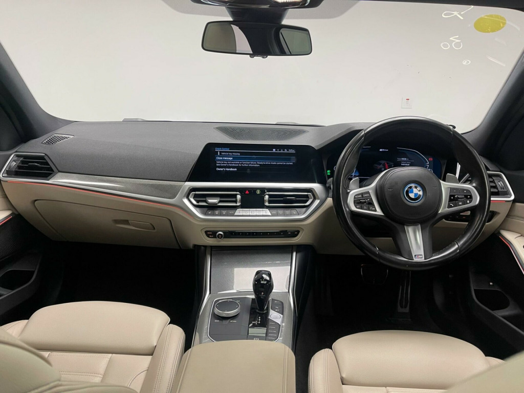 This 2022 BMW 3 Series 330e M Sport Pro Edition is a superb example, having had only one owner since new. It boasts a powerful 2.0 litre petrol plug in hybrid engine, meeting Euro 6 emission standards. This M Sport Pro Edition comes equipped with an electric glass sunroof, M Sport brakes finished in high gloss red, and automatic three zone air conditioning for ultimate comfort. You'll also appreciate the convenience of a rain sensor with automatic headlight activation and front and rear park distance control, making parking and driving in various conditions effortless.Experience exhilarating performance with this 330e, capable of accelerating from 0 to 62 miles per hour in just 5.8 seconds. This impressive acceleration, combined with its plug in hybrid technology, sets it apart from many other vehicles in its class, offering a dynamic yet efficient driving experience. The M Sport Pro Edition trim further enhances its appeal, providing a sporty aesthetic and a host of premium features designed to elevate your journey. v power socket in front storage compartment, 19in alloy wheels - double spoke style - 791 m - jet black with mixed tyres, acoustic glazing, active air stream kidney grille, active guard plus, adaptive m suspension, air conditioning - automatic with three-zone, airbags, alarm system - thatcham 1 with remote control and electronic engine immobiliser, ambient lighting with welcome light carpet, armrest - integrated in door trim front and rear and in front on the centre console, armrest - rear centre with two cupholders, attentiveness assistant, automatically dimming rear view mirror, bmw connected package professional, bmw connecteddrive online services, bmw emergency call, bmw individual high-gloss shadowline with extended contents, bmw individual lights - shadowline, bmw live cockpit professional, bmw teleservices, battery safety cut-off in the event of an accident, bluetooth hands free with usb audio interface, brake pad wear indicator - front and rear, bumper system - front and rear, central locking switch - doors - fuel filler cap - luggage compartment, centre console rear storage compartment - ventilation grille, charging cable - mode 2, check control warning system for monitoring of lights and door-luggage compartment open warning, child proof locking system - rear doors, child seat isofix attachment - rear, crash sensor, cruise control with brake function, cup holders in centre console - front - 2 cupholder inserts with clamping elements - inlay matt black, dab digital radio, dsc - dynamic stability control plus, deletion lumbar support-width adjustment passenger side, door pockets - front and rear, door sill finishers - aluminium inserts in the front - brushed with bmw designation, drive performance control, driving experience modes, dynamic brake lights, eps - electric power steering, electric windows - front and rear, electro mechanical parking brake, exhaust tailpipes - split left and right - 90mm diameter, exterior mirrors - electrically folding with anti dazzle, exterior parts in body colour, first aid kit and warning triangle, floor mats - velour - front and rear, glove compartment - illuminated - with separate small compartment, grab handles - integrated in roof lining x4, headlights - adaptive led, headlining - anthracite, heat protection glazing with green tint, instrument cluster, interior lighting, interior trim - bmw individual aluminium fabric high-gloss, led fog lights - front, lashing eyes in luggage compartment x4, luggage compartment - light, m designation on front side panel - left and right, m leather steering wheel, m seat belts, m sport braking system, m sport exterior styling, m sport pro package, mirror caps - black, model designation on tailgate - right, obc - on-board computer, oil sensor for level and grade - warning by check control system, optimum shift indicator, pdc - park distance control - front and rear, parking assistant, personal profile, preparation for high-beam assistant, rain sensor with automatic headlight activation, rear lights - led, rear seats, remote control - including integrated key, roof mouldings - body colour, run flat tyres, seat backrest width adjustment, seat belt security check for driver and front passenger, seat heating for driver and front passenger, servotronic steering, shark fin aerial, side impact protection, split folding rear seat, sport seats - front, start-stop button with keyless engine start and auto start-stop deactivation button, steering column mechanically and infinitely variably adjustable in height, steering wheel - gearshift paddles, stereo speaker system, stroke-dependent dampers, sun visors with vanity mirrors and ticket holder, tpms - tyre pressure monitoring system, three-point seat belts - all seats, tool kit located in luggage compartment, two tone horn, tyres - reduced rolling resistance, vehicle key with m-specific designation, visible vin, welcome light, windscreen wipers - with integrated washing jets, idrive controller, electric glass sunroof, 19in alloy wheels - m light double spoke - 791m bicolour jet black with mixed tyres and runflat tyres, m sport brake - red high gloss, vernasca leather - oyster with grey stitching