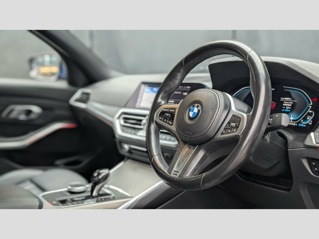 THIS STUNNING 3 SERIES COMES WITH A FANTASTIC SPEC INCLUDING - Portimoa Blue - Leather Vernasca Black Seam Grey - Heated Seats - Rear Reverse Camera - Active Guard Plus - BMW Live operating area Professional - LED headlight with extended scopes - LED Fog lights - Cruise control with braking function - Ambient interior light - Sports Auto Transmission - Gloss black kidney grilles - 20" alloys - Gloss Black Body Styling Kit - OPTIONAL EXTRA'S / UPGRADES AVAILABLE: - Optional brake callipers painting to a colour of your choice - Optional M3 style wing mirrors - Optional rear diffuser - Optional boot lip spoiler - Optional machine polish - Optional ceramic coating - Optional de-badge - Optional rear privacy - Optional 3 year manufacturer equivalent warranty available to purchase - The fitment of the brand new tyres, alloy wheels and styling parts are subject to a fee of £249. This will also warrant the fitted parts for 12 months. - Number of keys to be confirmed at the point of sale. 12V Power Socket in Front Storage Compar, Acoustic Glazing, Active Air Stream Kidney Grille, Active Guard Plus, Air Conditioning - Automatic with Three-, Airbags, Alarm System - Thatcham 1 with Remote Co, Ambient Lighting with Welcome Light Carp, Armrest - Integrated in Door Trim Front , Armrest - Rear Centre with Two Cupholder, Attentiveness Assistant, Automatically Dimming Rear View Mirror, BMW Connected Package Professional, BMW ConnectedDrive Online Services, BMW Emergency Call, BMW Live Cockpit Professional, BMW Mobility System, BMW TeleServices, Balanced 50-50 Weight Distribution, Battery Safety Cut-Off in the Event of a, Bluetooth Hands Free with USB Audio Inte, Brake Pad Wear Indicat
