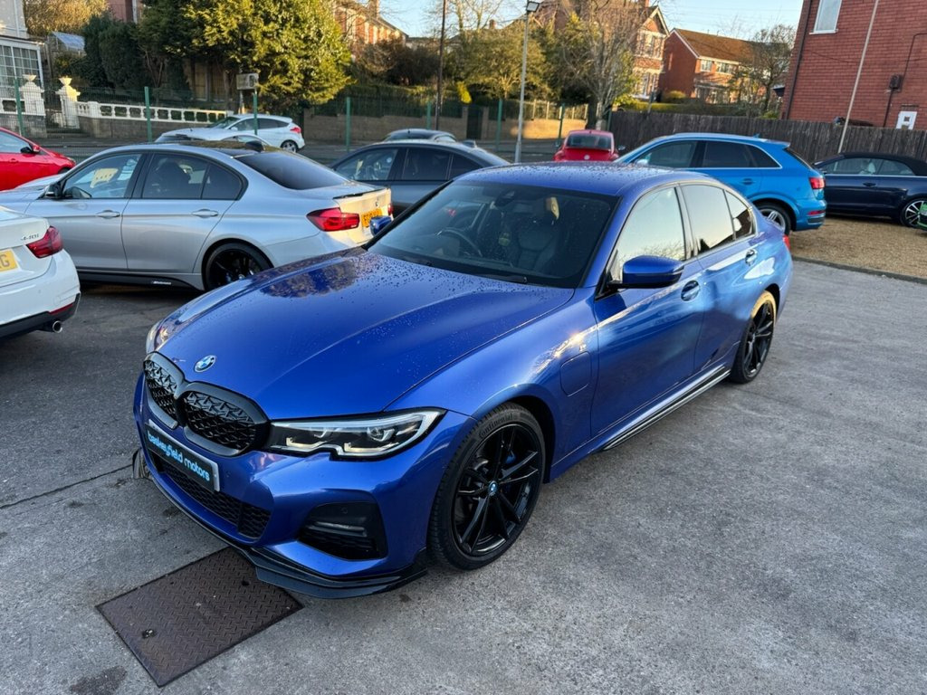DUE IN BMW 330E FINISHED IN PORTIMAO BLUE (£670), Vernasca leather in black with blue contrast stitching (£500), 19" alloy wheels, Loudspeaker system Harman Kardon (£820), Enhanced bluetooth with wireless charging (£350), Technology package (£1900), Sun protection glazing (£320), M sport pro package (£2500), Interior trim features fine oak grain open pored (£150), Instrument panel in Sensatec, High-gloss Shadowline (£230), BMW Gesture Control, Head-Up Display, Split-folding rear seats, WiFi hotspot preparation, Enhanced Bluetooth with Wireless Chargin, High-gloss Shadowline, Interior Trim - Fine-Wood Oak Grain Open, Loudspeaker System - Harman Kardon, M Sport Pro Package, Portimao Blue, Sun Protection Glazing, Technology Package, Vernasca Leather - Black with Blue Contr