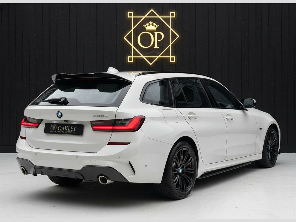 We are delighted to offer for sale this lovely BMW 330e. Finished in stunning Alpine white with contrasting gloss black alloy wheels, the car is presented in fantastic condition both inside and out. It has clearly been cherished by its 1 owner from new. It benefits from a full BMW service history. Services have been carried out at 20,357 miles, 41,301 miles and 47,524 miles. It has just undergone a new MOT ready for the new keeper ready to drive away today. It is also HPI clear. The car also boats a huge specification with some highly desirable optional extras. These include Full M Performance body kit including Front splitter, Rear diffuser , Side skirts, Honeycomb grille and boot spoiler. Apple Car play, Reverse camera, 18 inch M Sport alloy wheels, Satellite navigation, Heated front seats, plus much more. On the road the car drives faultlessly as you would expect for such low mileage. This really is not one to miss. Competitive finance packages are available with very low monthly payments and starting from just 8.9% APR, contact us for a personalised quotation. The car will be sold with 2 keys, HPI certificate and parts and labour warranty included. All the usual dealer facilities are available including Autoguard nationwide parts and labour warranties. All major credit and debit cards accepted, For more information call any time 9am to 6pm, P/X Welcome. VIEWING STRICTLY BY PRIOR APPOINTMENT ONLY. TEL: 01256 593043 12V Power Socket in Front Storage Compar, 18in Alloy Wheels - M Light Double-Spoke, Acoustic Glazing, Active Air Stream Kidney Grille, Active Guard Plus, Air Conditioning - Automatic with Three-, Airbags, Alarm System - Thatcham 1 with Remote Co, Ambient Lighting with Welcome Light Carp, Armrest - Integrated in Door Trim Front , Armrest - Rear Centre with Two Cupholder, Attentiveness Assistant, Automatically Dimming Rear View Mirror, BMW Connected Package Professional, BMW ConnectedDrive Online Services, BMW Emergency Call, BMW Individual Roof Rails High-Gloss Sha, BMW Live Cockpit Professional, BMW Mobility System, BMW TeleServices, Battery Safety Cut-Off in the Event of a, Bluetooth Hands