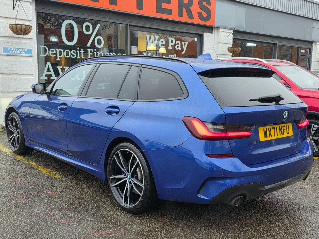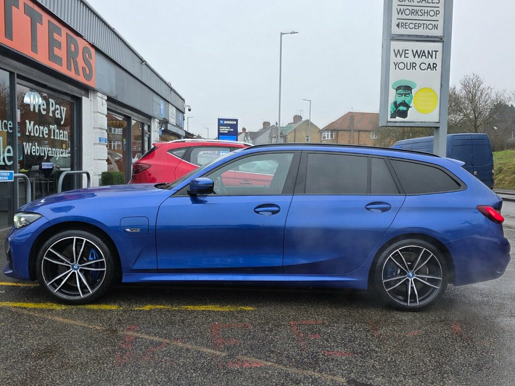 WX71NFU BMW 3 SERIES 2.0 330e 12kWh M Sport Touring 5dr Petrol Plug-in Hybrid Auto. Comes with Full BMW Service History with the most recent one carried on 11/08/2025 and it comes with a fresh MOT for 12 months for complete peace of mind. In addition, it comes loaded with very high spec and optional extras worth more than £1200 including Wireless Apple Carplay/Android Auto, Heated Front Seats and Steering Wheel, In-built Sat-Nav, Rear Camera+ 360 Parking Sensors for aid, Technology Pack, 19in Alloy wheels- M Light Double Spoke- 791M Bicolour Jet Black with Mixed Tyres and Runflat Tyres, M Sport Pro Package, Cruise Control with Brake Function, DSC - Dynamic Stability Control Plus, Driving Experience Modes, Drive Performance Control, Heat Protection Glazing with Green Tint, Comfort Plus Package, Portimao Blue Exterior and so so much more. Extended Warranty Available for as little as £499 for 12 Months* Finance Offered - any credit history considered** Part Exchange Welcome Available for Nationwide Delivery (charged 1.70p per mile) *Warranty prices based on car make, model, CC, age **subject to acceptance 12V Power Socket in Front Storage Compar, 18in Alloy Wheels - M Light Double-Spoke, Acoustic Glazing, Active Air Stream Kidney Grille, Active Guard Plus, Air Conditioning - Automatic with Three-, Airbags, Alarm System - Thatcham 1 with Remote Co, Ambient Lighting with Welcome Light Carp, Armrest - Integrated in Door Trim Front , Armrest - Rear Centre with Two Cupholder, Attentiveness Assistant, Automatically Dimming Rear View Mirror, BMW Connected Package Professional, BMW ConnectedDrive Online Services, BMW Emergency Call, BMW Individual Roof Rails High-Gloss Sha, BMW Live Cockpit Professional, BMW Mobility System, BMW TeleServices, Battery Safety Cut-Off in the Event of a, Bluetooth Hands
