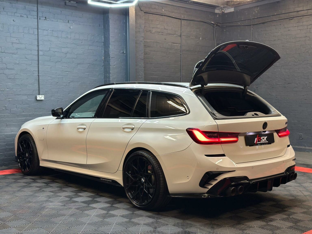 Low Rate Finance Available get in touch with us! RSK CARS Presents this stunning BMW 330e M Sport Estate which has been modified to stand out from the rest! This includes the Front Splitter, Front Grill, Badges De Chromed, M Perf Side Mirror Caps, Side Skirts, Rear Spoiler, Rear Bumper Canards, Gloss Black Roof Fins, F1 Light Rear Diffuser, Quad Exhaust Tips, Modified Exhaust system, 20 inch Alloys and Wheel spacers on all 4 Wheels. We will also be carrying out a service and MOT prior to sale for your own peace of mind along with a thorough inspection to ensure the car is perfect when leaving RSK CARS. All 4 Alloys have just been refurbished giving the car that brand new look.